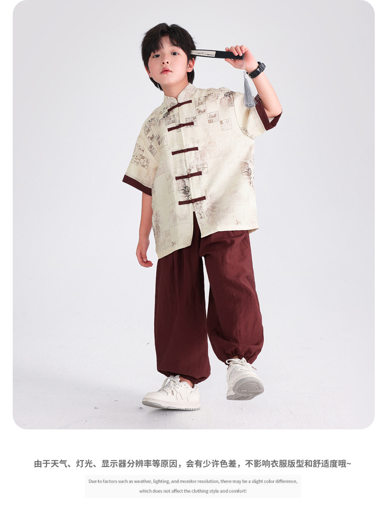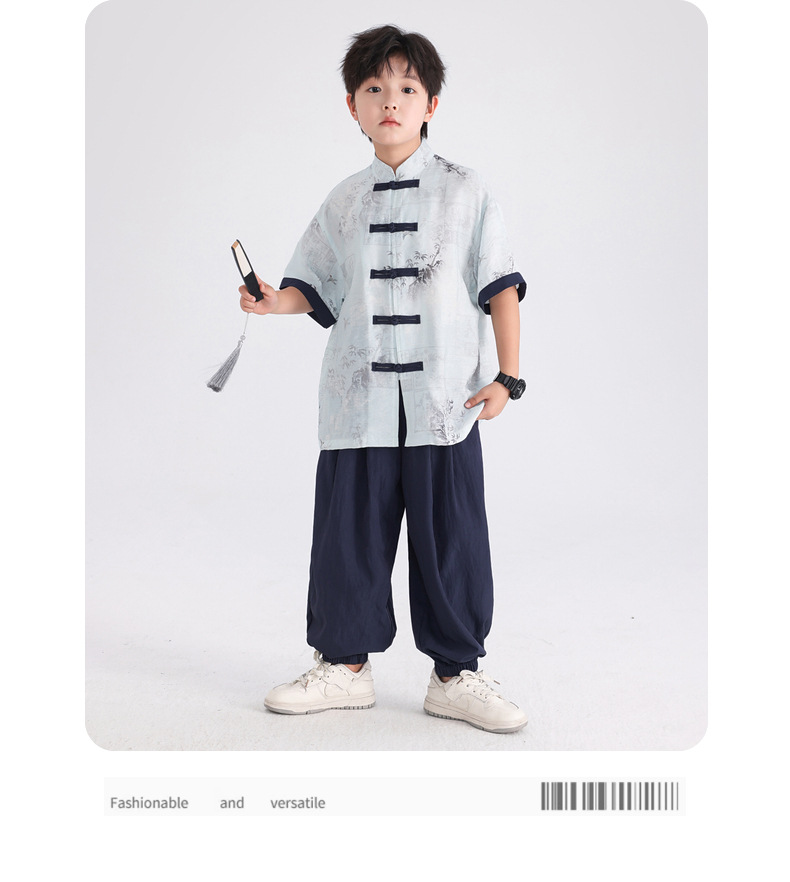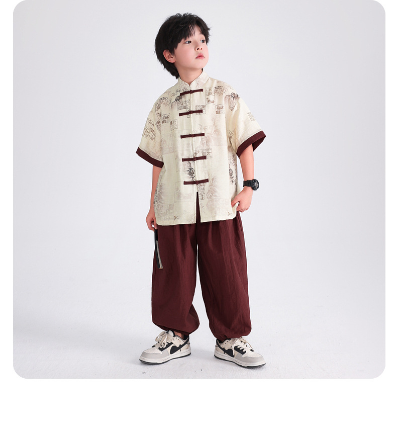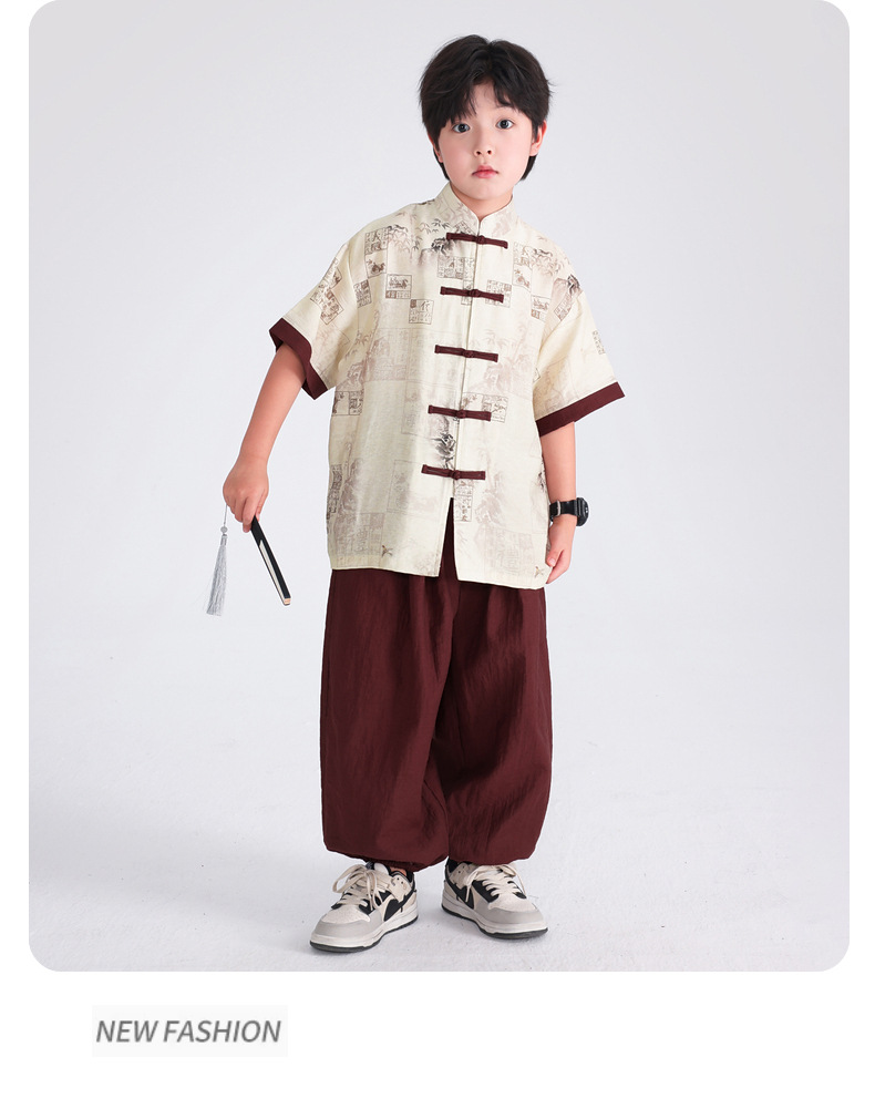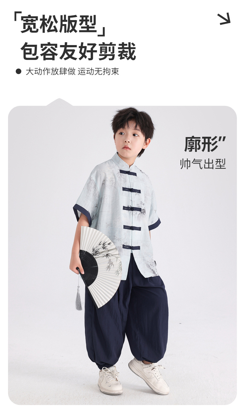 Summer Chinese-style daily short-sleeved Hanfu set for boys, 2025 new style for children's new Chinese-style performance costumes, Tang suits