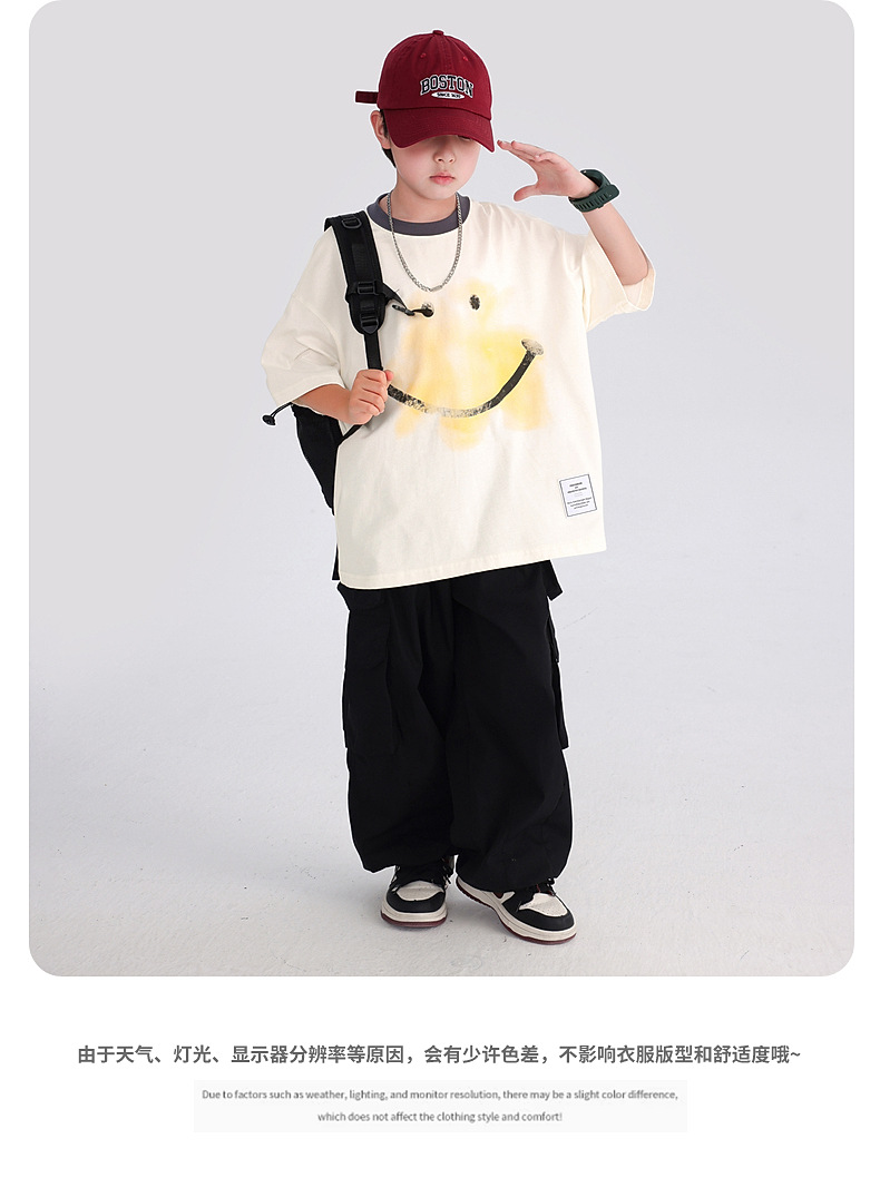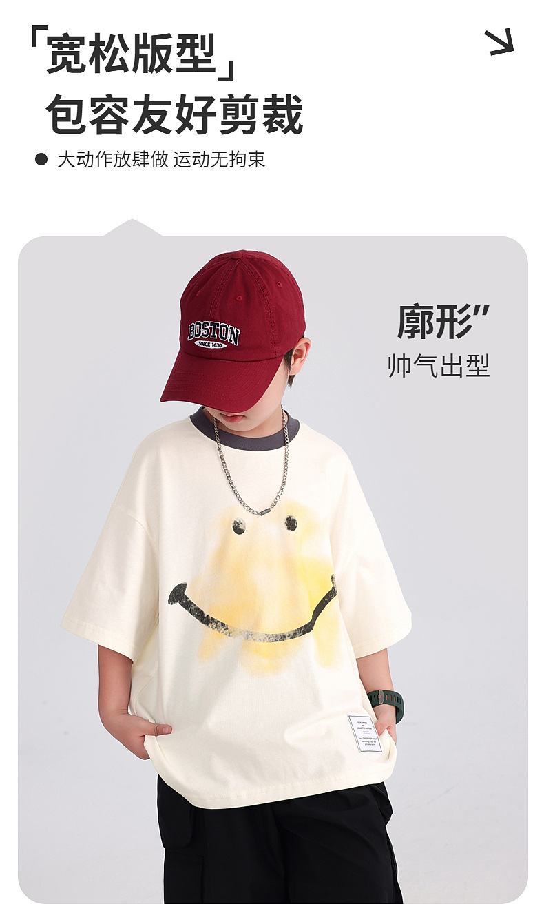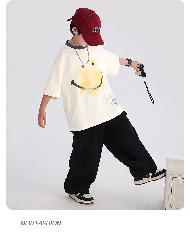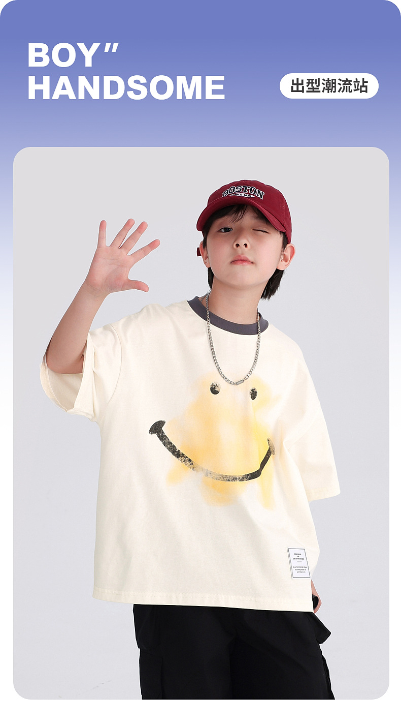 Summer cool pure cotton short-sleeved T-shirt for boys, 2025 new style children's summer wear, loose half-sleeved top for big kids, trendy