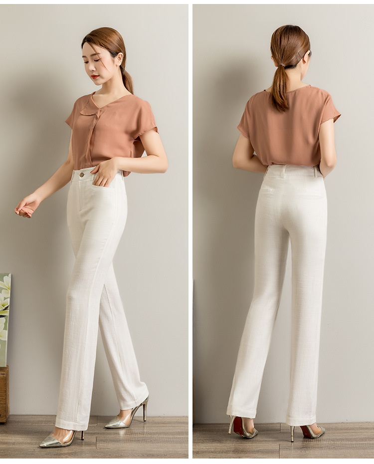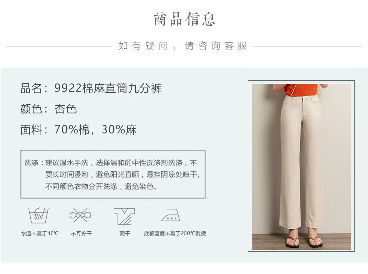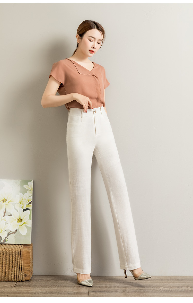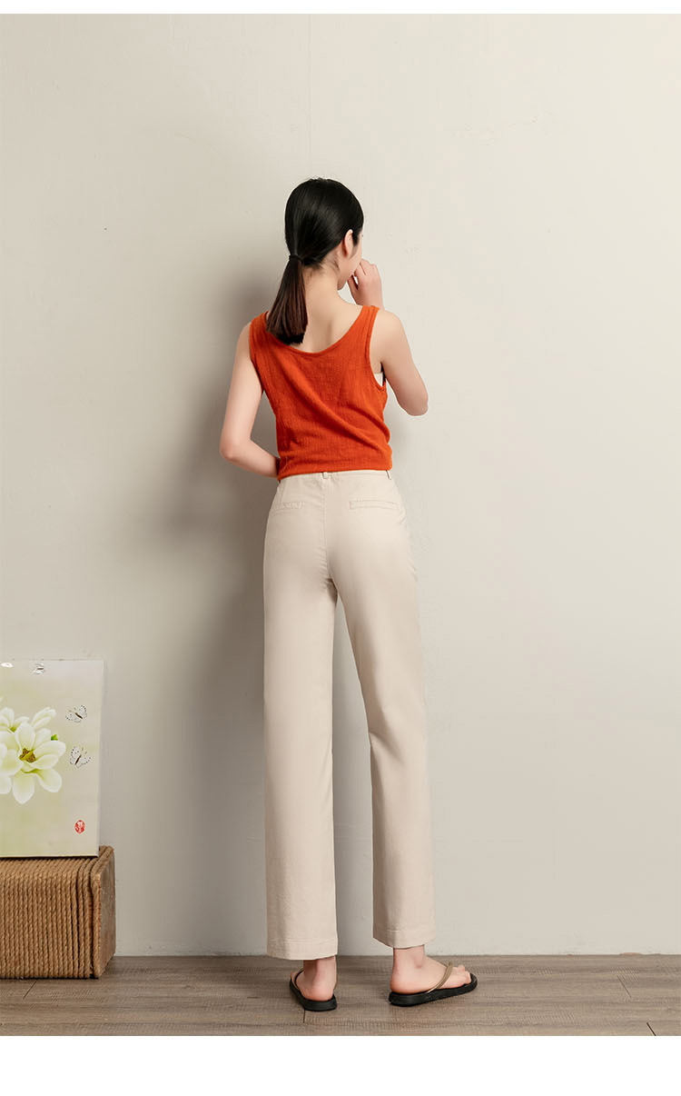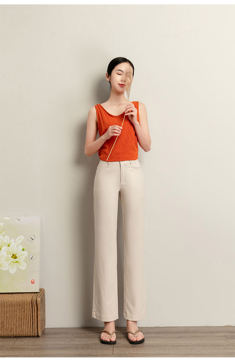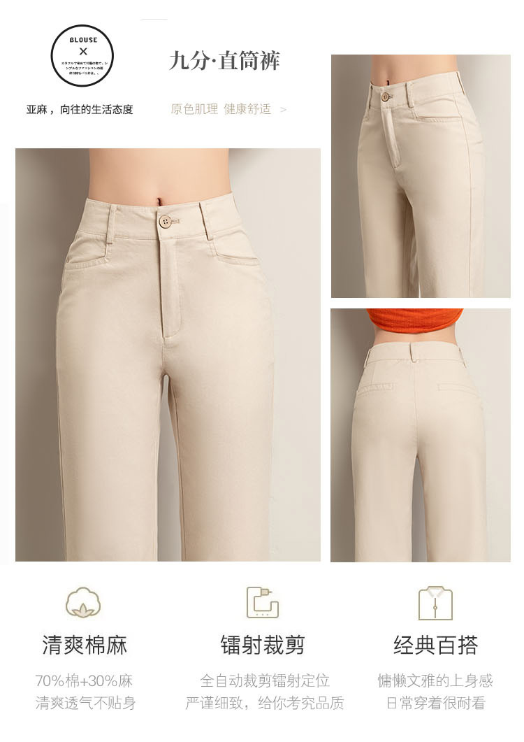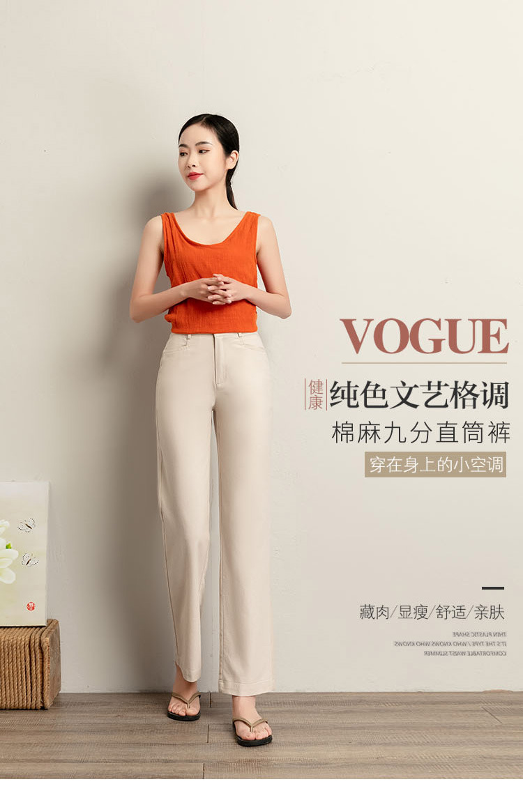 Summer cotton and linen new straight-leg pants, cotton and linen women's pants, linen pants, high-waisted pants, Zhengzhou women's style wholesale, 9-inch pants 9922