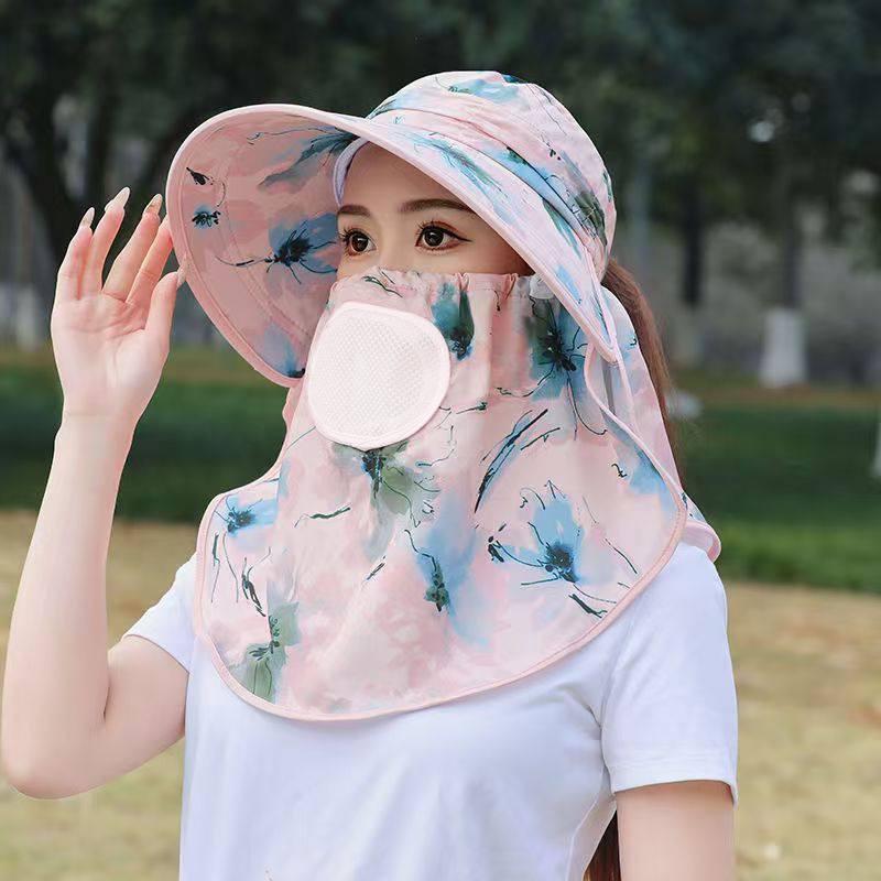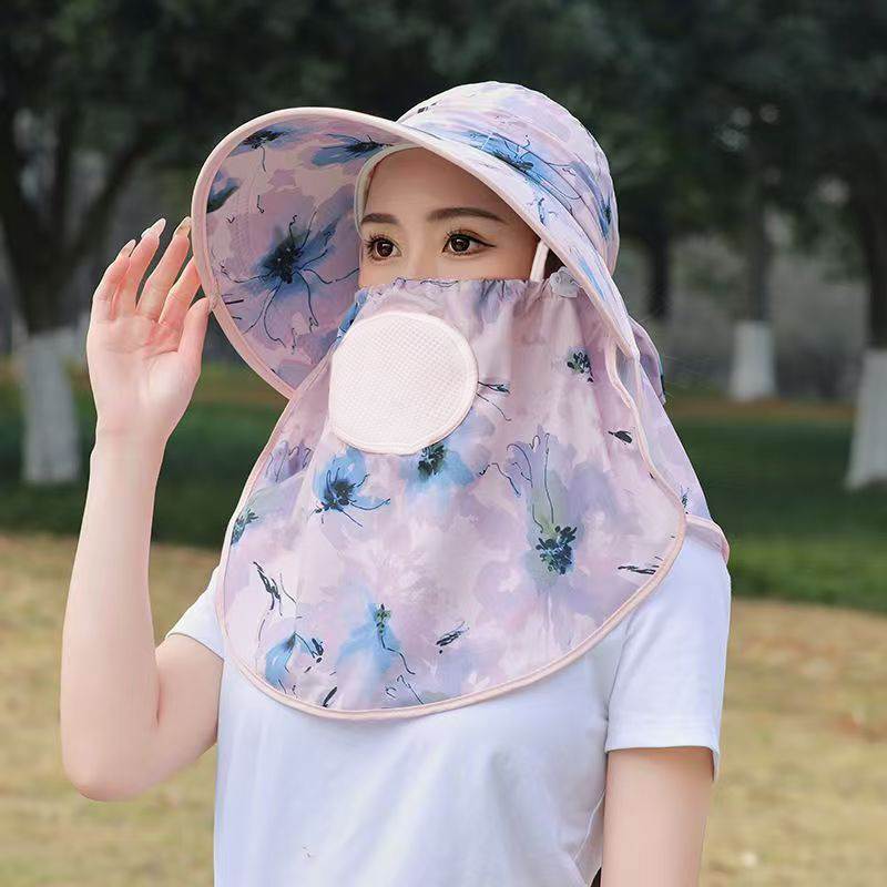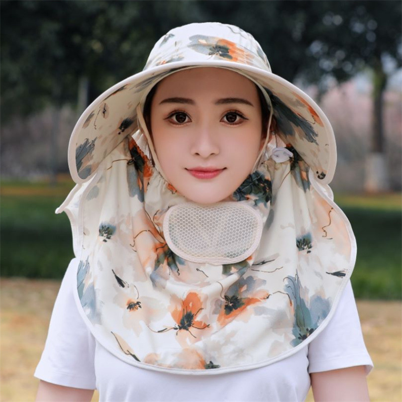 Summer full-face masks, sun protection, tea-picking hats, women's sun protection, UV protection, charging face protection hats, trendy