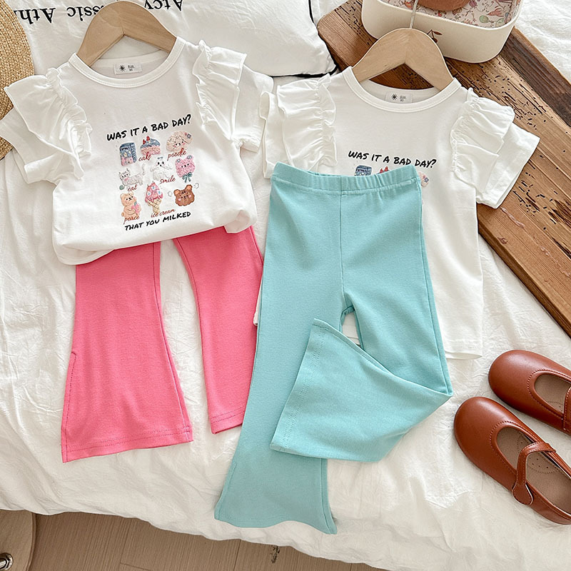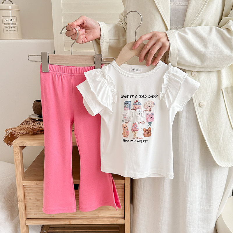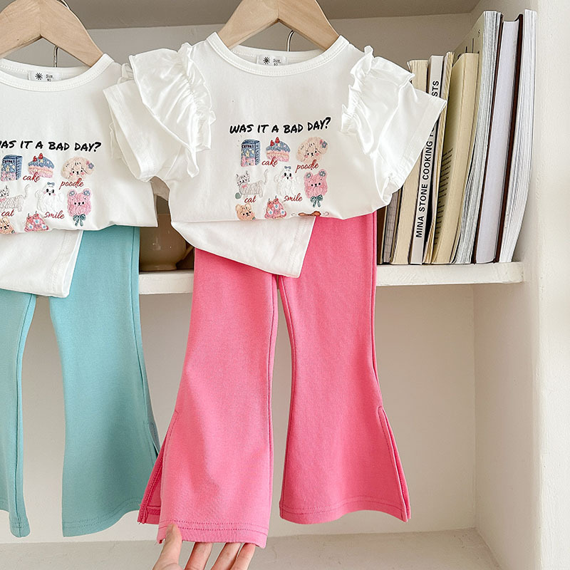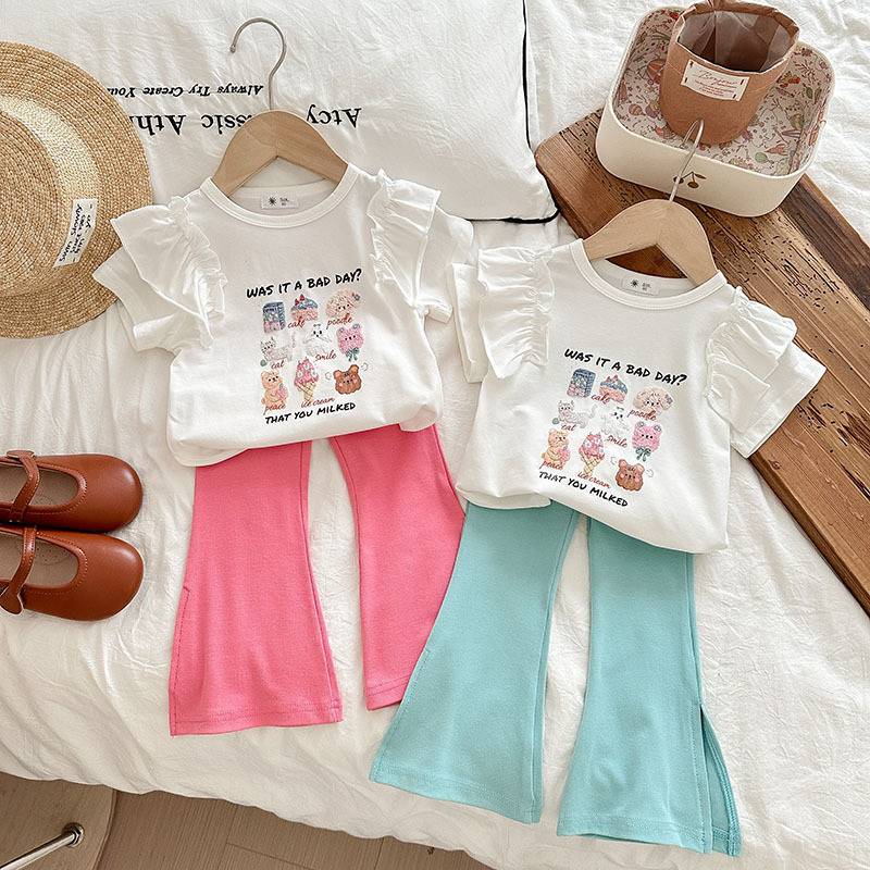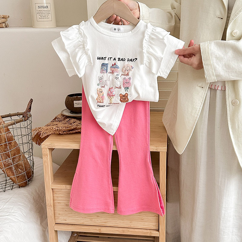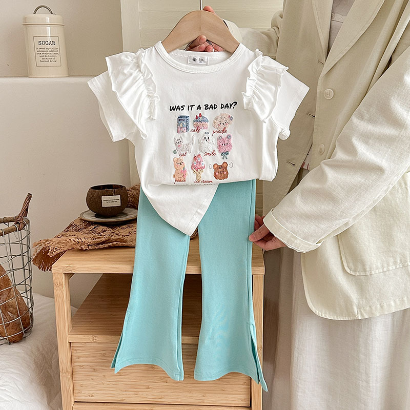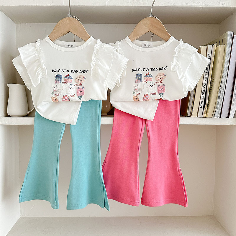 Summer girls' suits, stylish halter, ruffled blouse, flared trousers, 2024 summer cross-border children's clothing trend