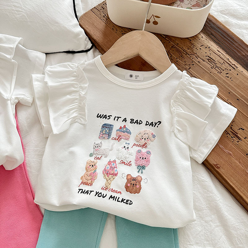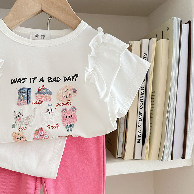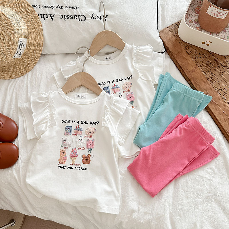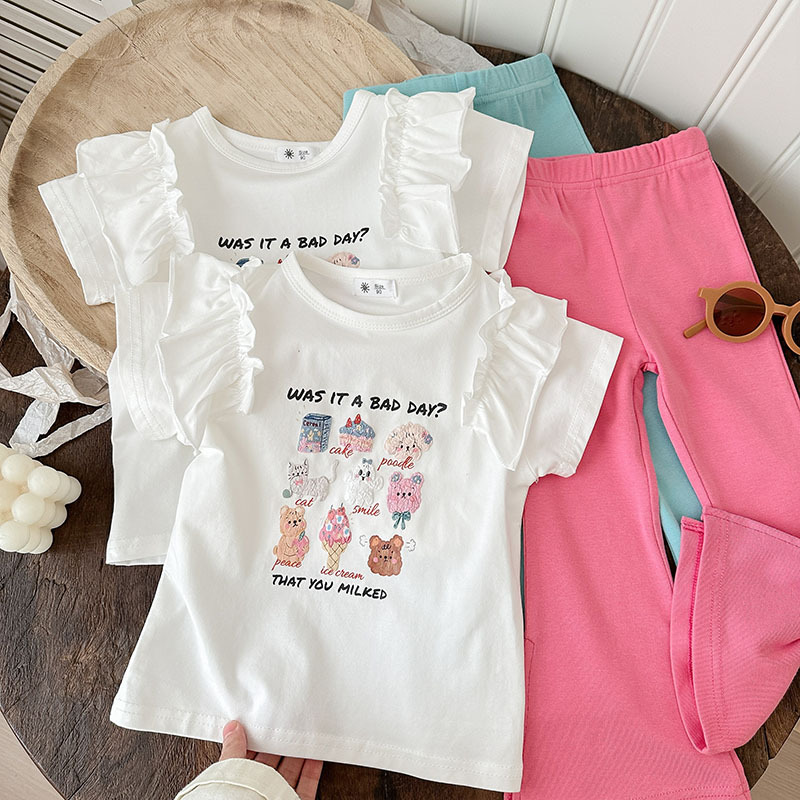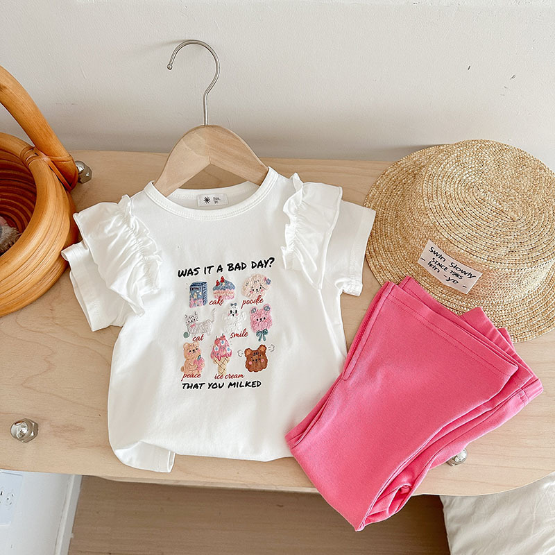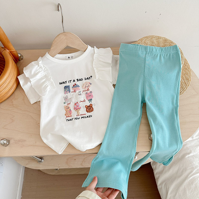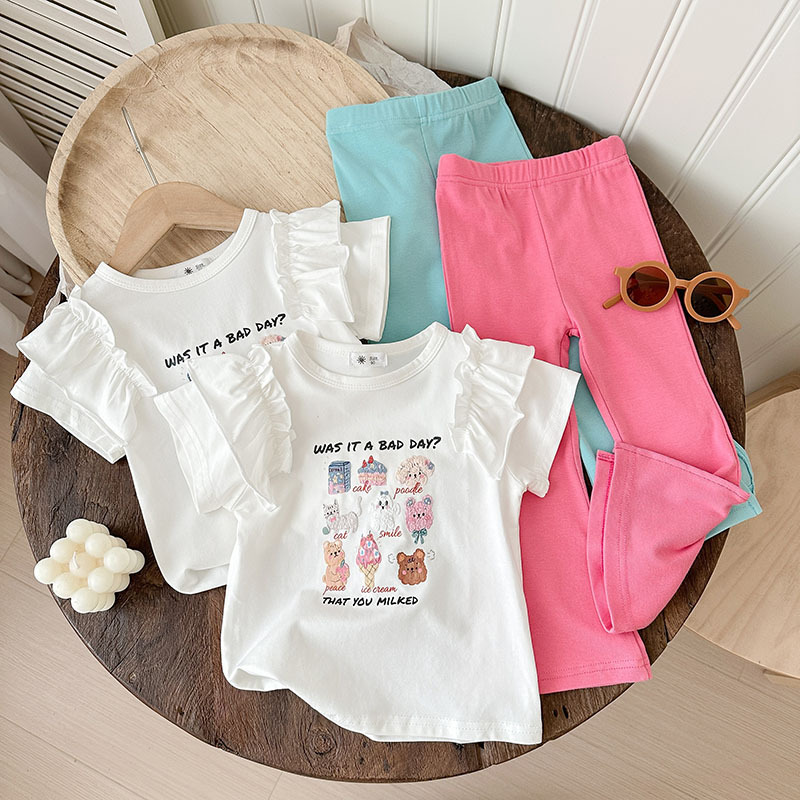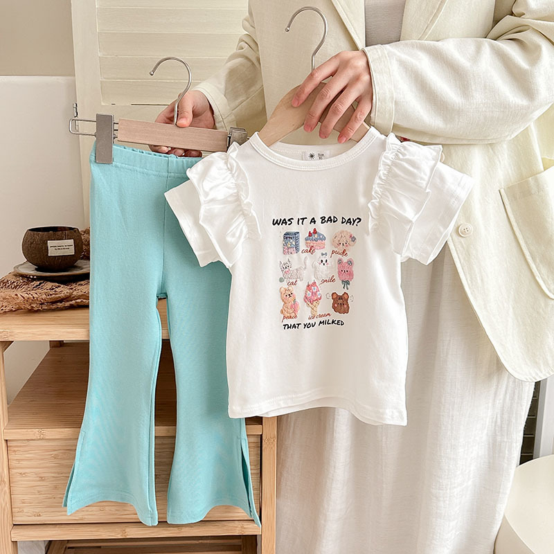 Summer girls' suits, stylish halter, ruffled blouse, flared trousers, 2024 summer cross-border children's clothing trend