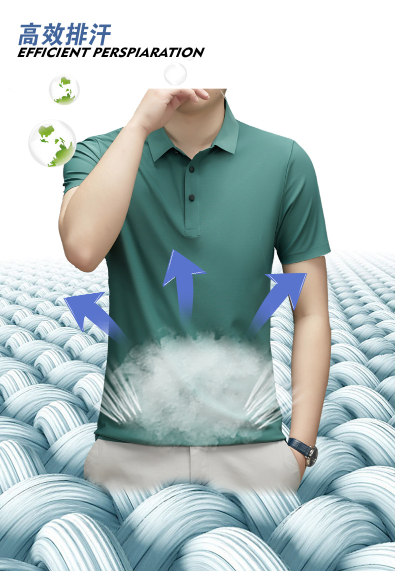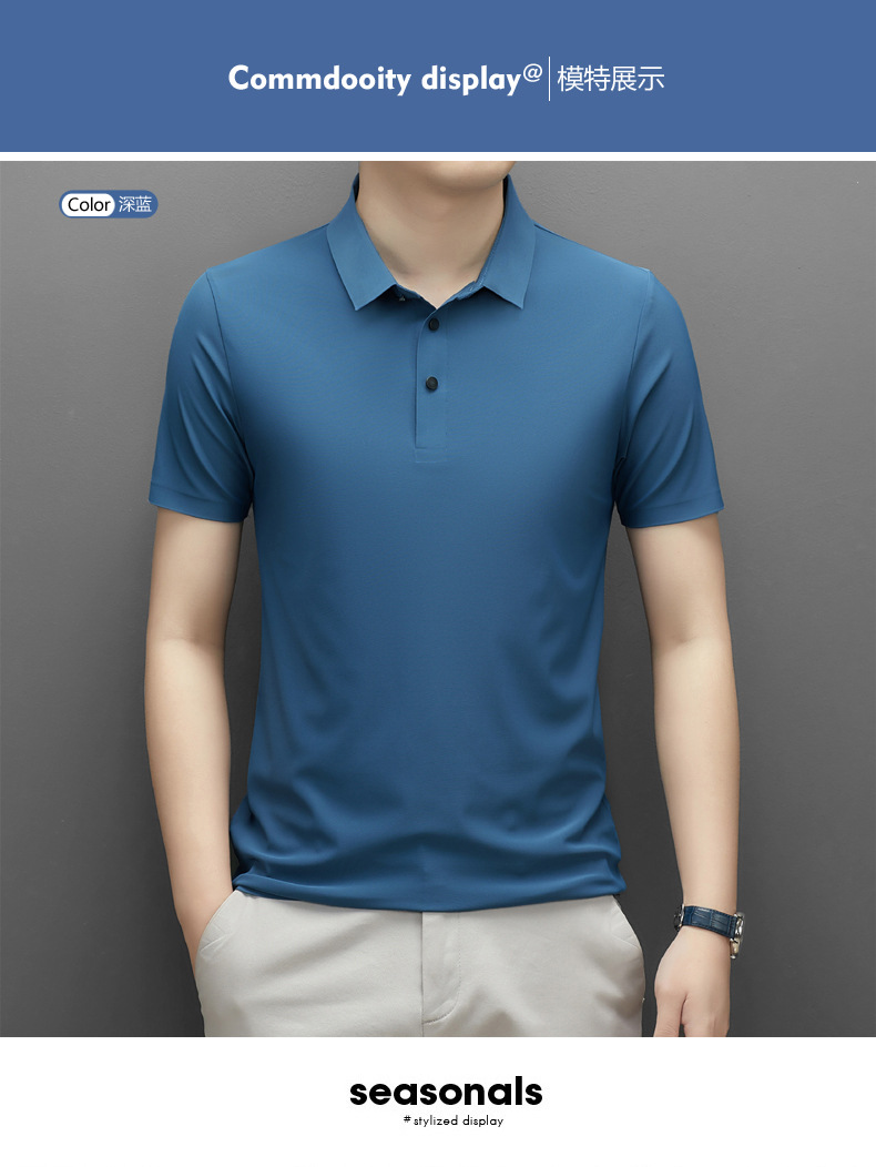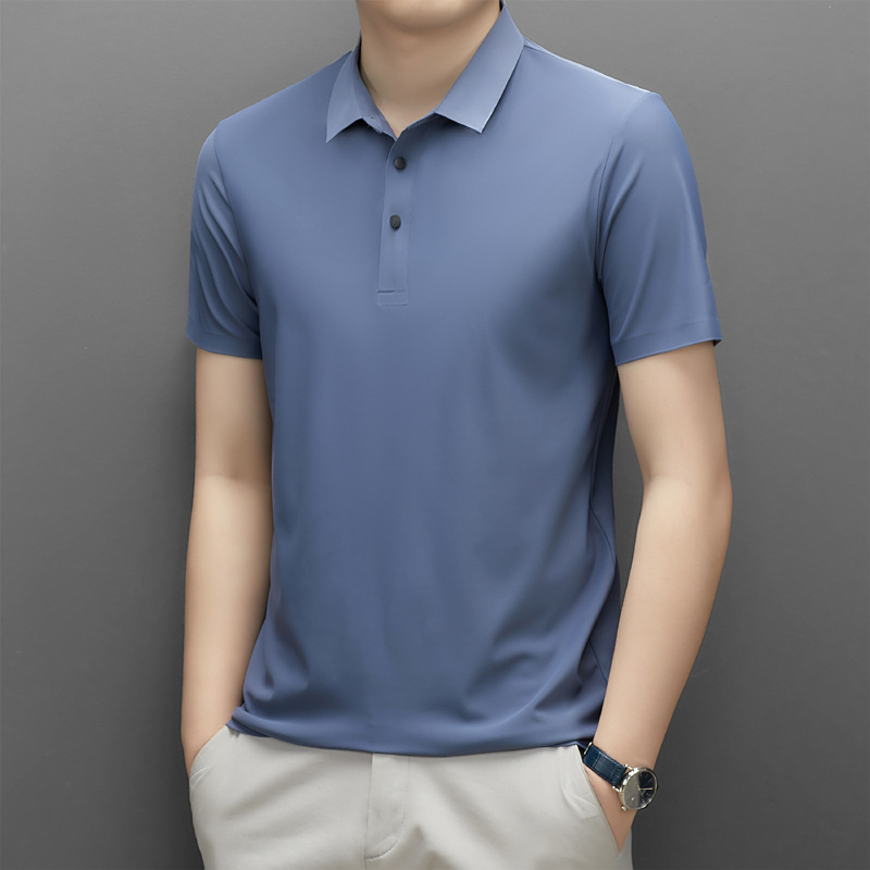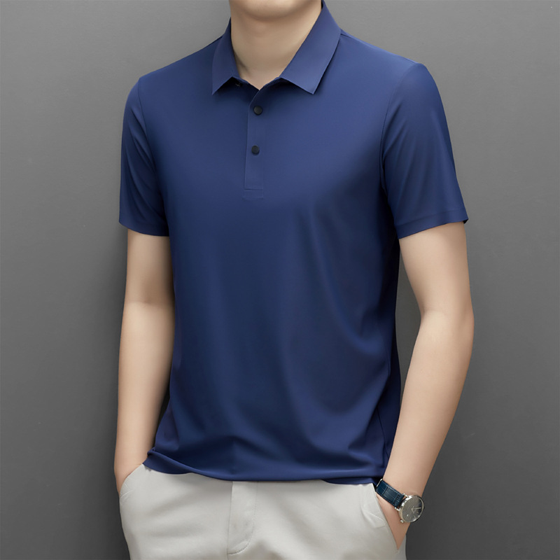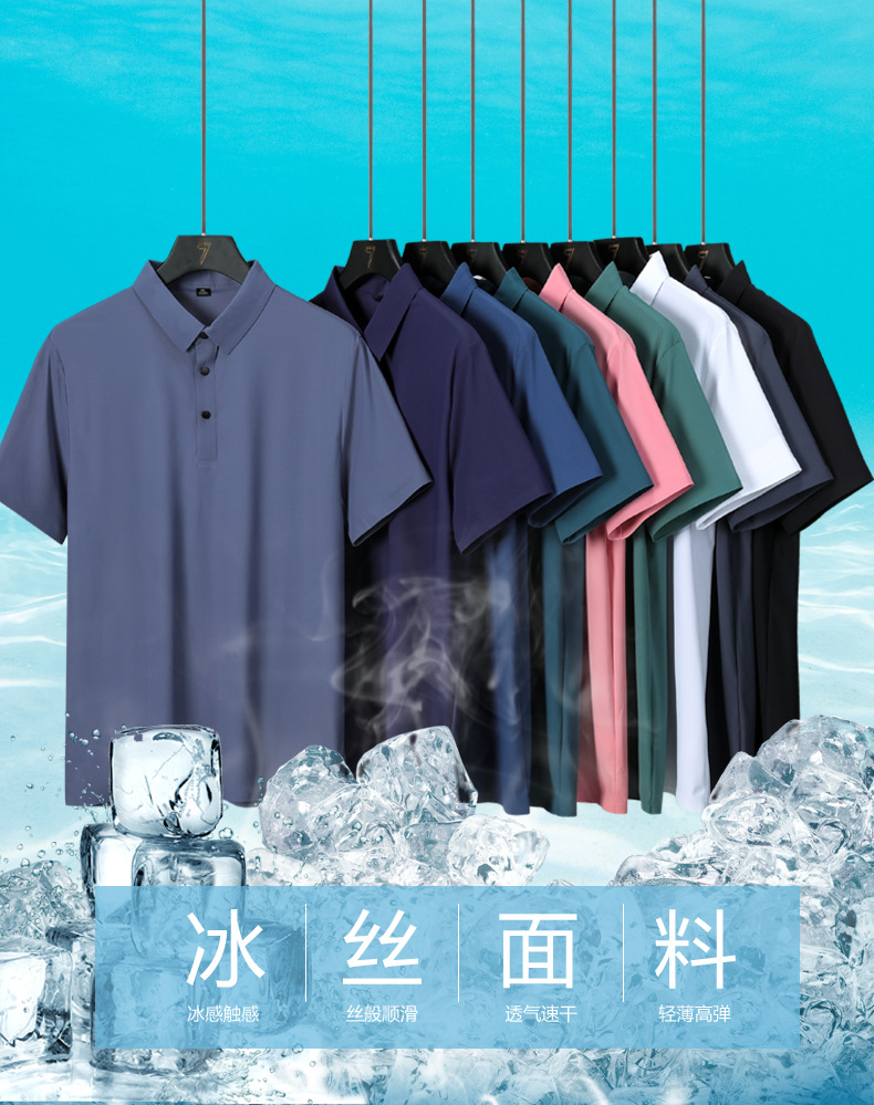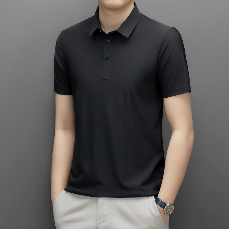 Summer men's seamless quick-drying breathable business casual Polo shirt, ice silk stretch solid color solid size short-sleeved T-shirt for men