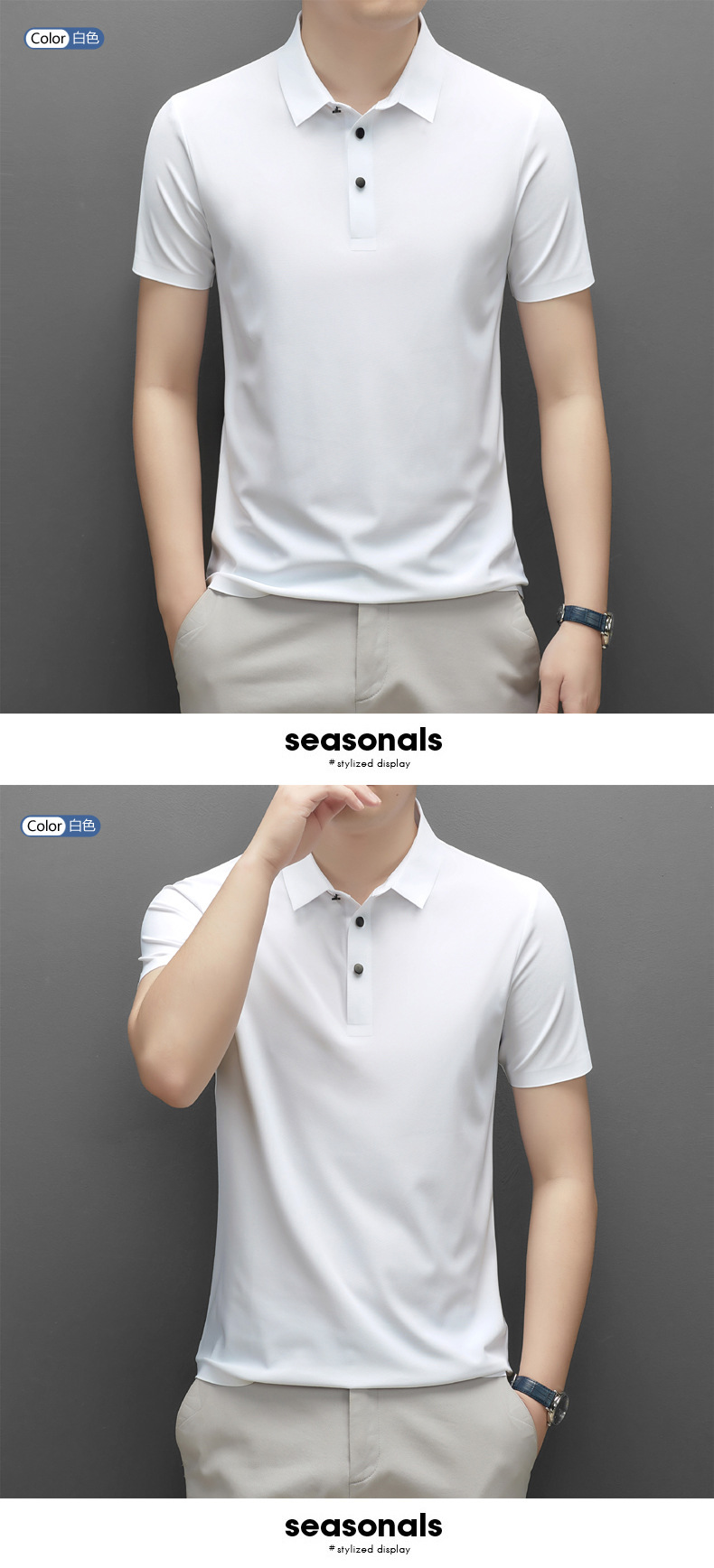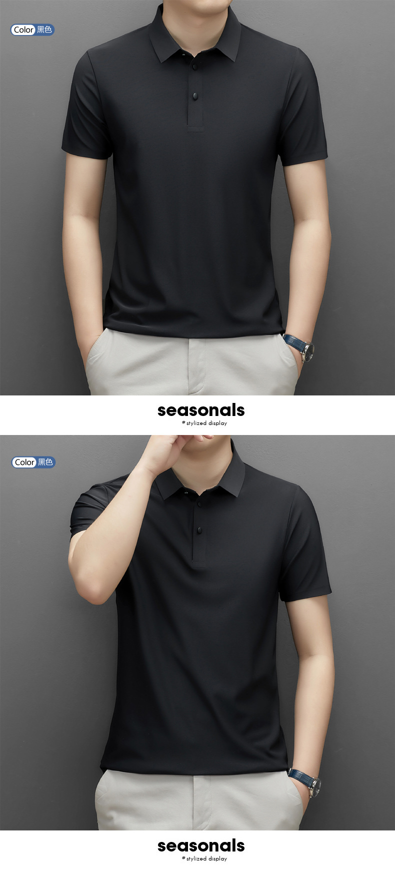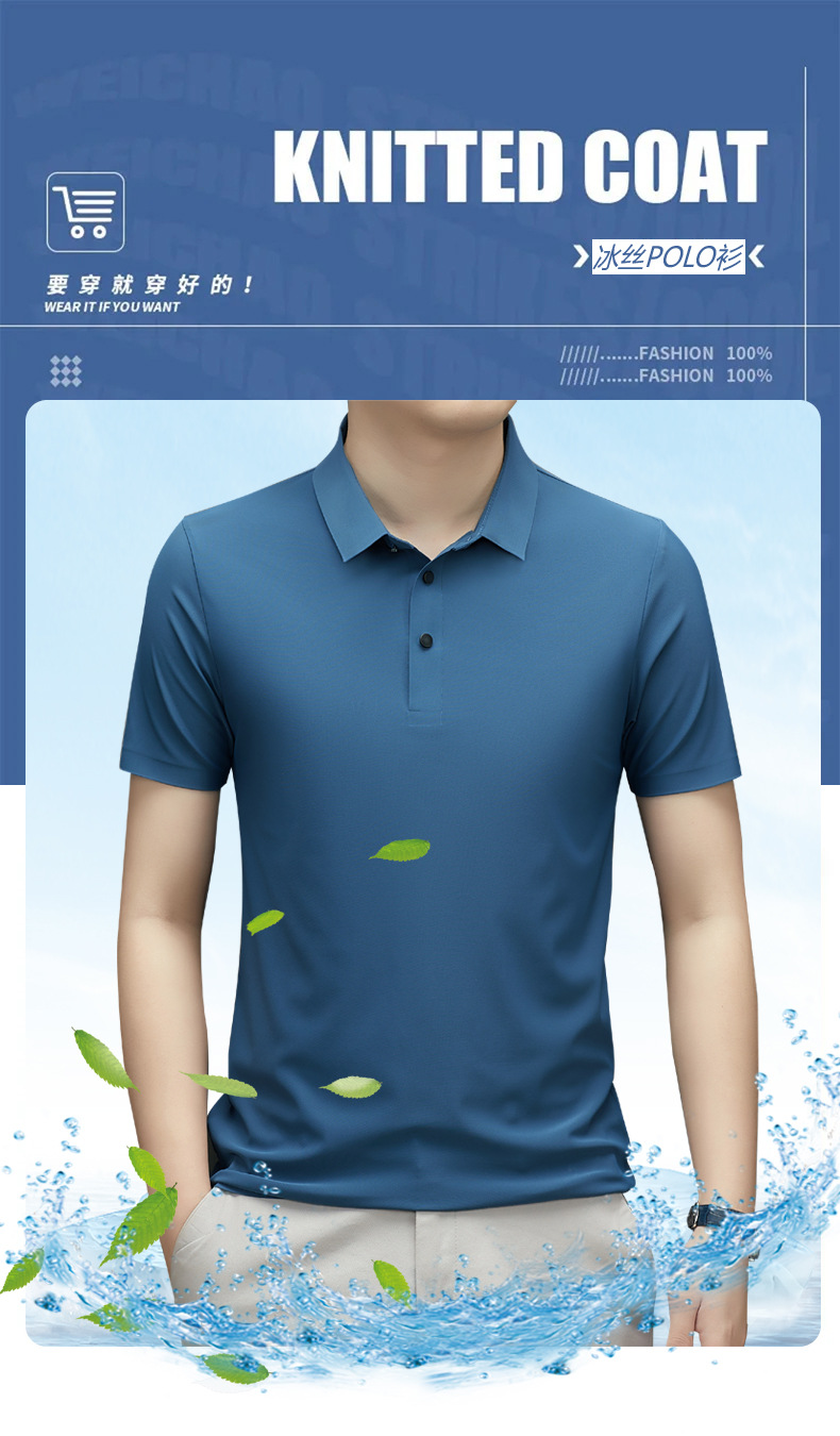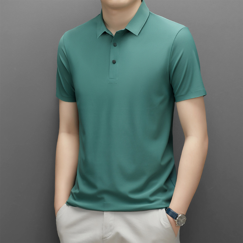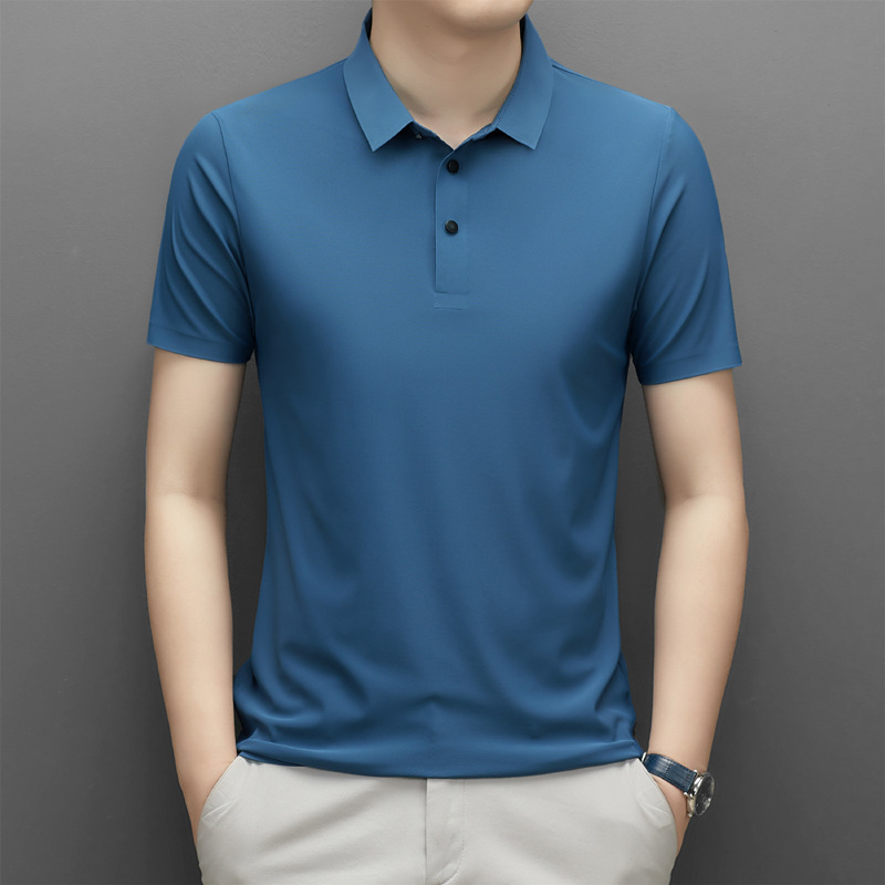Summer men's seamless quick-drying breathable business casual Polo shirt, ice silk stretch solid color solid size short-sleeved T-shirt for men