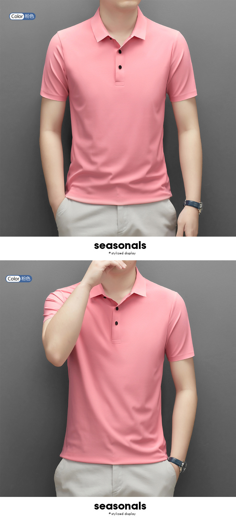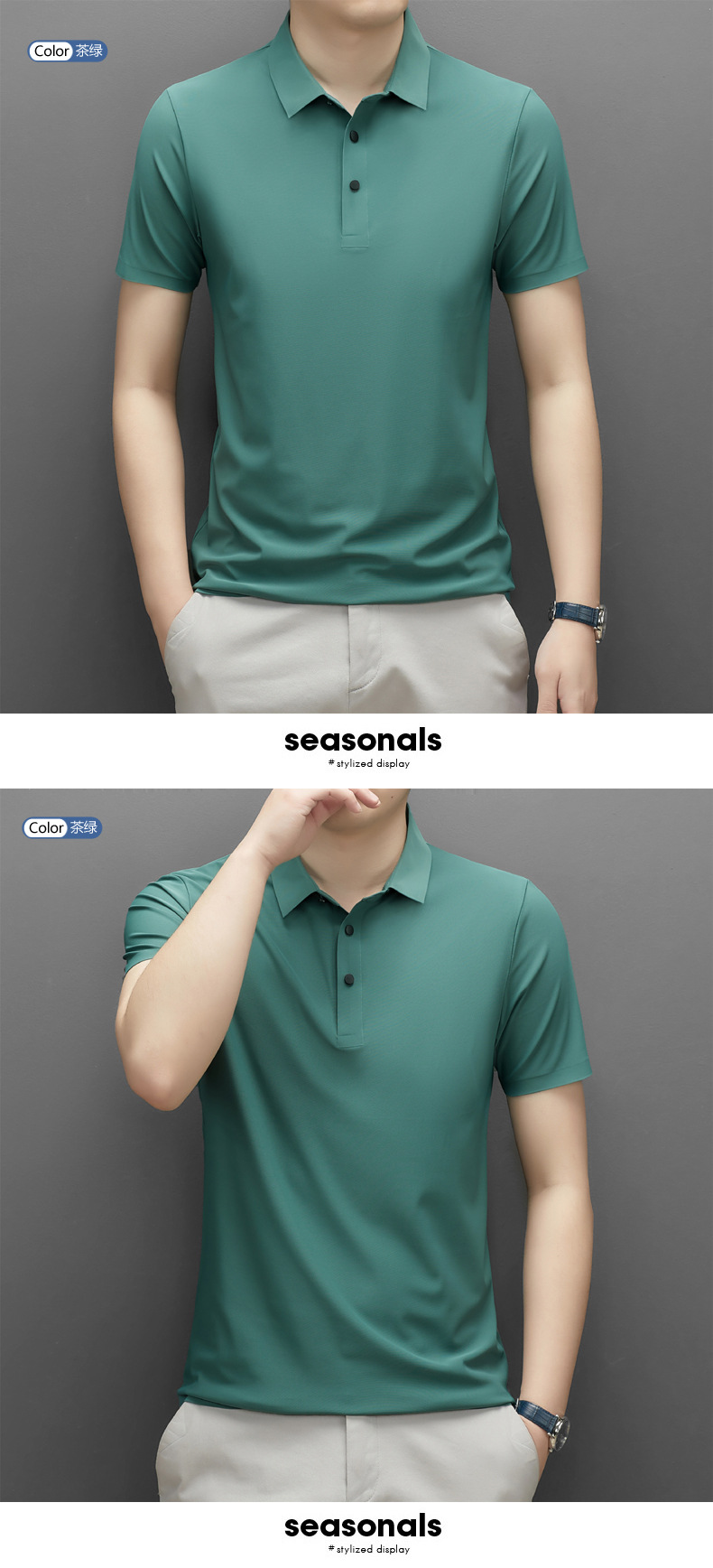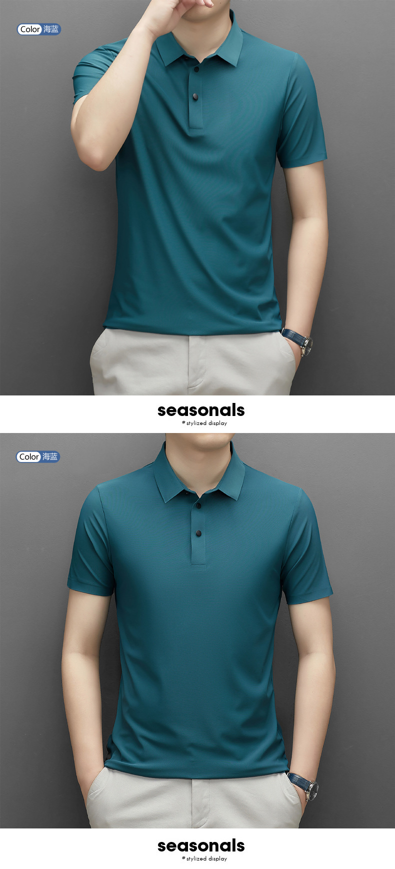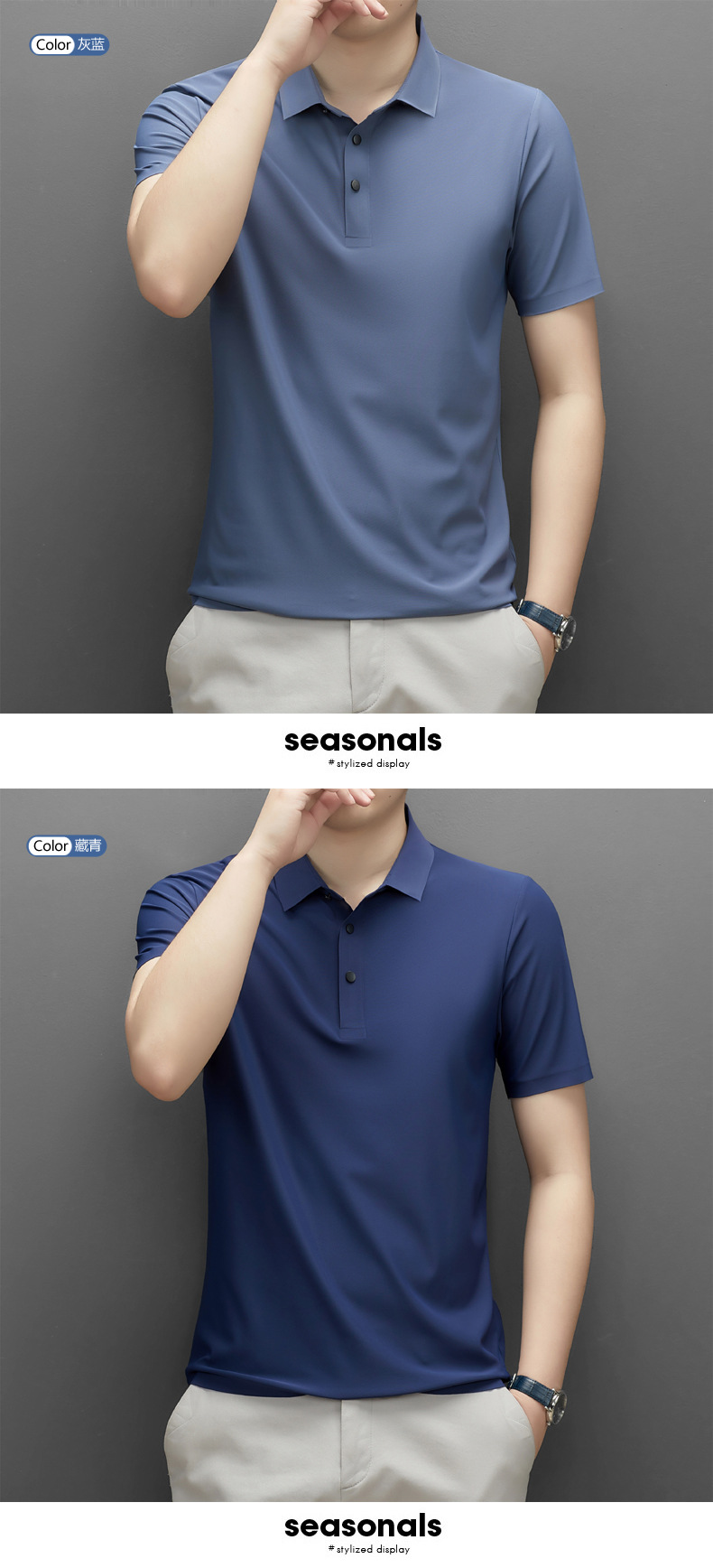 Summer men's seamless quick-drying breathable business casual Polo shirt, ice silk stretch solid color solid size short-sleeved T-shirt for men
