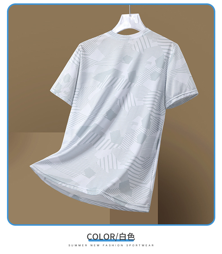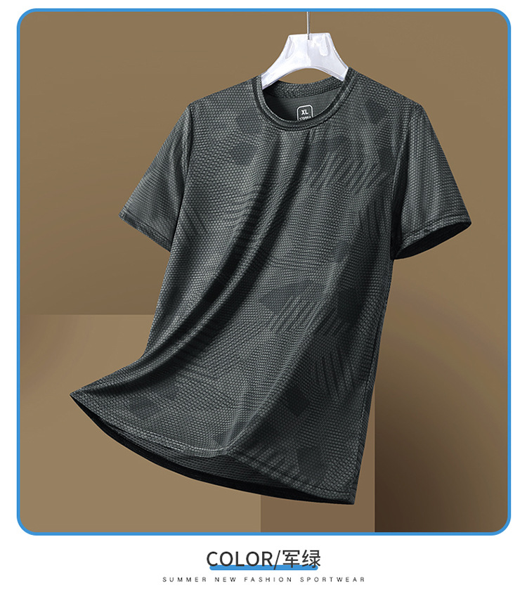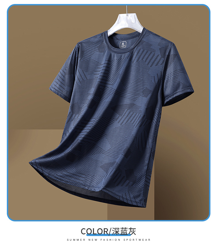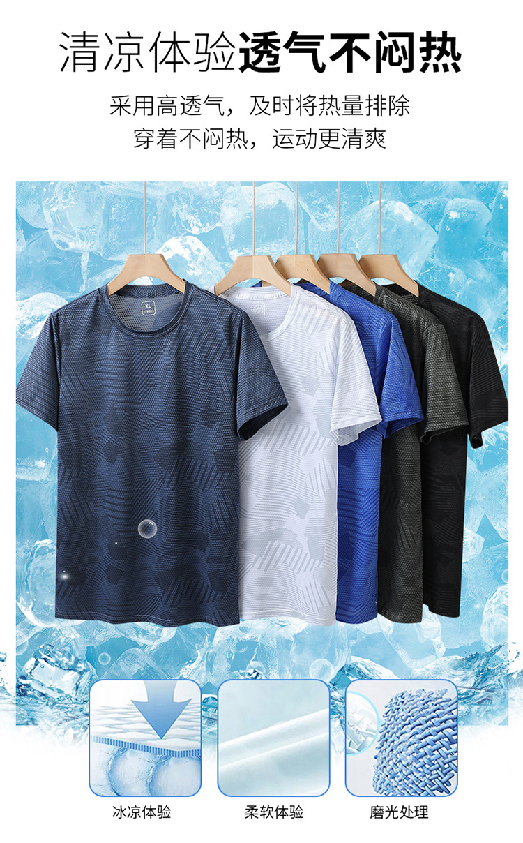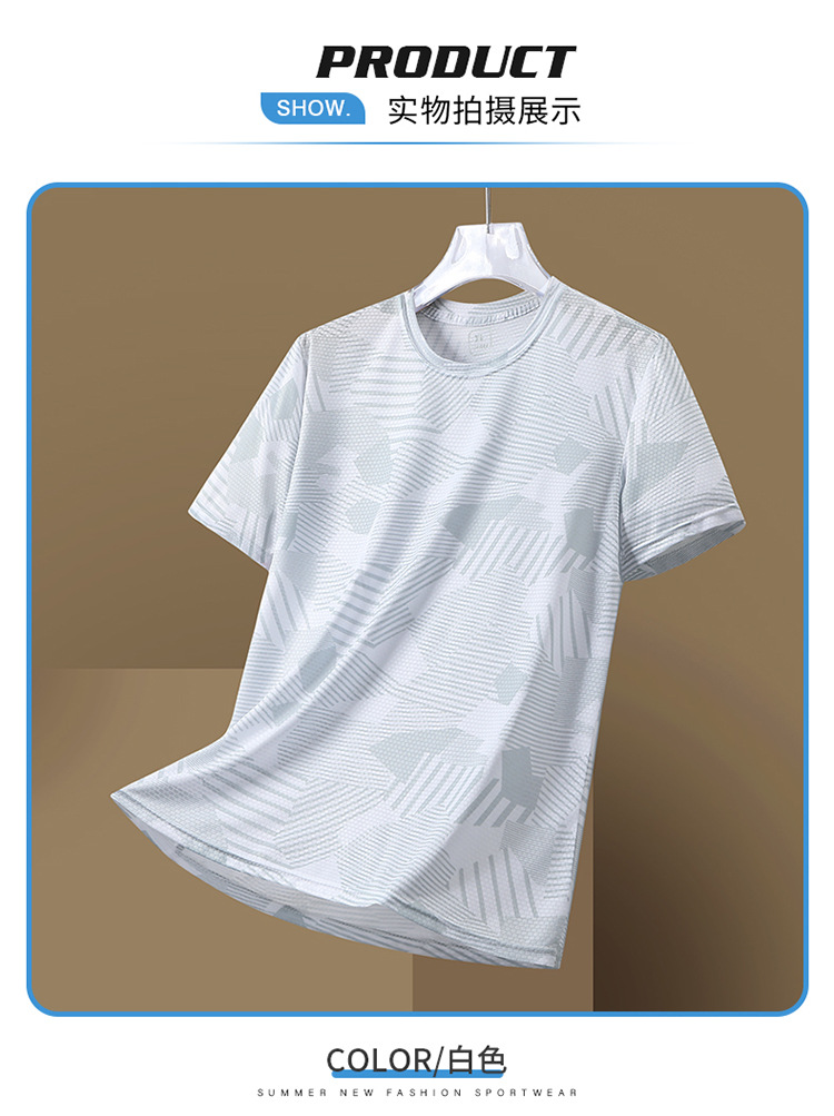 Summer new printed ice silk T-shirt for men, a breathable short-sleeved shirt for sportswear, casual running and fitness, and outdoor quick-drying garment
