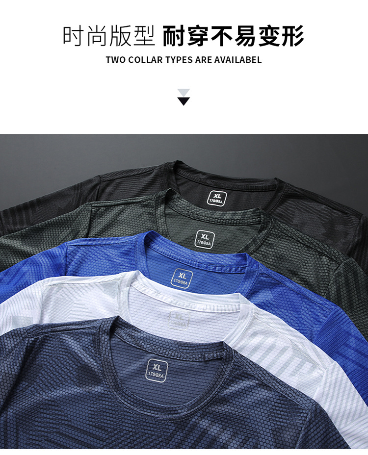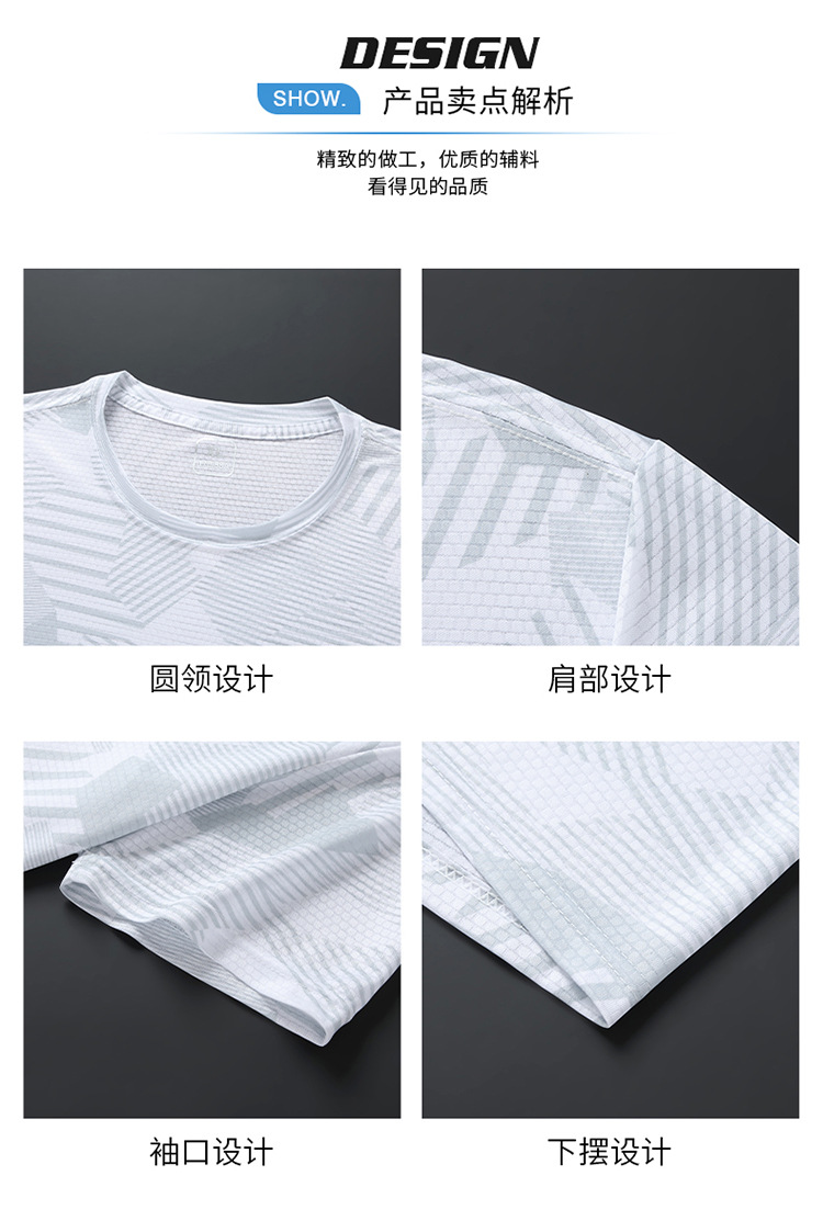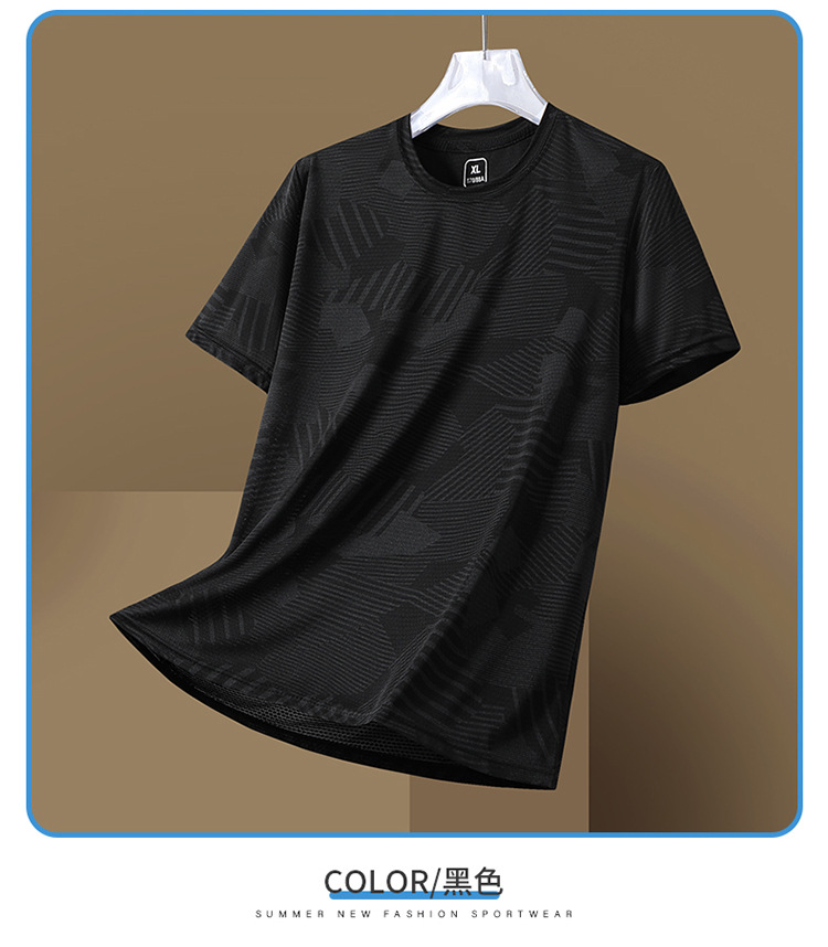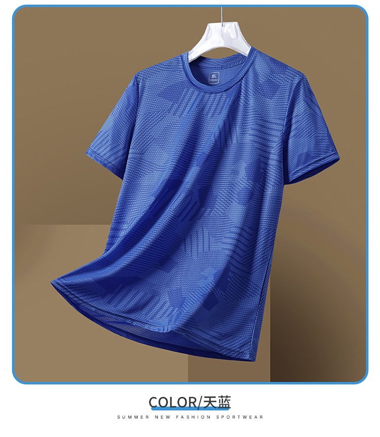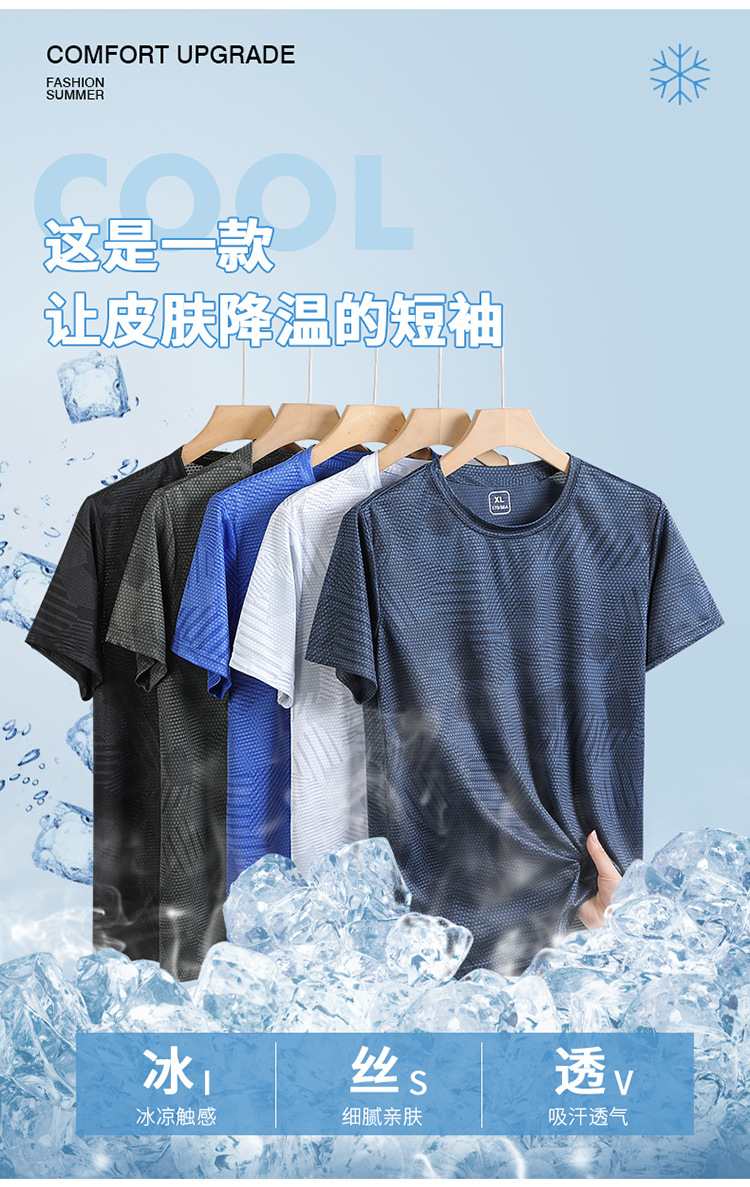 Summer new printed ice silk T-shirt for men, a breathable short-sleeved shirt for sportswear, casual running and fitness, and outdoor quick-drying garment