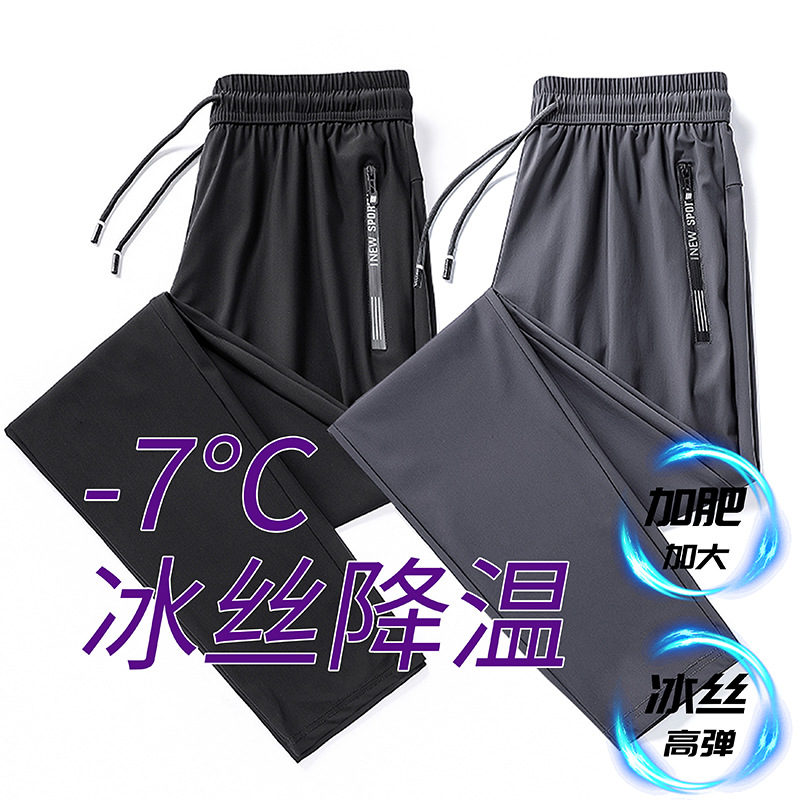 Ice silk pants Men's summer thin men's casual pants Breathable, tight-fitting, loose, high-elasticity, quick-drying air-conditioned sports pants
