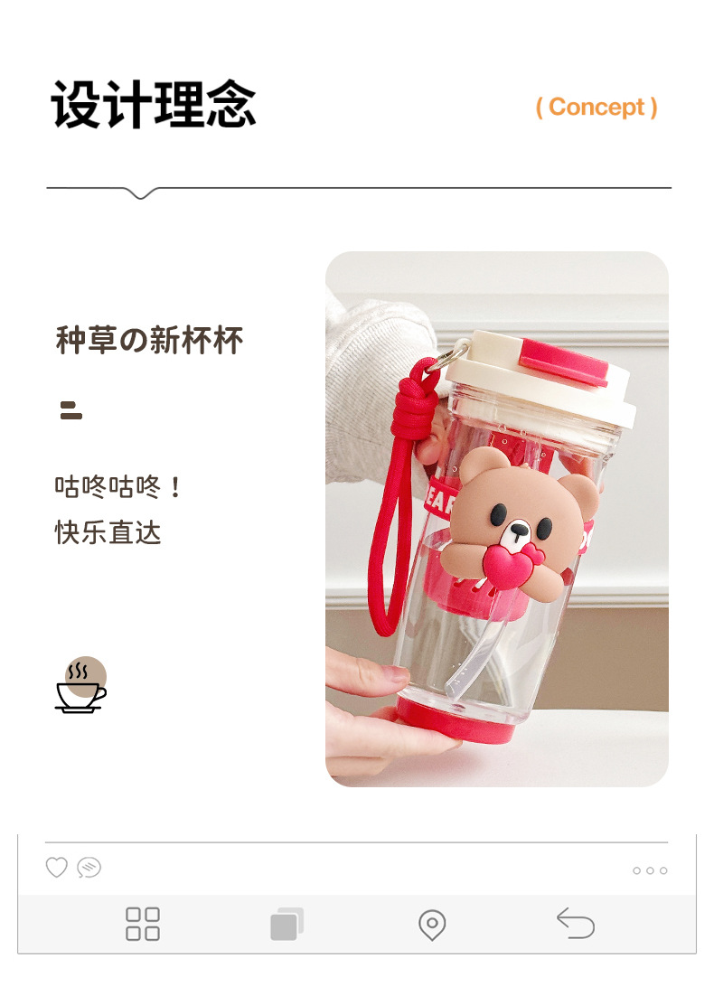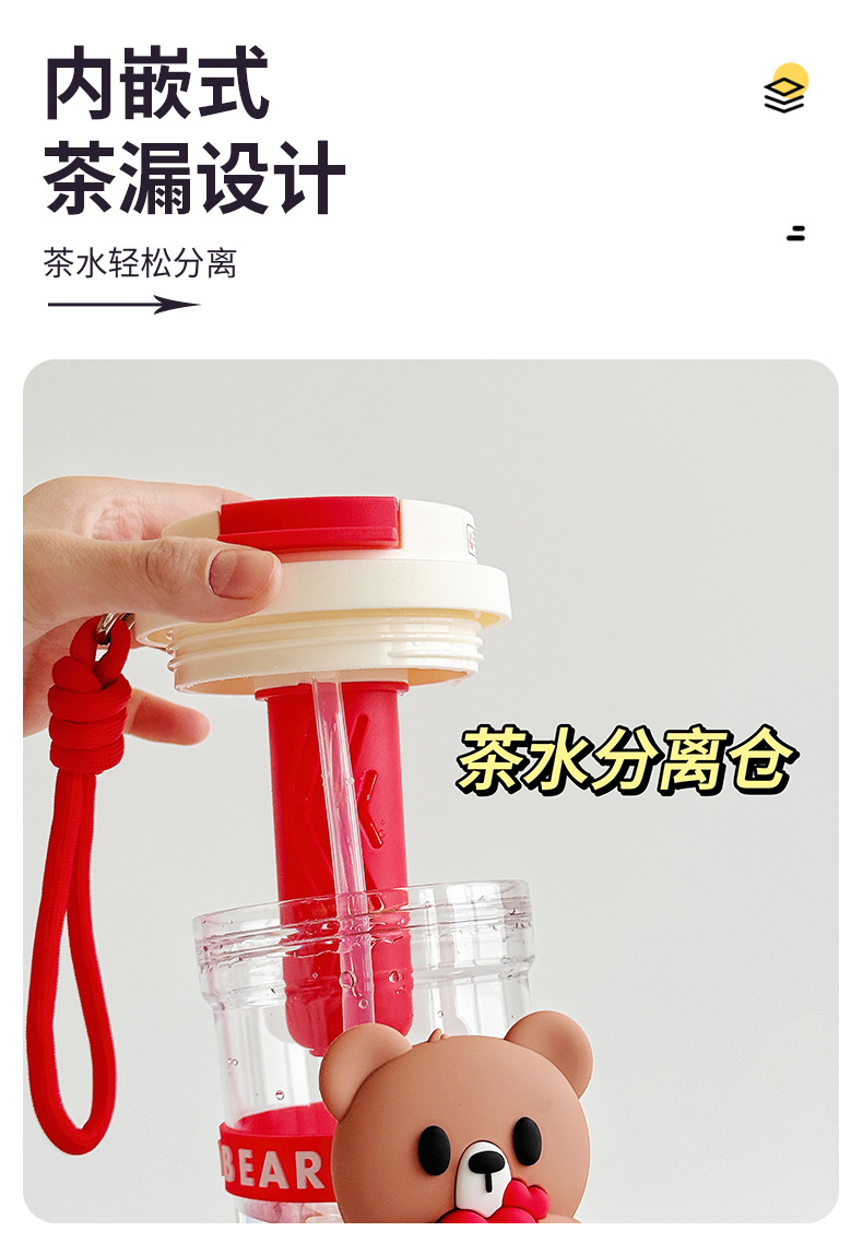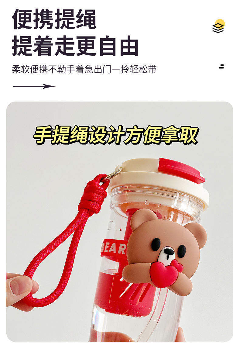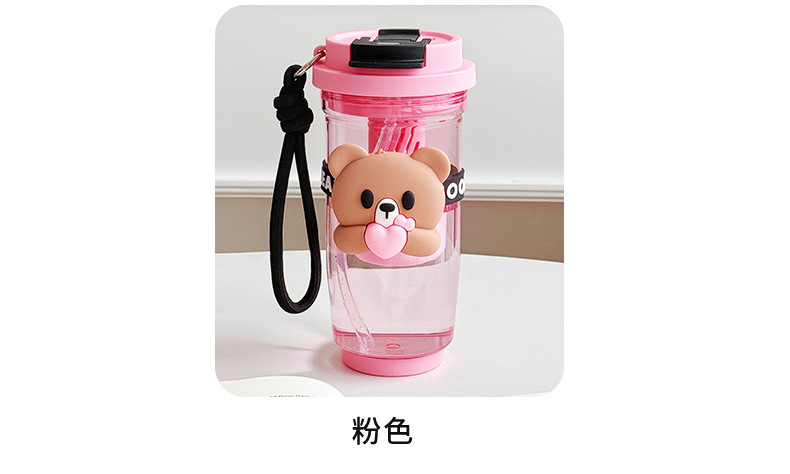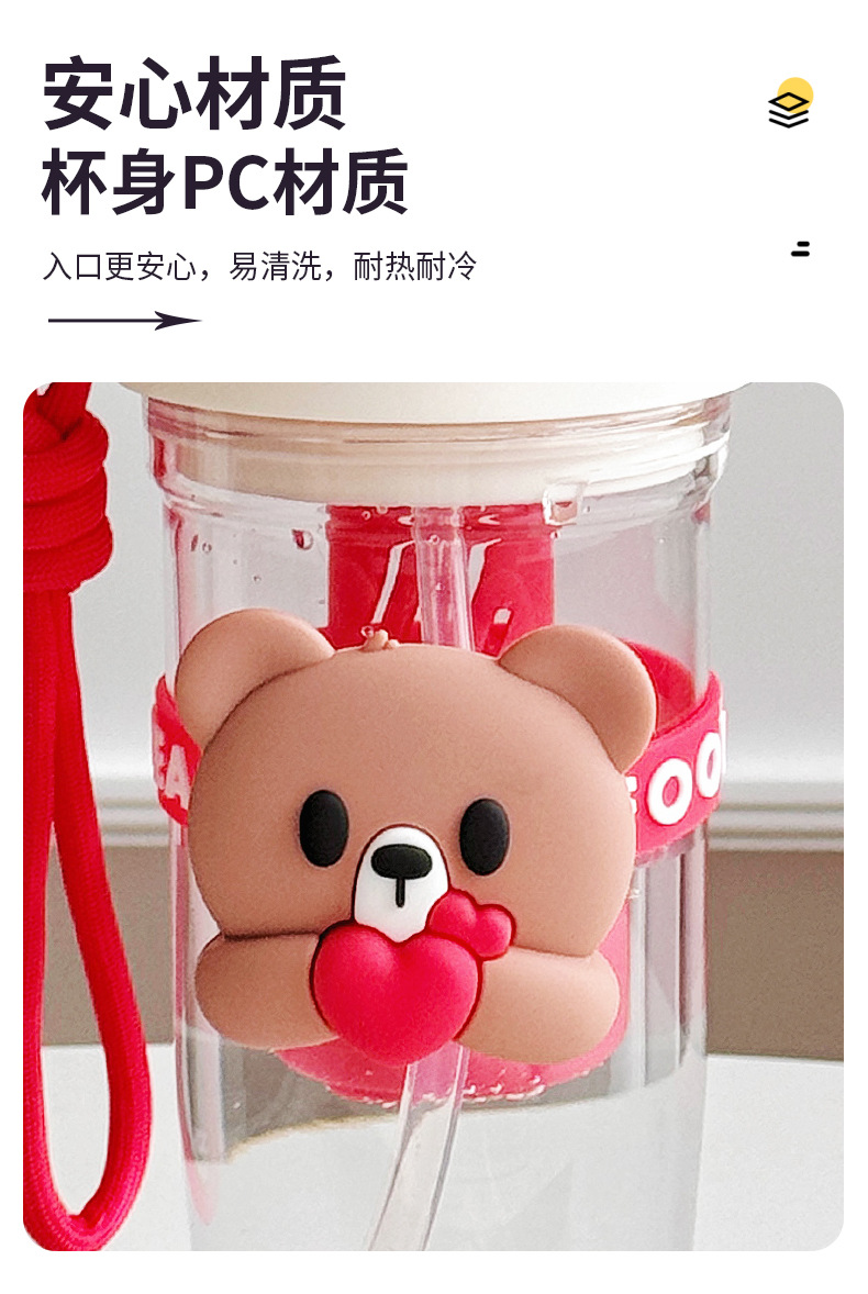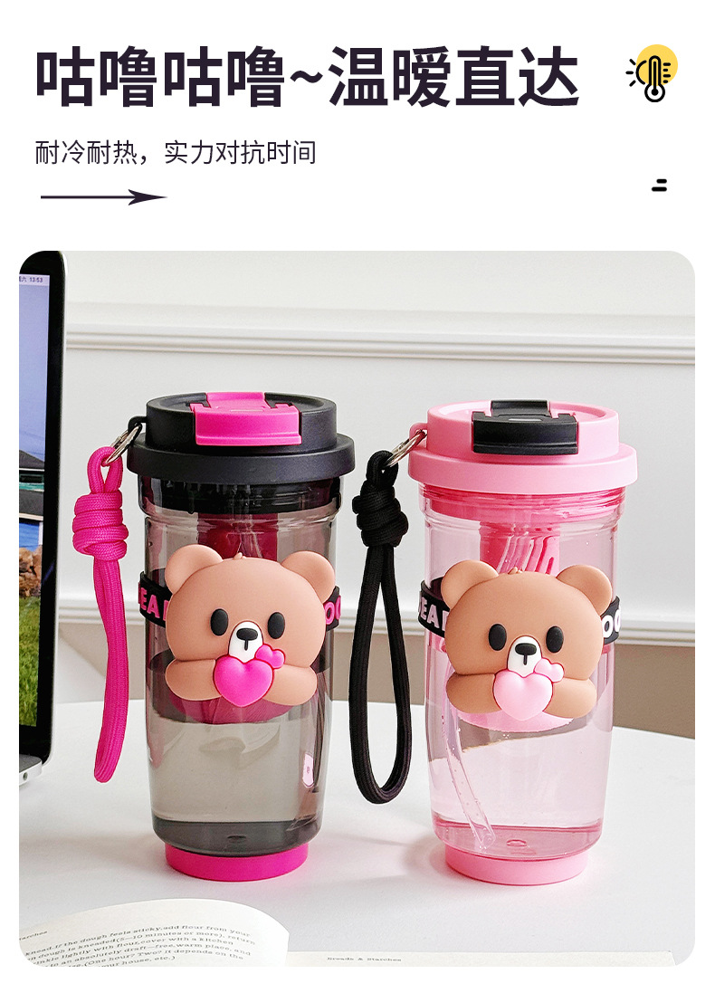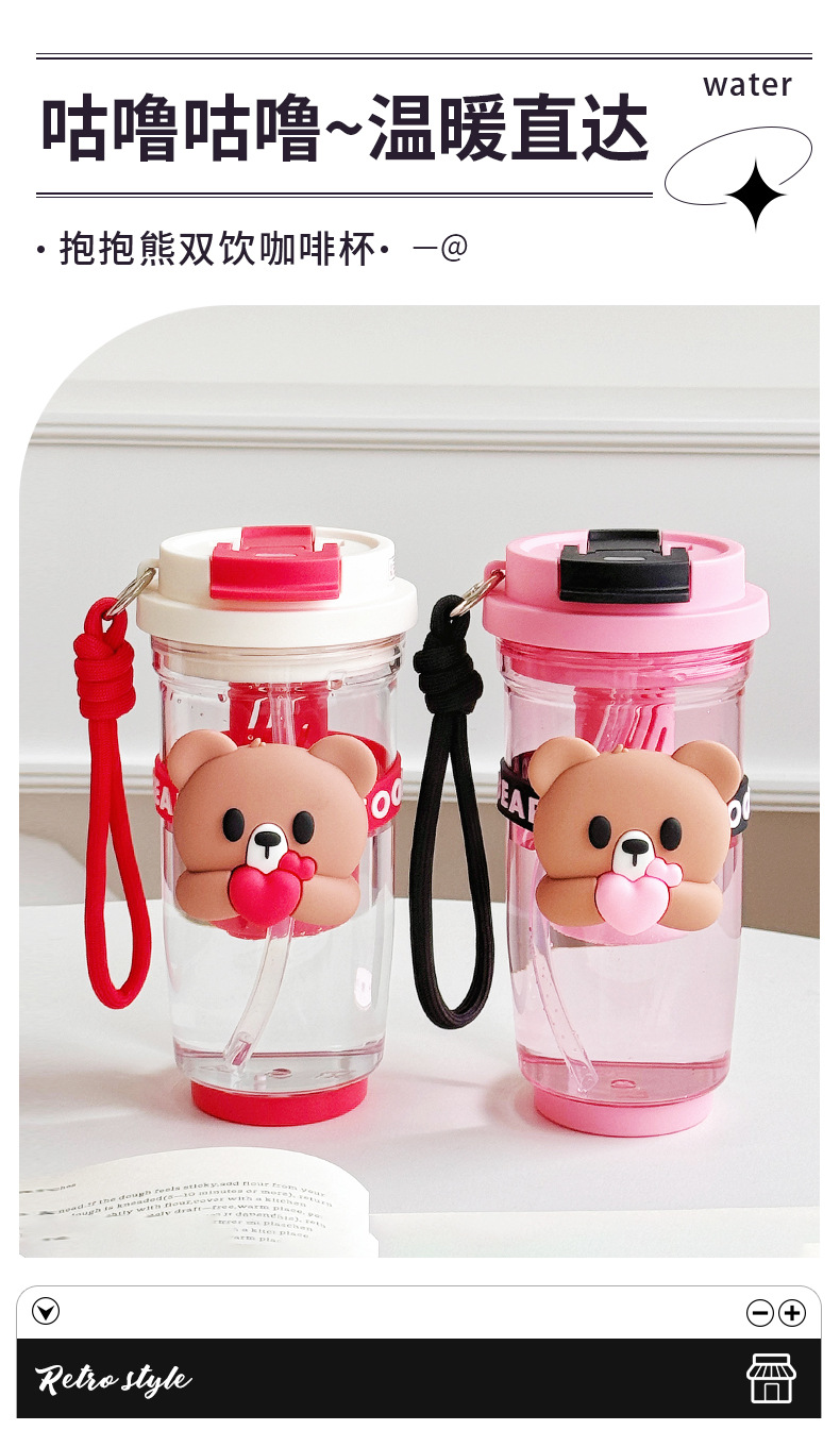 Summer new cartoon hug bear double-drinking plastic cup, Instagram popular water cup, high school girls' appearance level straw cup, casual cup