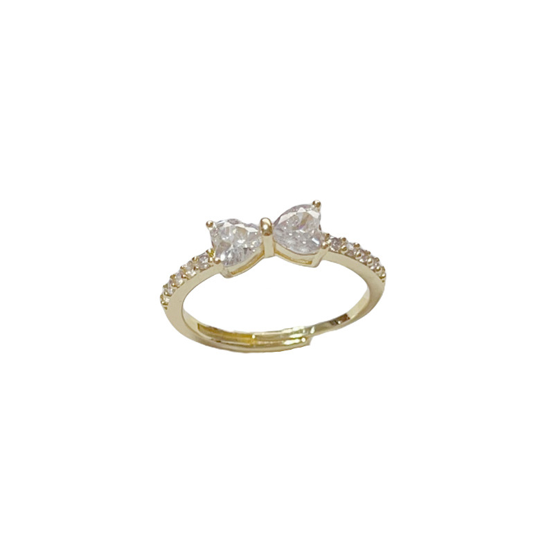 Summer new fashionable and versatile diamond-encrusted bow open ring, exquisite, simple and high-end, super dazzling index finger ring wholesale