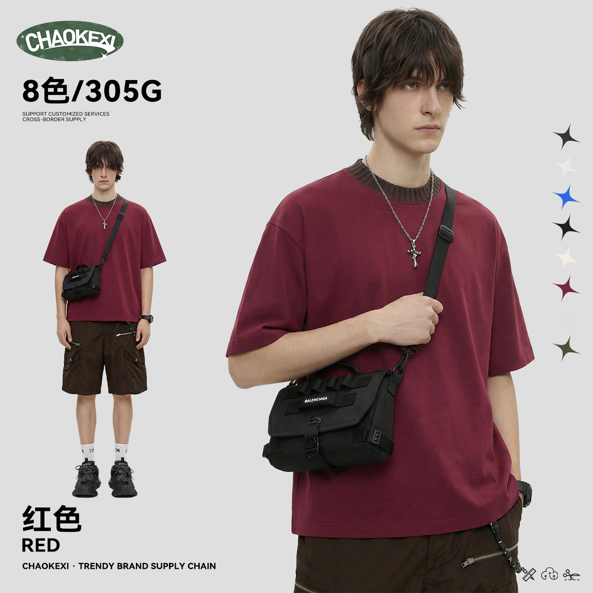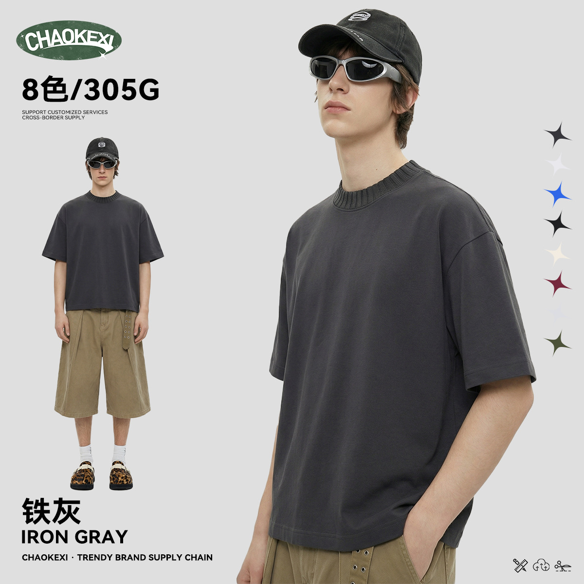 Summer new knitted patchwork color-blocking collar 100% cotton short-sleeved American trendy brand versatile short T-shirt top for men