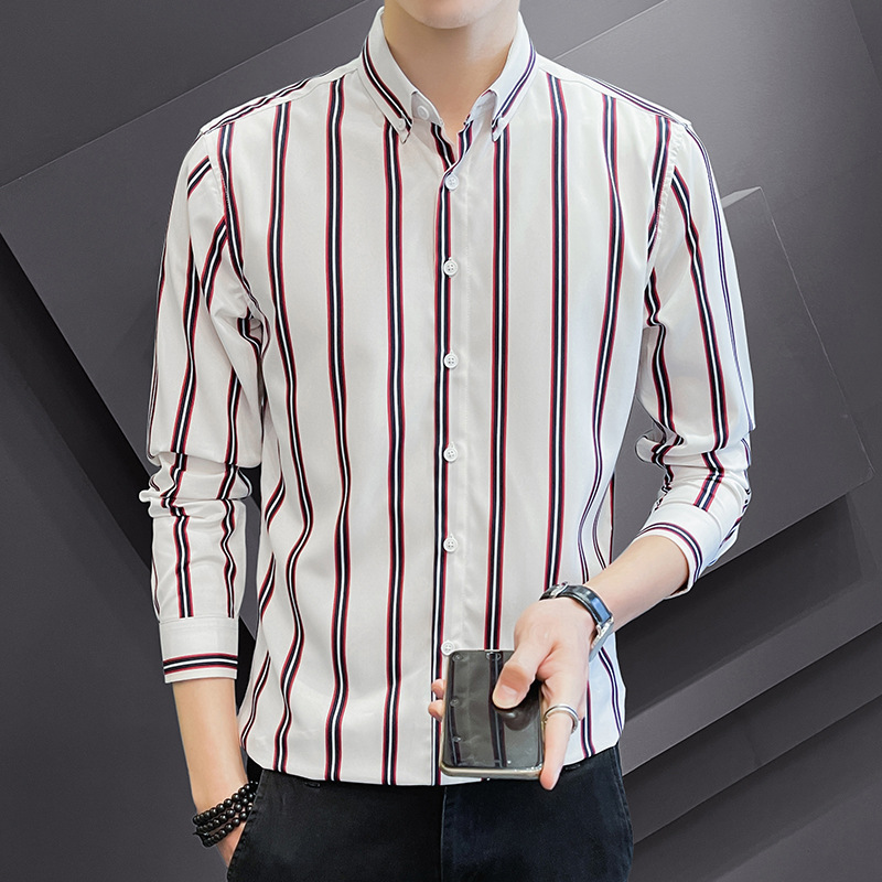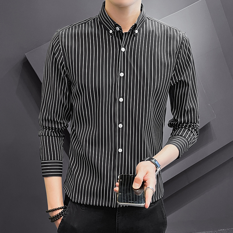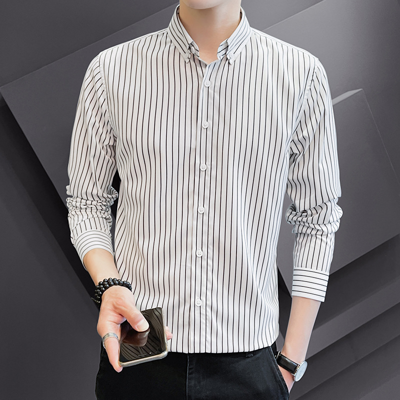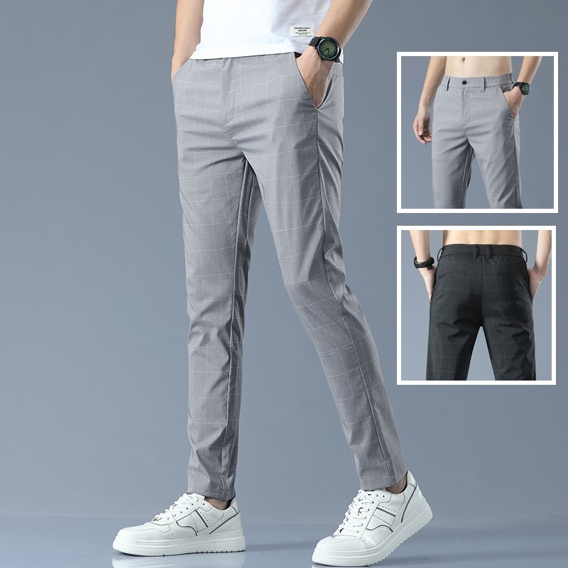 Checked men's casual pants, business fitted small straight leg, summer vertical stripe small dress pants, fashionable stretch long pants for men