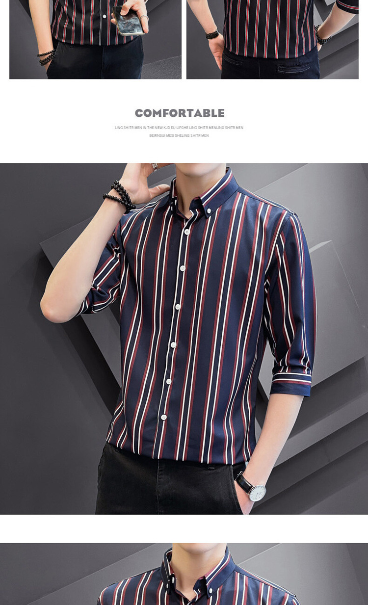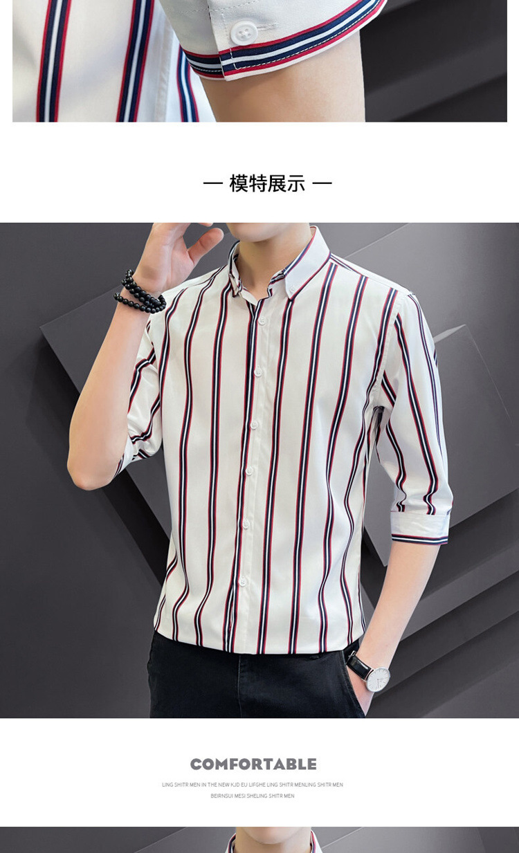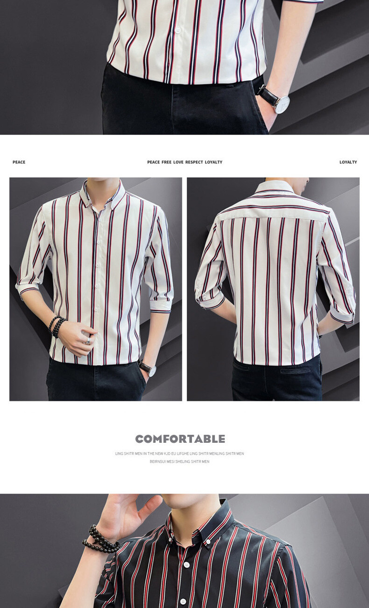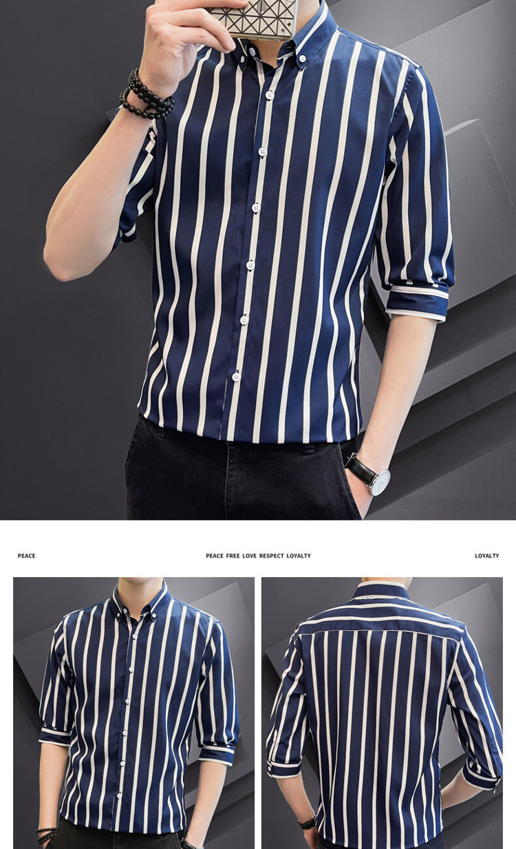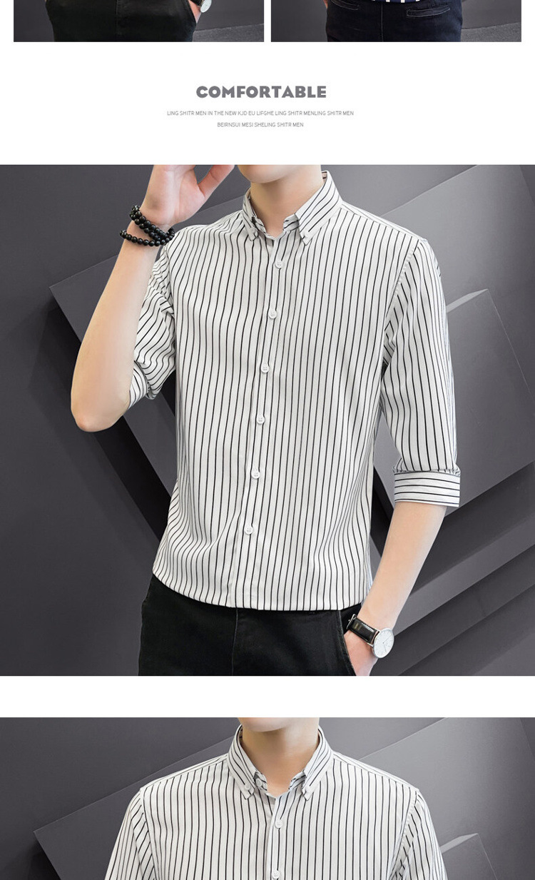 New men's short-sleeved summer loose, trendy, drape and cool casual jacket, five-quarter sleeve shirt for men