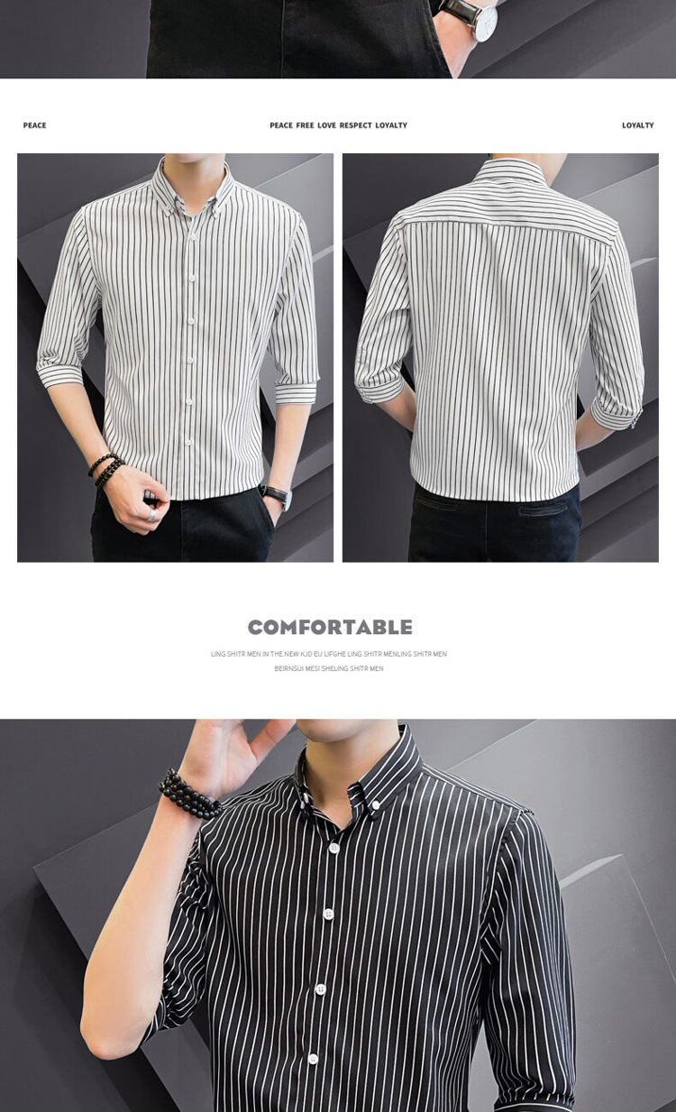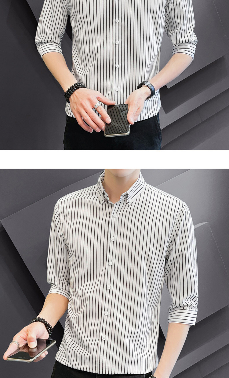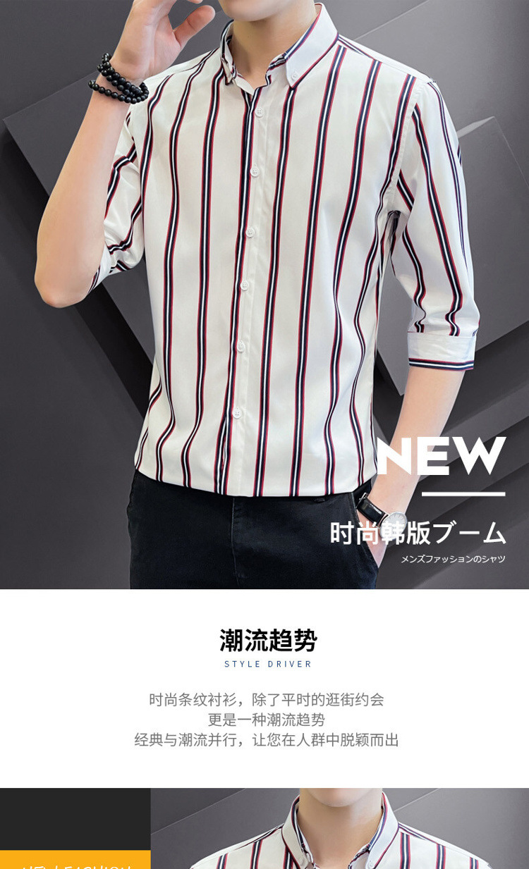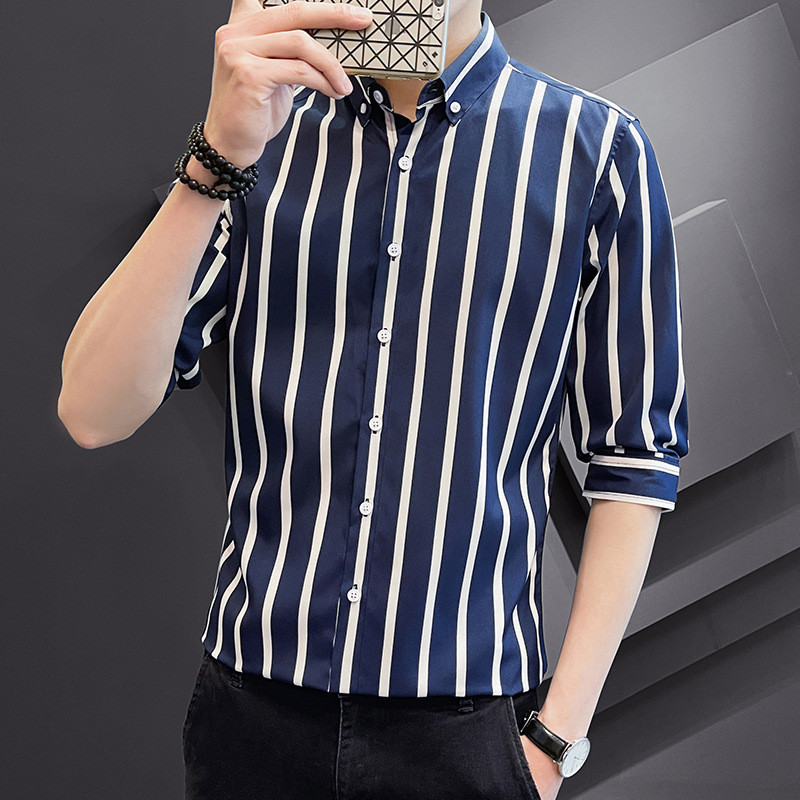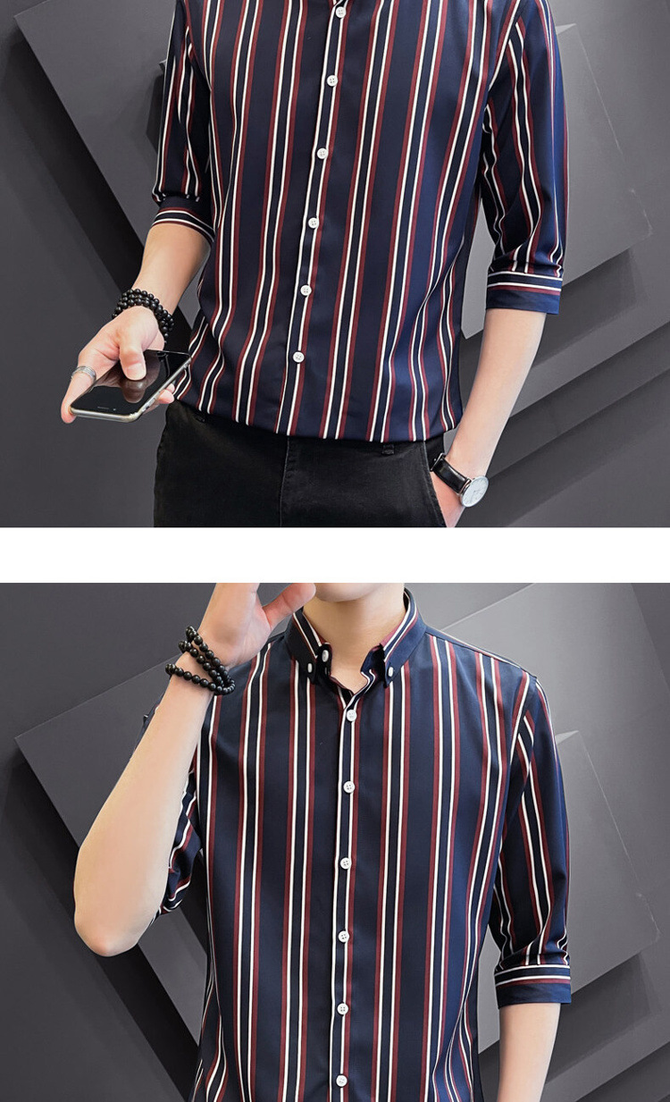 New men's short-sleeved summer loose, trendy, drape and cool casual jacket, five-quarter sleeve shirt for men