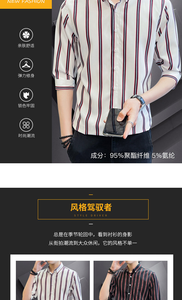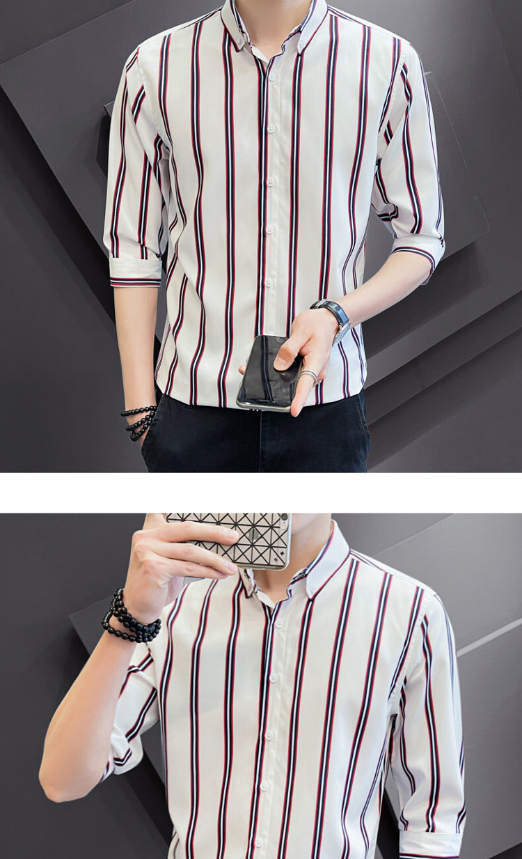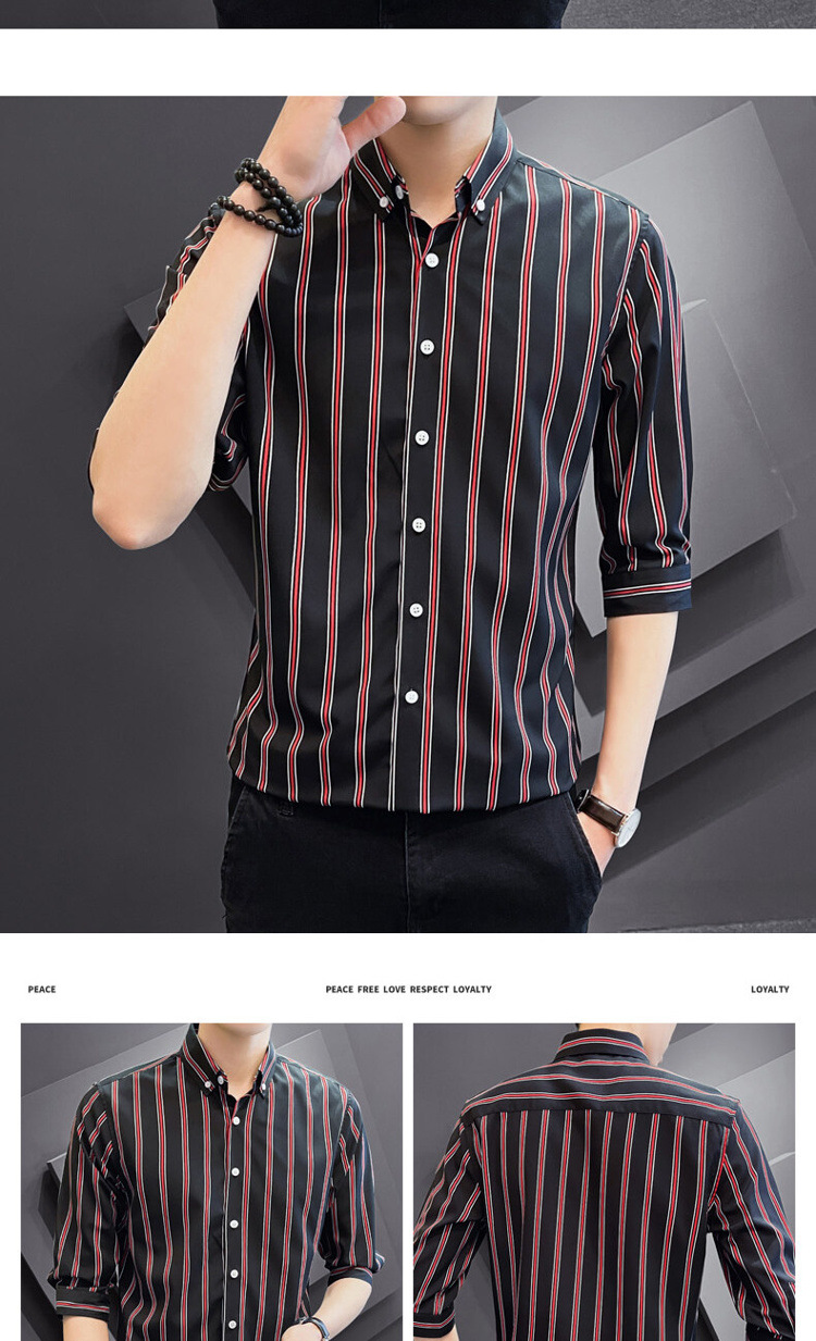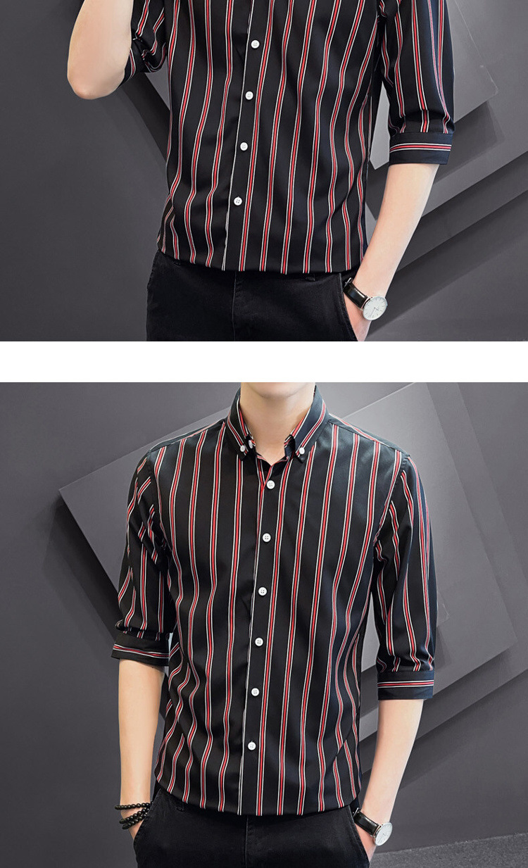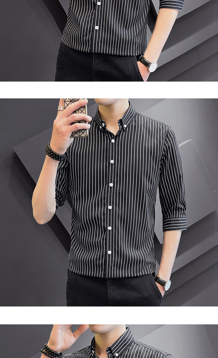 New men's short-sleeved summer loose, trendy, drape and cool casual jacket, five-quarter sleeve shirt for men