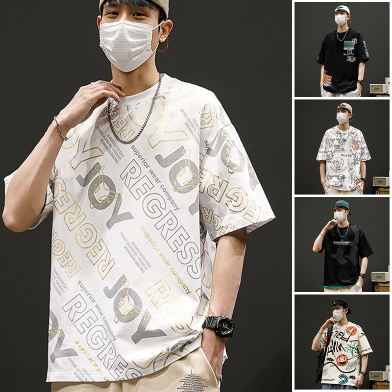 Short-sleeved T-shirt for men, half-sleeved American retro summer loose men's T-shirt, graffiti stylish, plus-size summer fashion trend