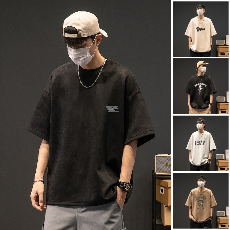 This is a new summer T-shirt for men, featuring a suede short-sleeved design with a retro and trendy American style