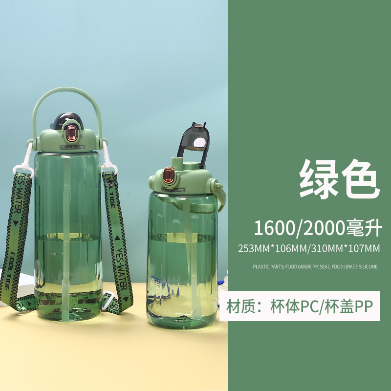 Summer outdoor fitness water bottle for couples, plastic water cup, large-capacity portable straw cup, ton ton bucket
