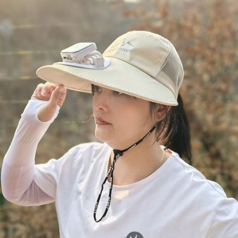 Summer outdoor sunshade wide-brimmed duck-tongue net hats for men and women, open-top sun protection hats for mountain climbing with fans and charging hats, and new breathable net hats for adults