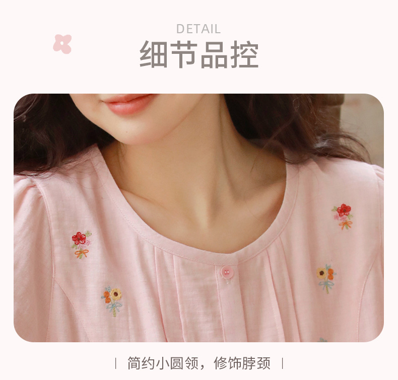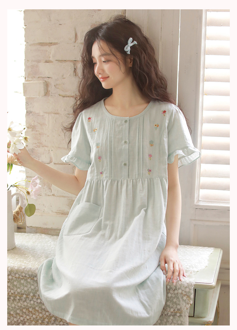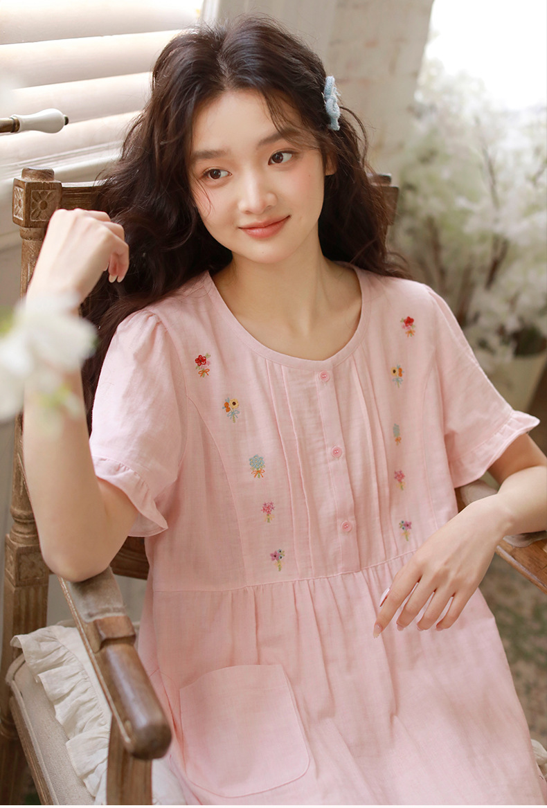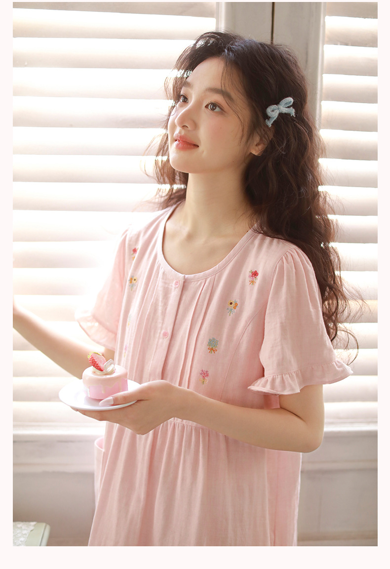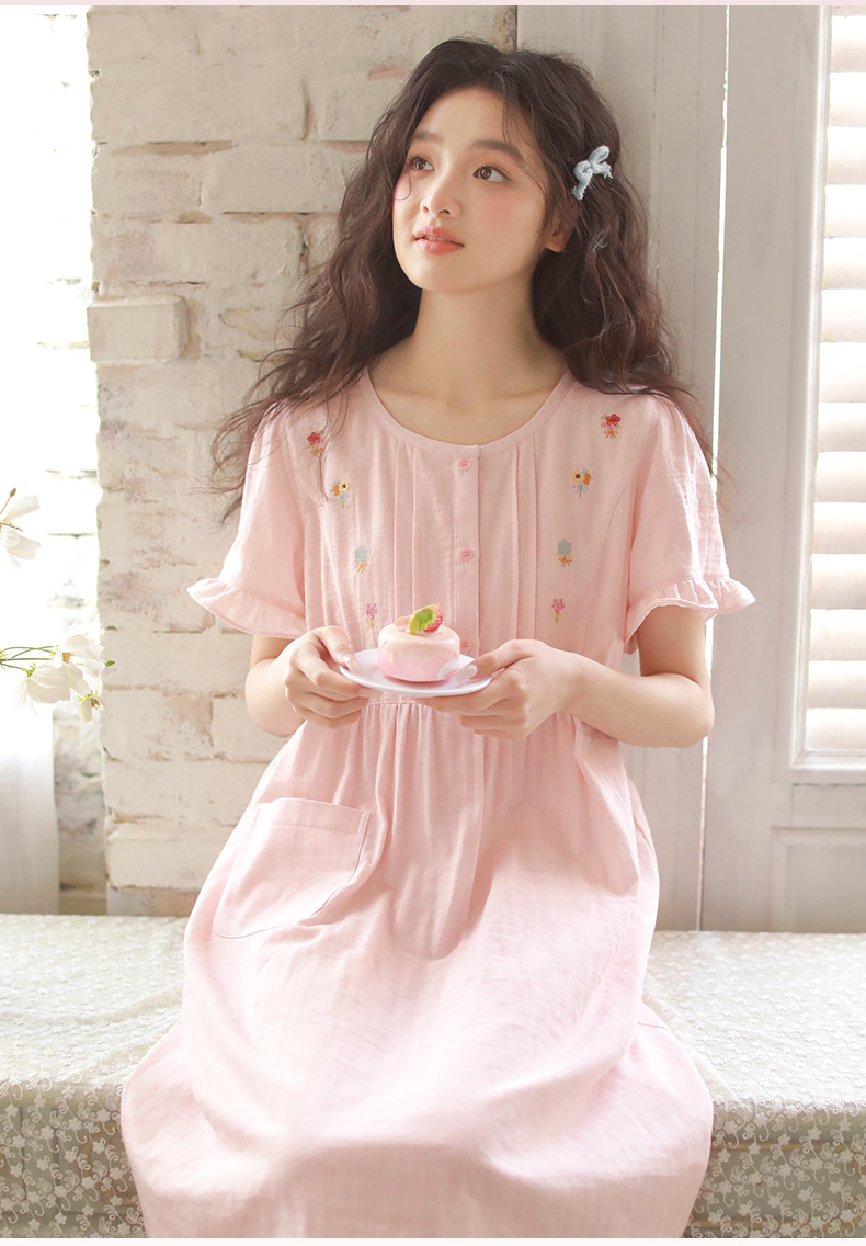 Summer pajama women's Japanese-style sweet princess-style embroidered home wear, short-sleeved round-neck new thin gauze nightgown