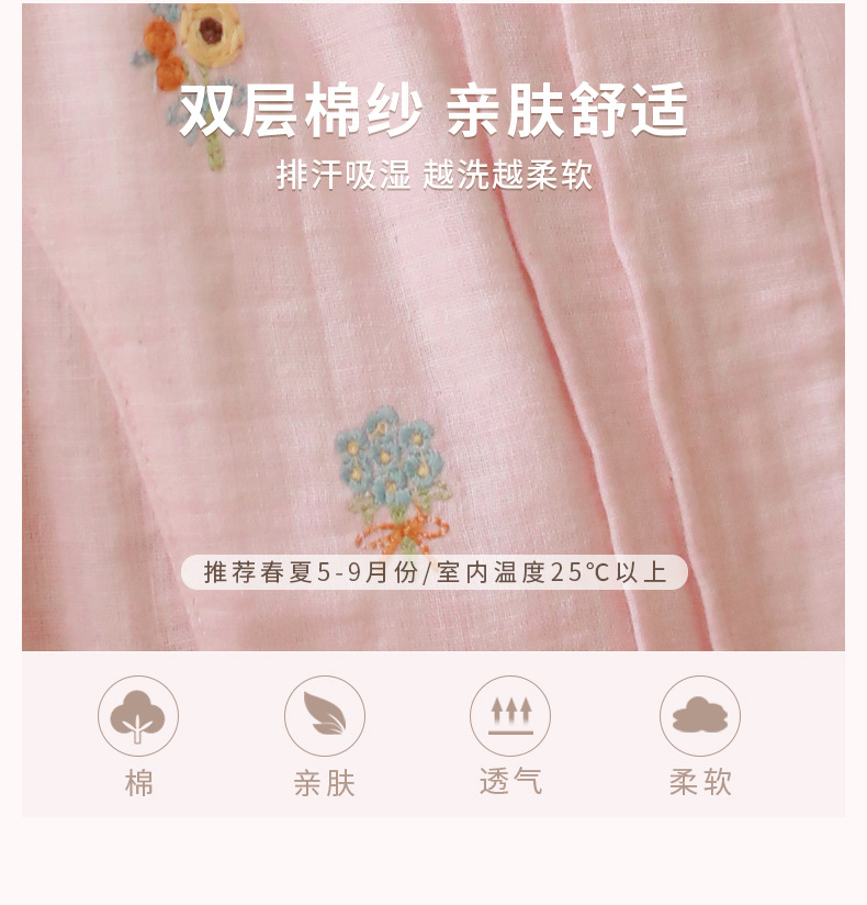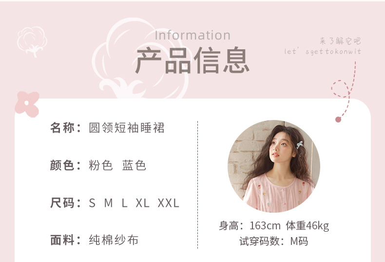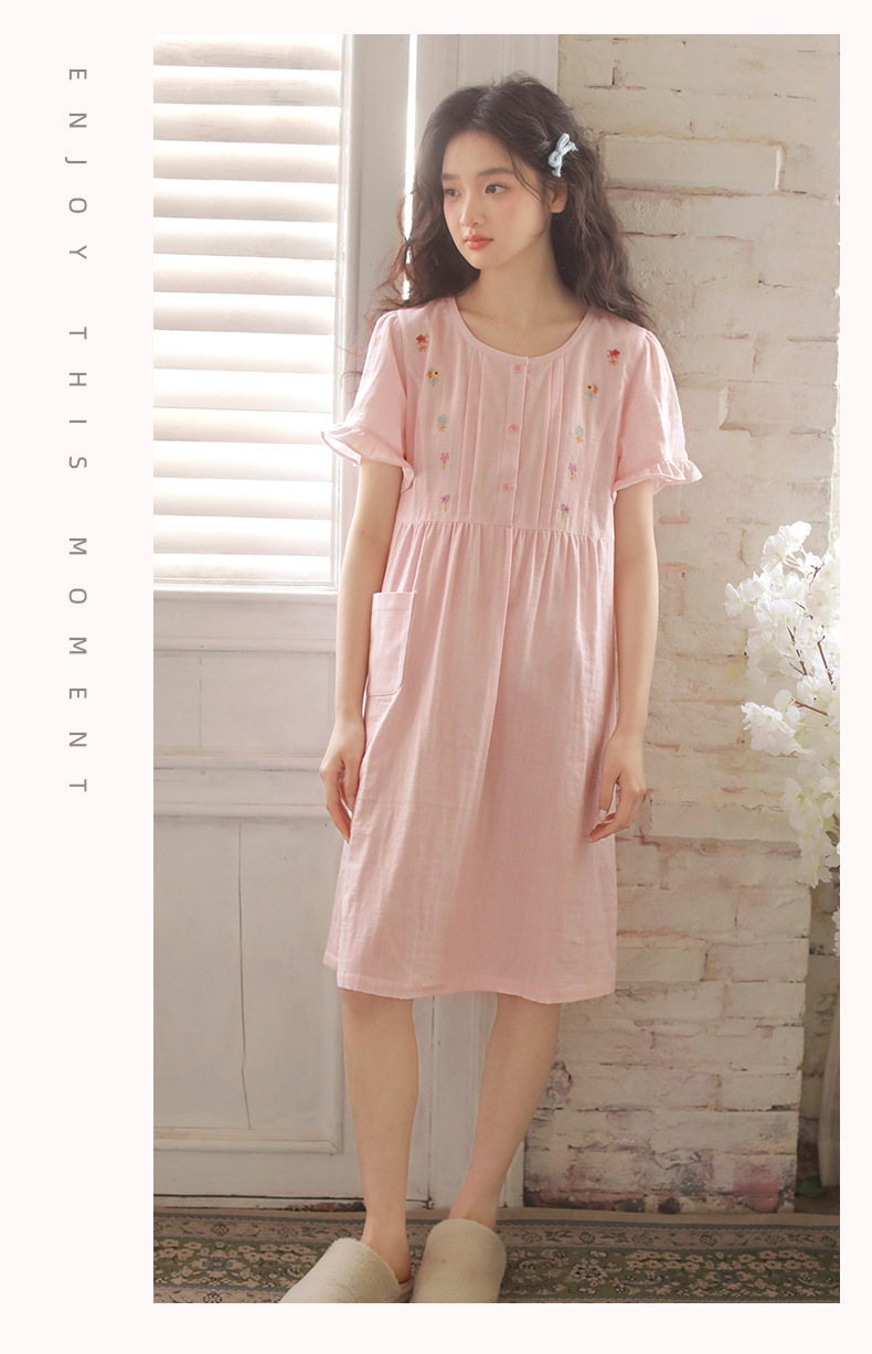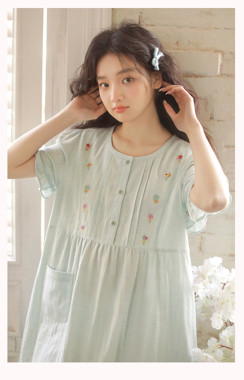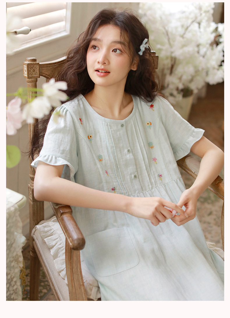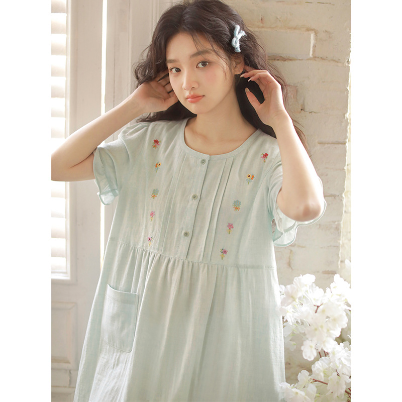 Summer pajama women's Japanese-style sweet princess-style embroidered home wear, short-sleeved round-neck new thin gauze nightgown