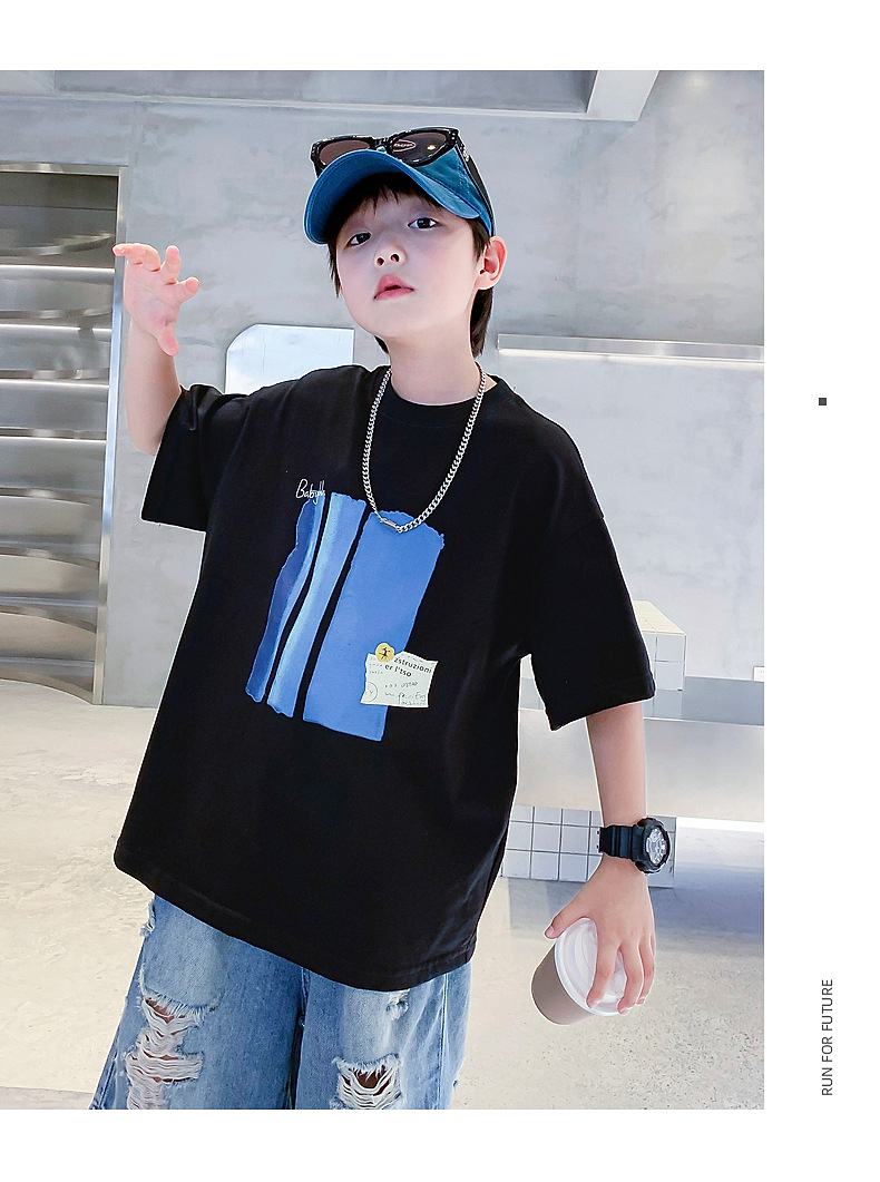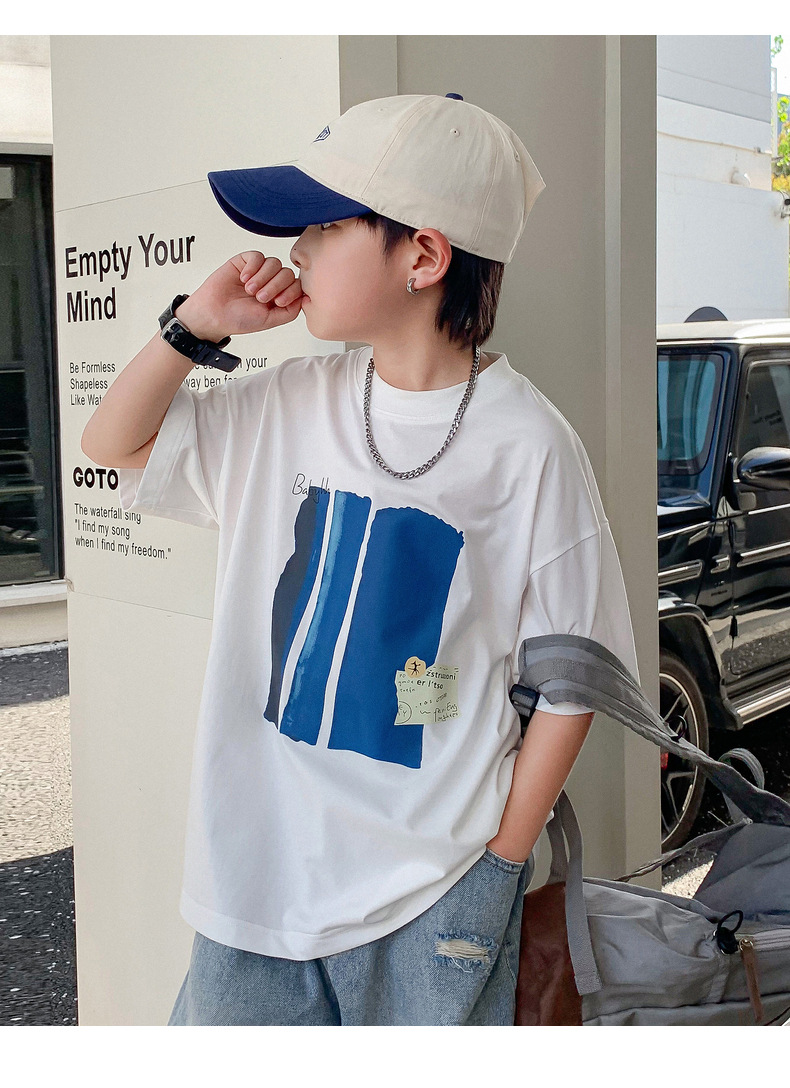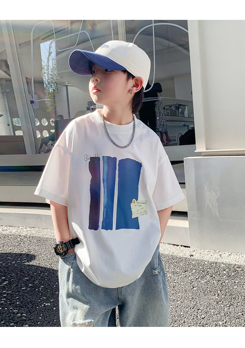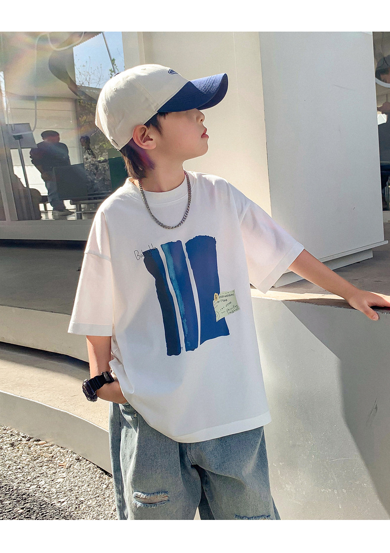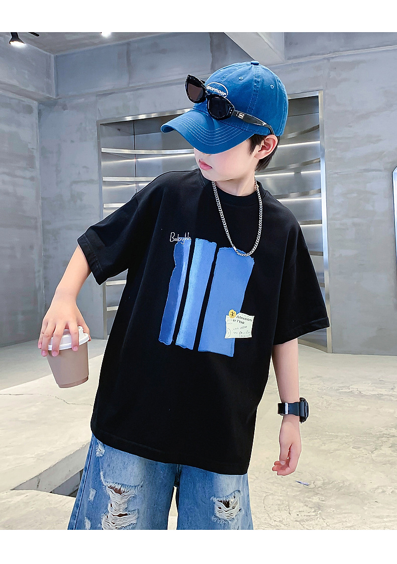 Summer pure cotton short-sleeved T-shirt for boys, 2025 new style children's summer wear, cool and loose half-sleeved T-shirt, trendy top