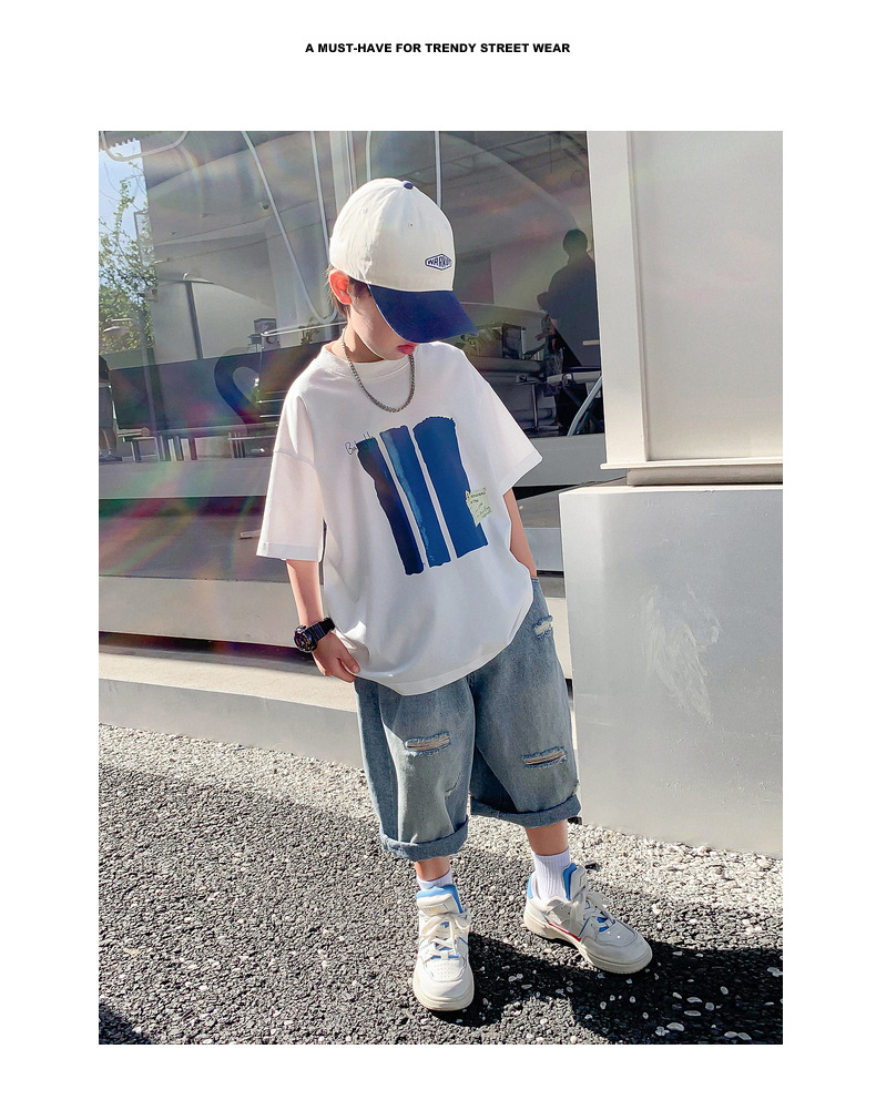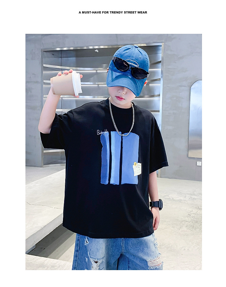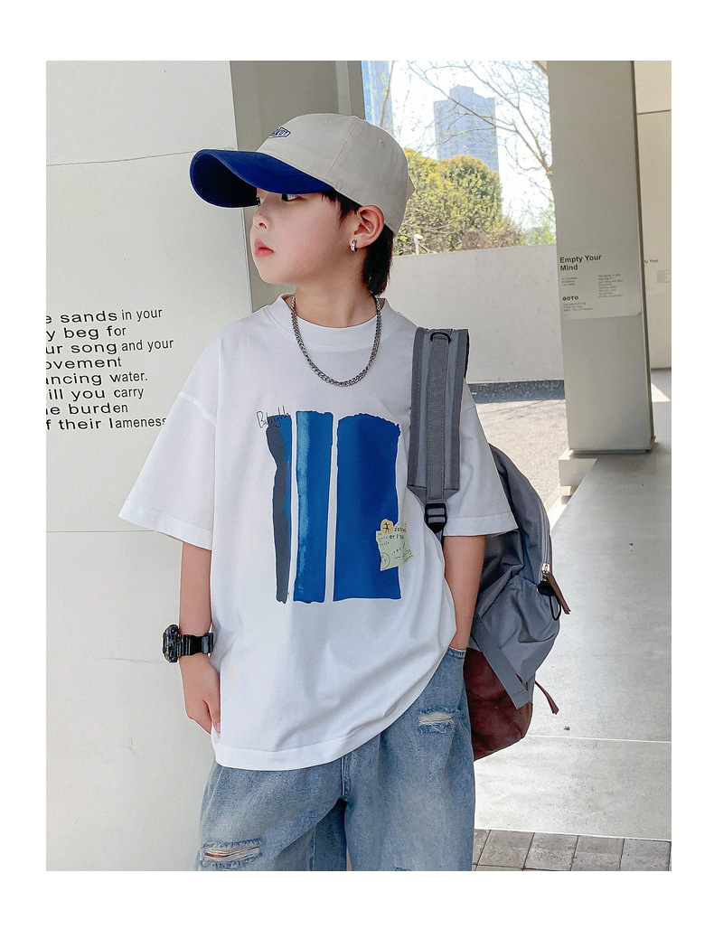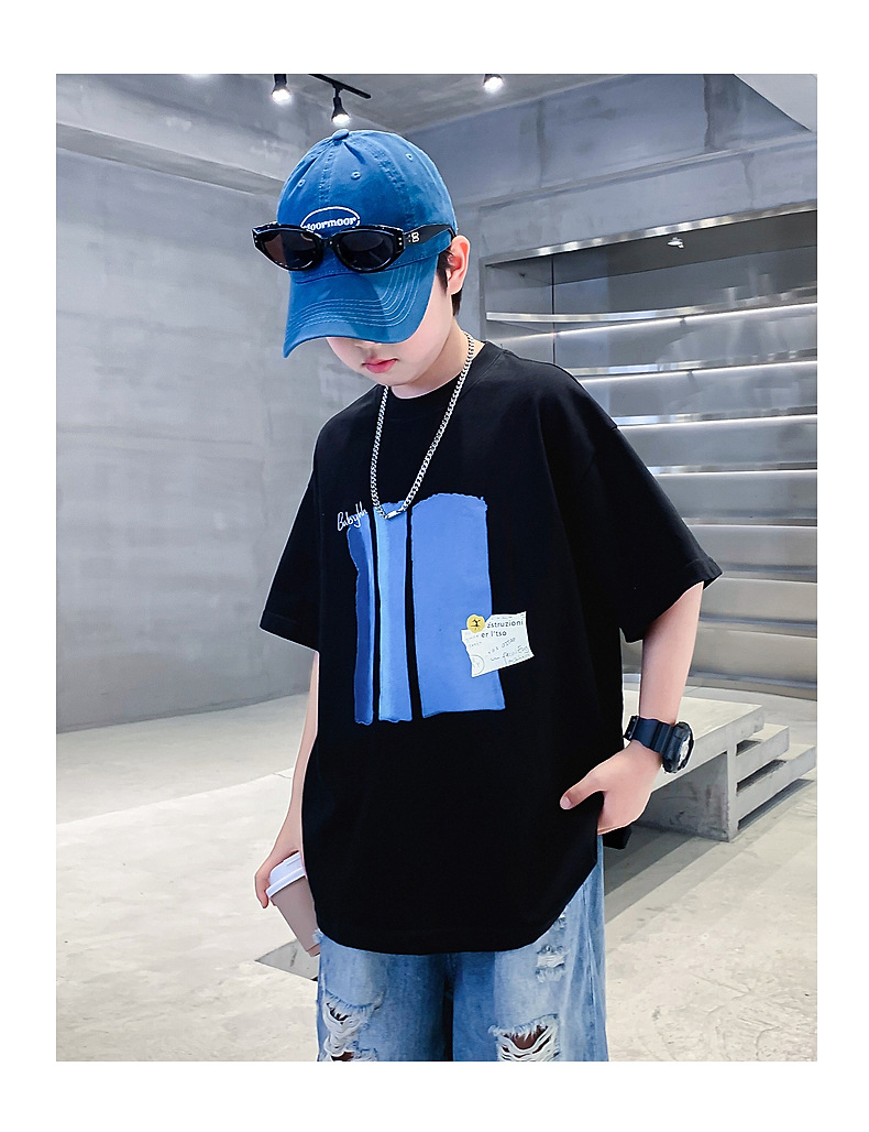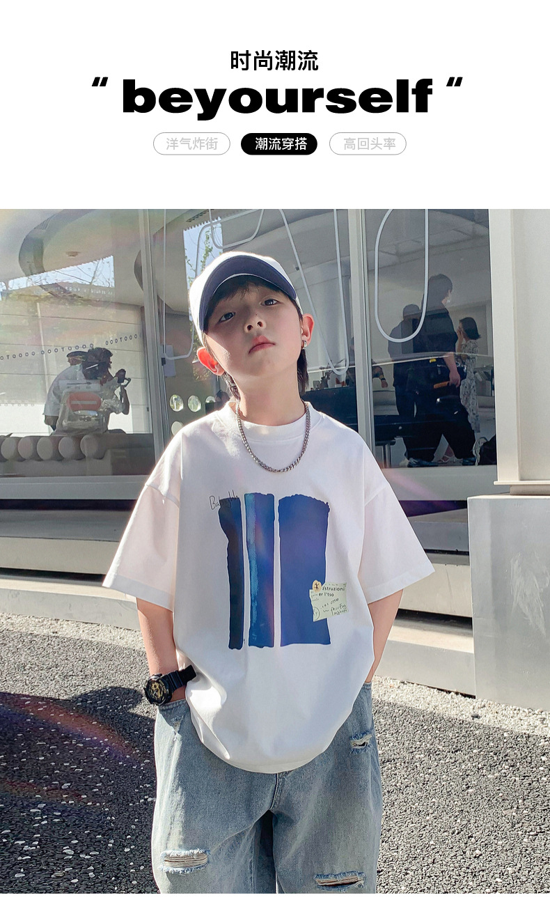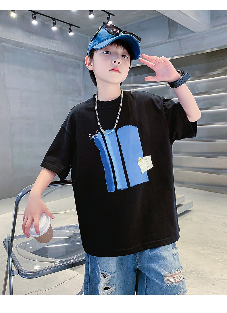 Summer pure cotton short-sleeved T-shirt for boys, 2025 new style children's summer wear, cool and loose half-sleeved T-shirt, trendy top