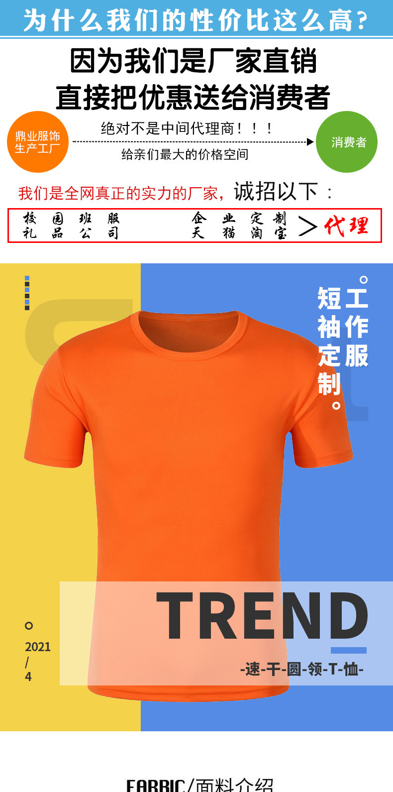 Summer round-neck quick-drying short-sleeved advertising shirts, custom-made logo printed solid-color work clothes, men's T-shirts and cultural shirts wholesale