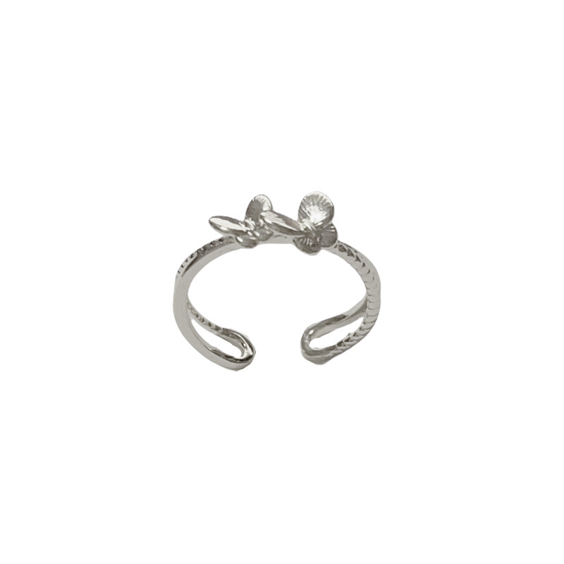 Summer's new simple metal three-dimensional double butterfly opening ring, unique and distinctive design sense, index finger ring for women