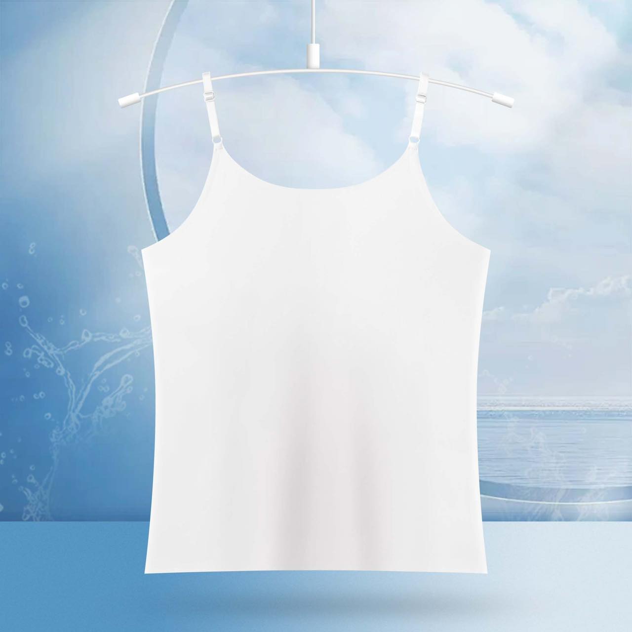 Summer seamless ice silk round neck cool, breathable and comfortable one-piece adjustable anti-slip thin shoulder strap halter top