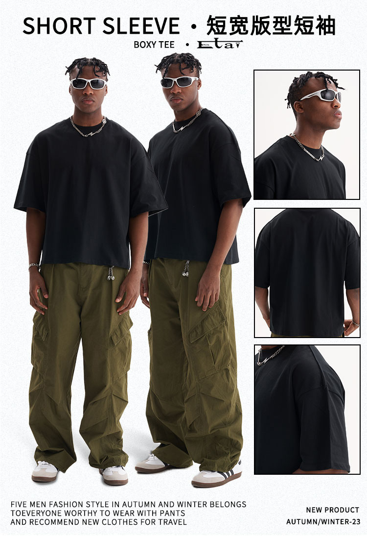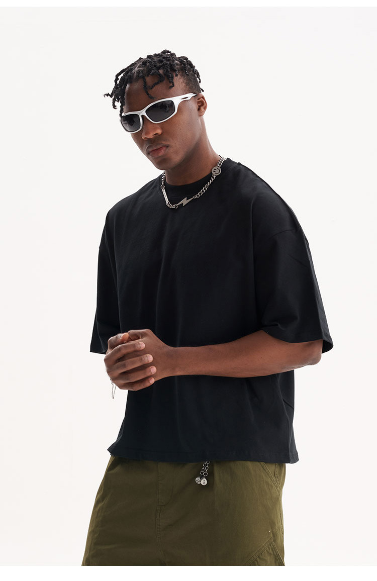 Summer short and wide American-style pure cotton short-sleeved street men's large-sized trendy brand base T-shirts for teenagers are crossing borders