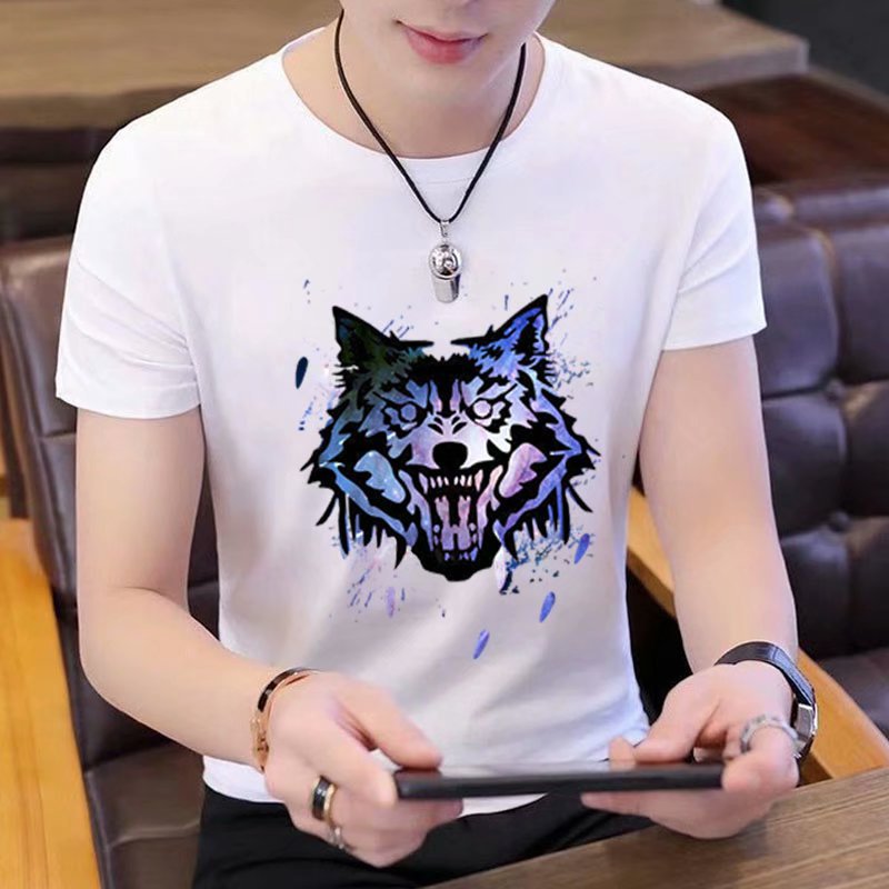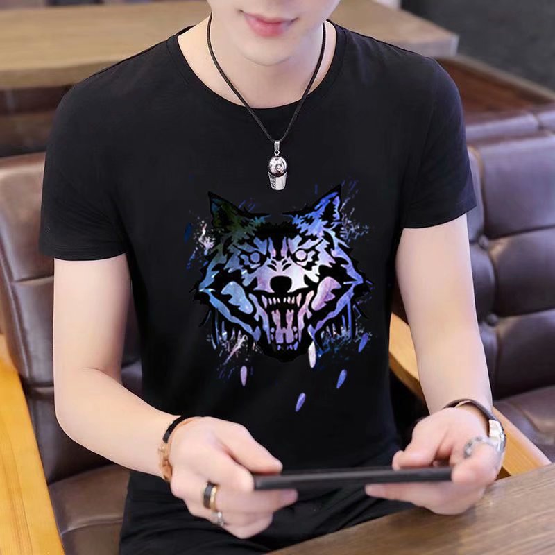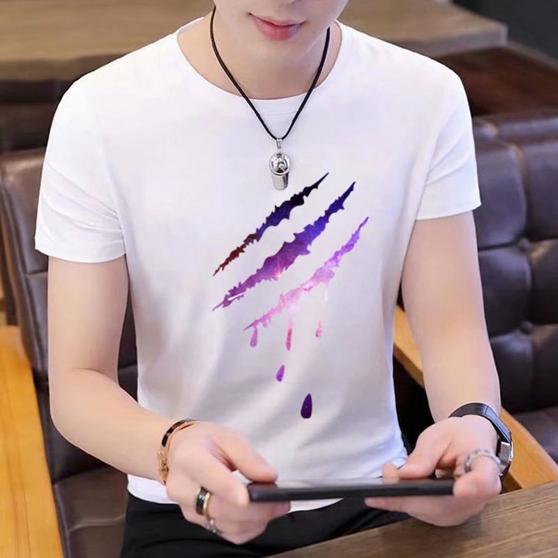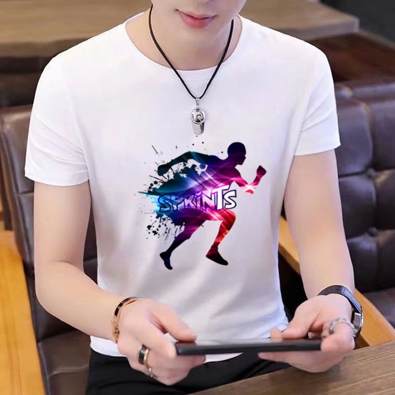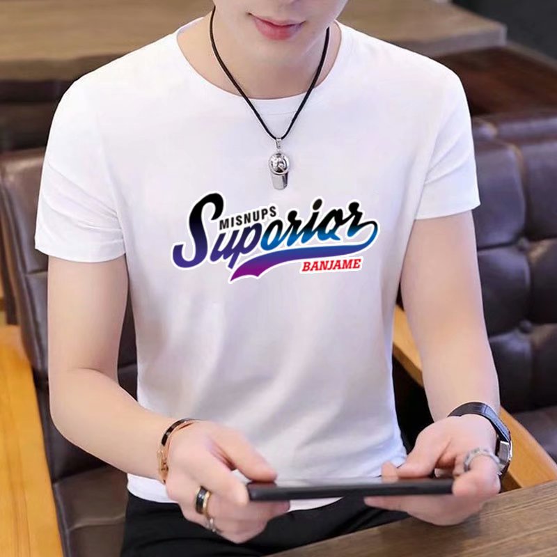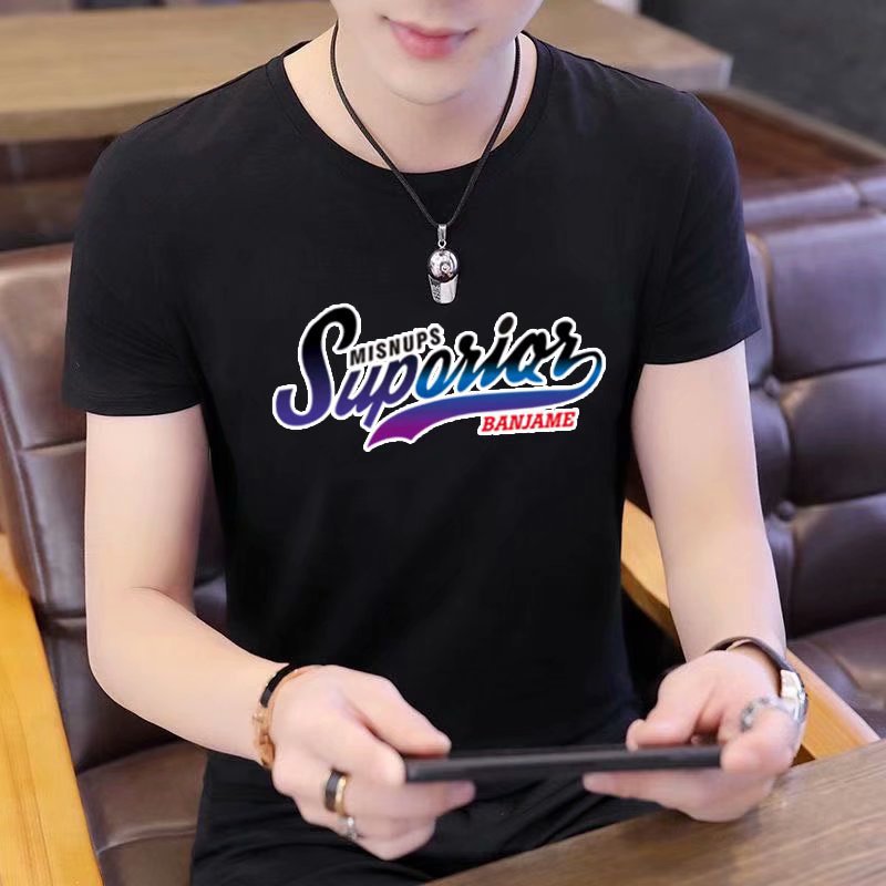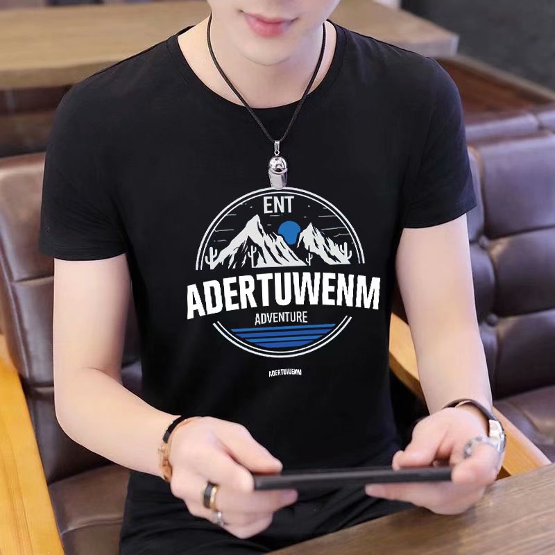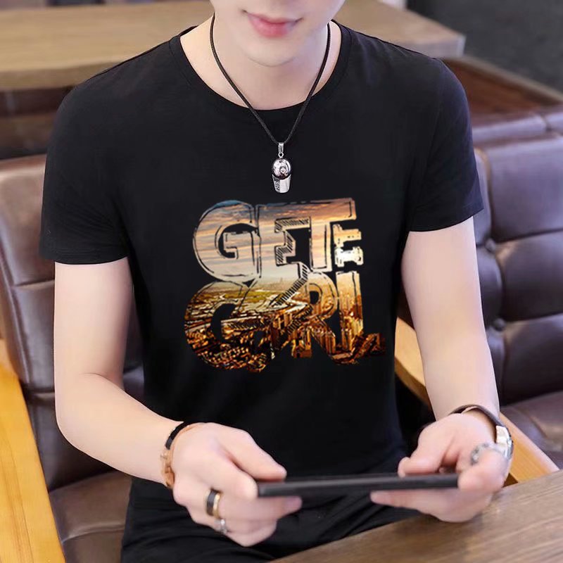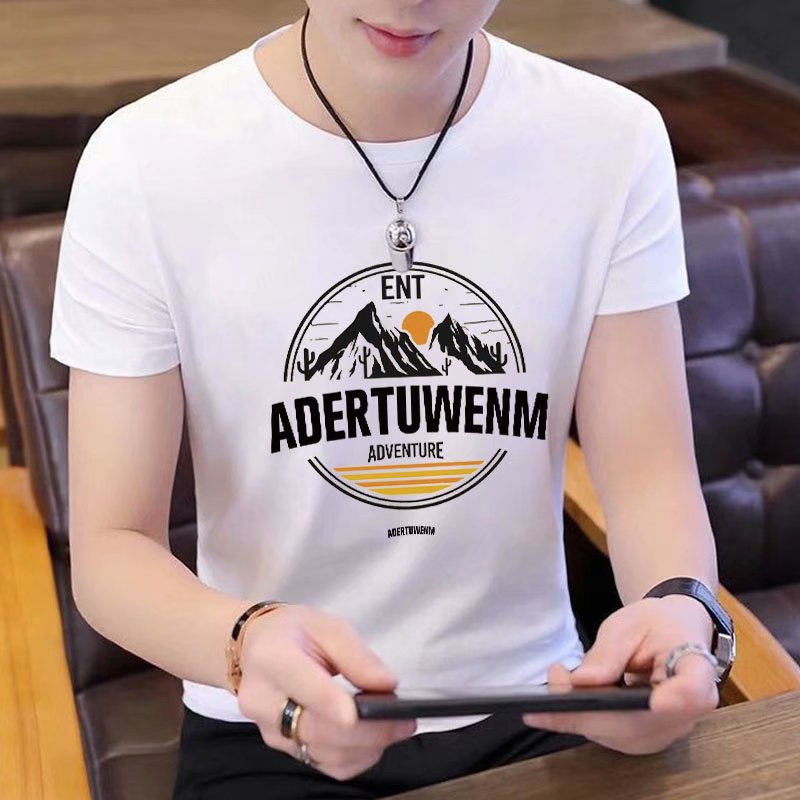 Summer short-sleeved T-shirt for men, figure-hugging letter-printed top, trendy and casual round-neck T-shirt for young People's Daily wear