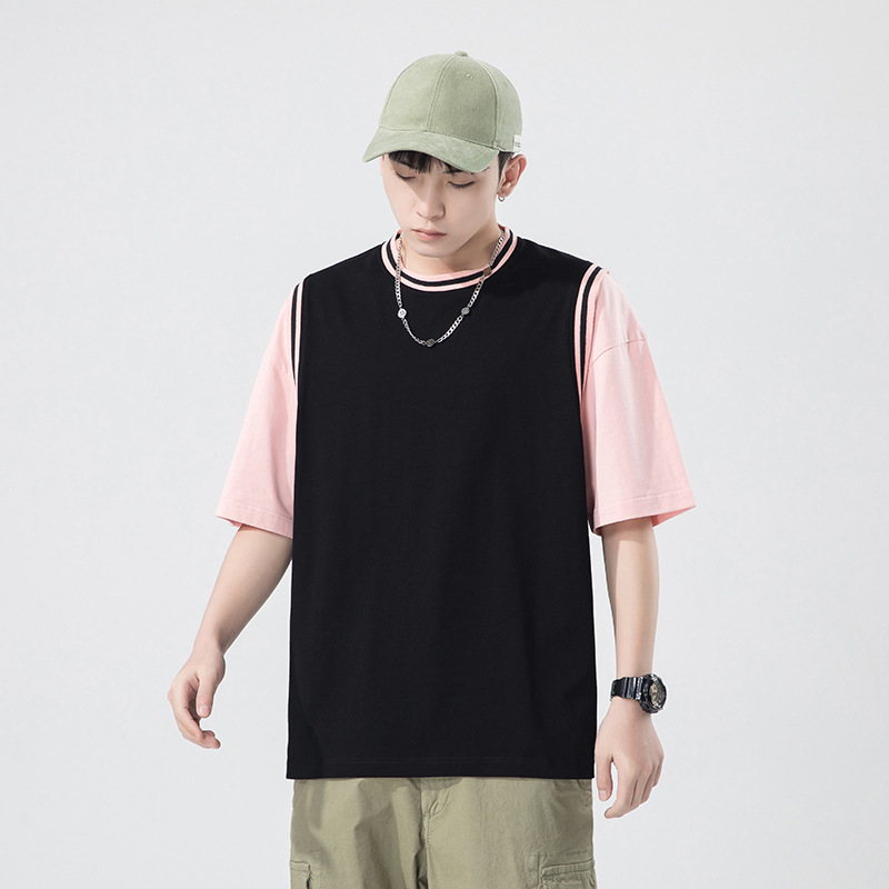 Summer solid-color round-neck short-sleeved T-shirt, Korean-style T-shirt, teenage base layer, plus-size top