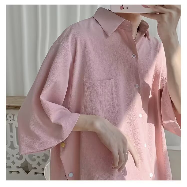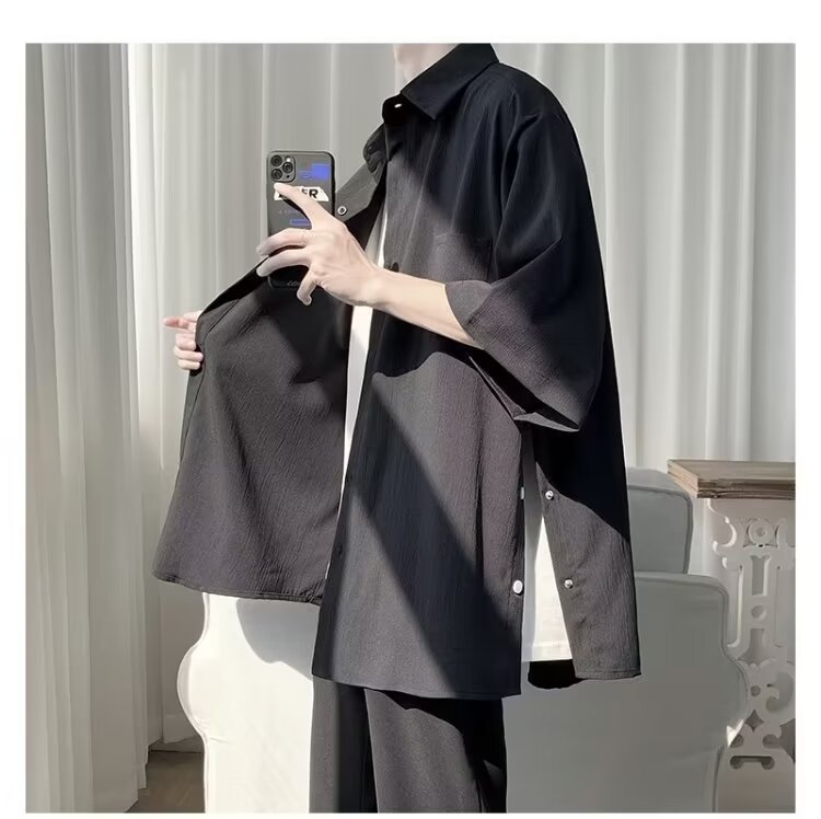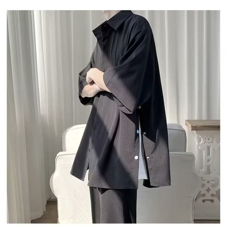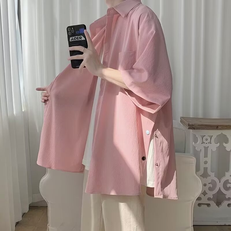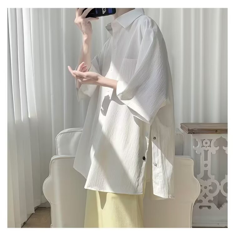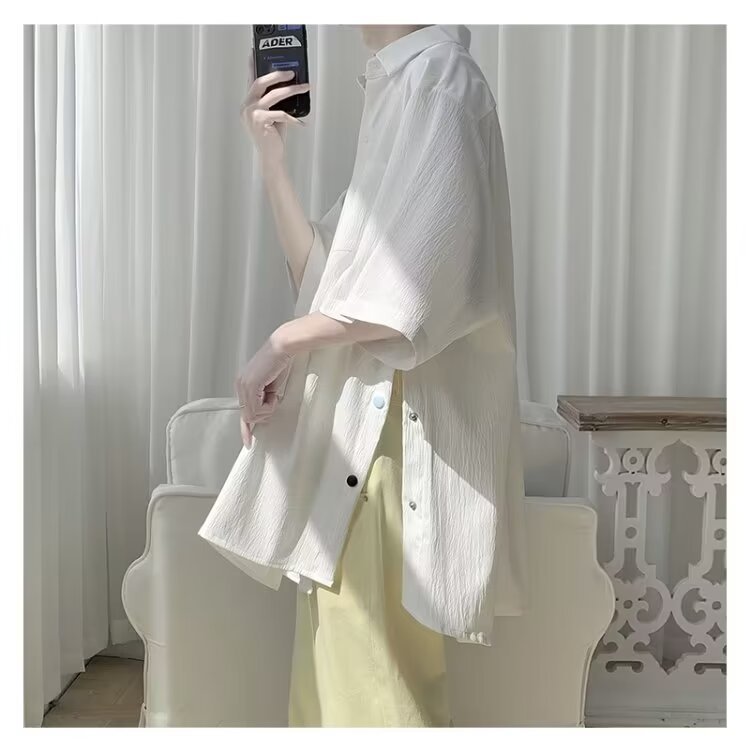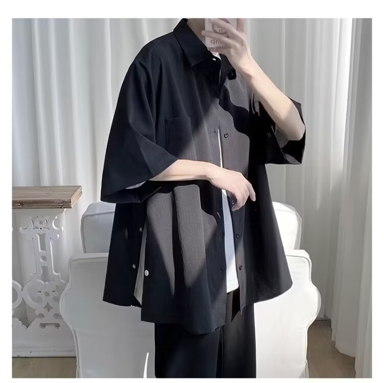 Summer streetwear brand mint green drape ice silk shirt men's short-sleeved loose plus-size trendy American cool shirt jacket