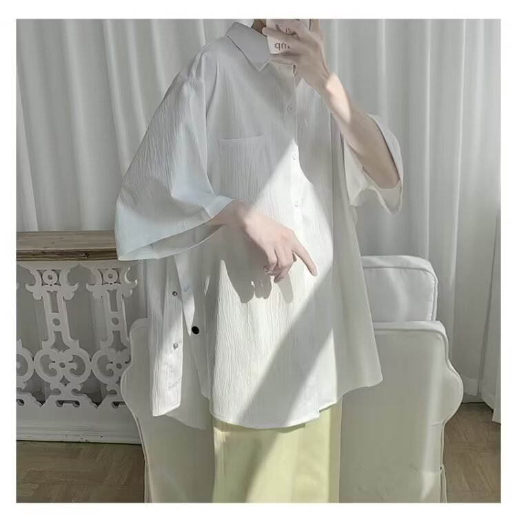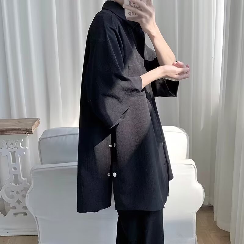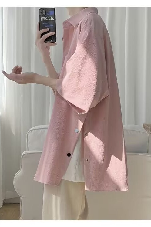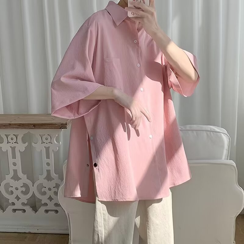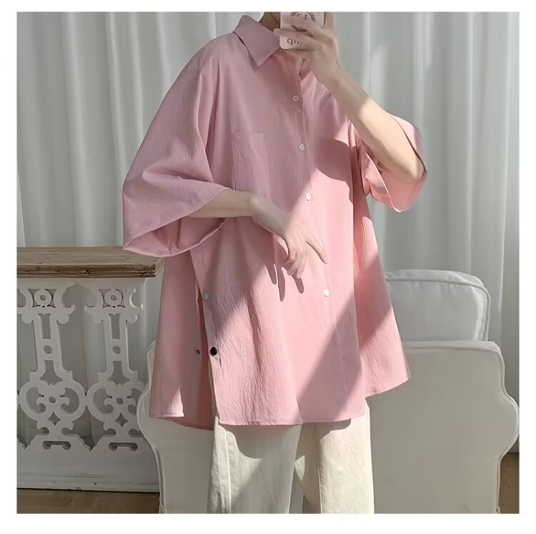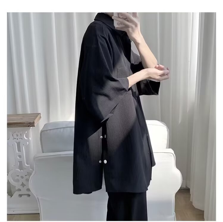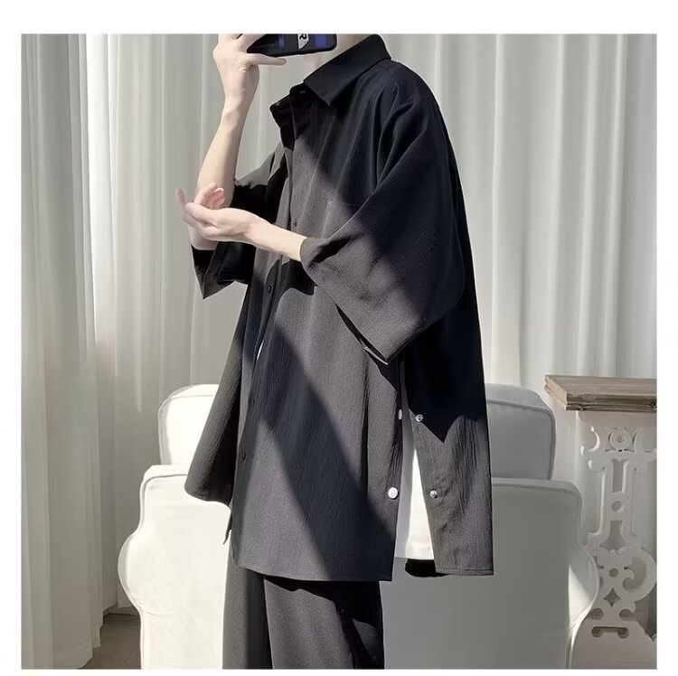 Summer streetwear brand mint green drape ice silk shirt men's short-sleeved loose plus-size trendy American cool shirt jacket