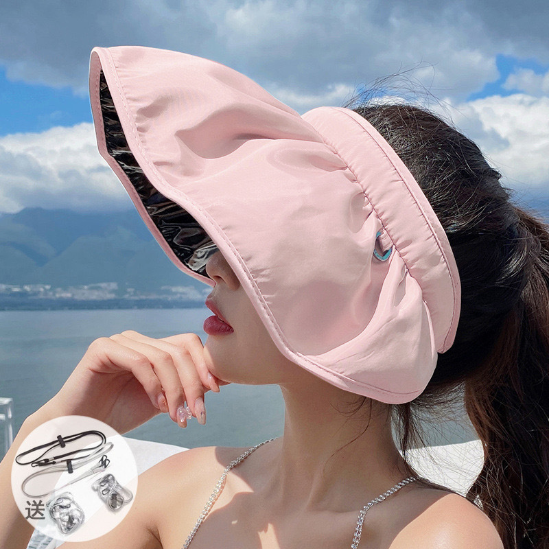Summer sun hats, Korean-style sun protection hats, wide-brimmed face coverings, popular shell-shaped hats, portable and curvy band sun hats for ladies