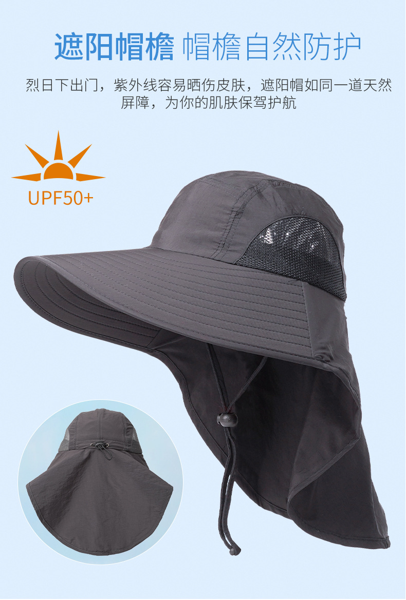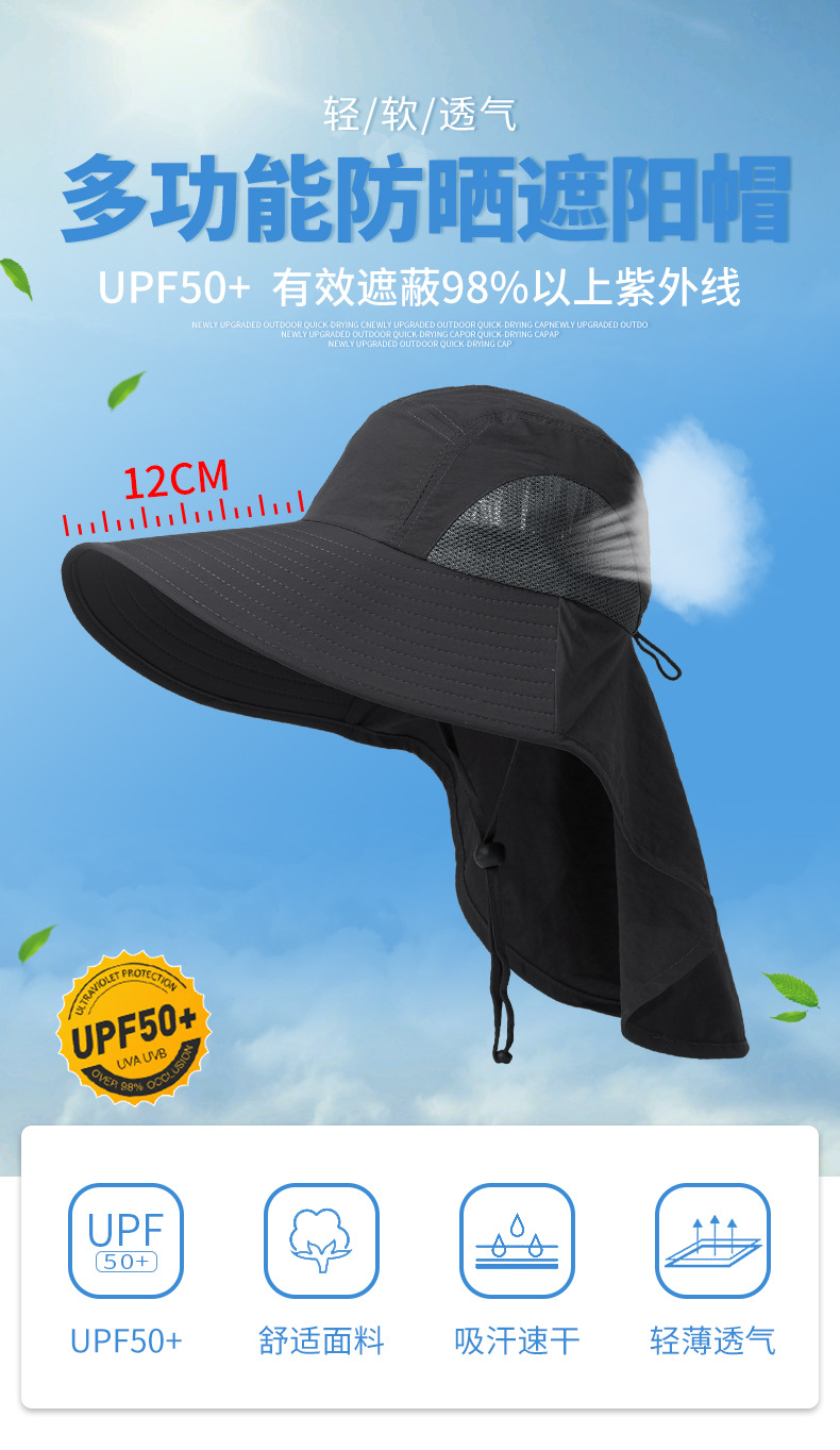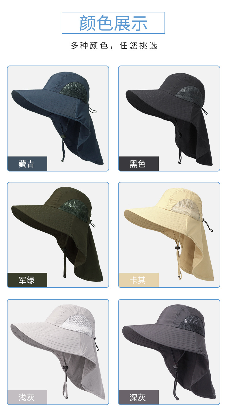 Summer tea-picking hats, full-face sun hats, wide-brimmed outdoor travel and mountaineering hats, UV-resistant open-top hats, sun protection hats, men's wide-brimmed sun hats, fishing hats