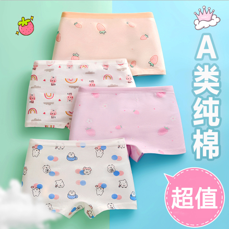 Summer thin children's flat-cut pure cotton girls' underpants, all-cotton shorts for adults, four-corner pants without pinching the bottom