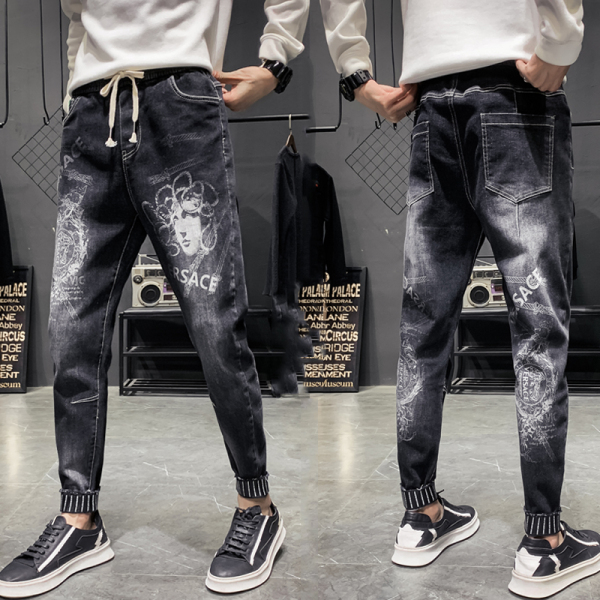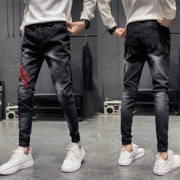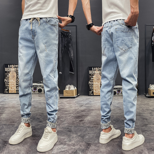 Summer thin jeans for men, a trendy brand, slimming and petite casual 2023 new style for men, a cool and stylish 9-inch long pants