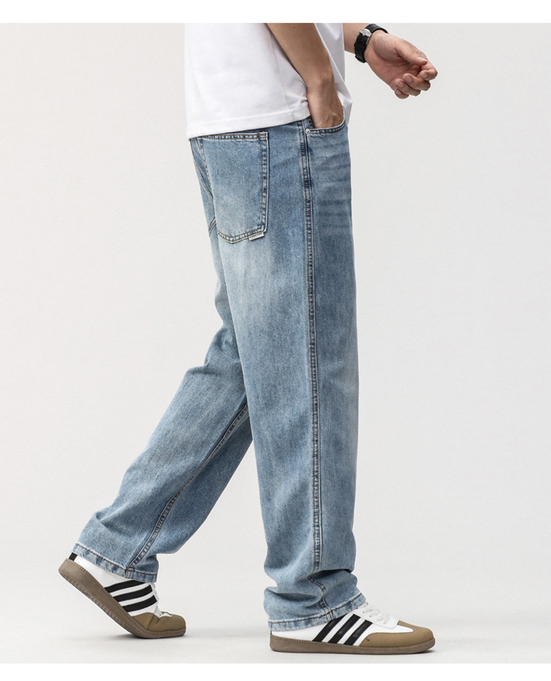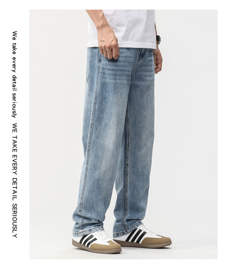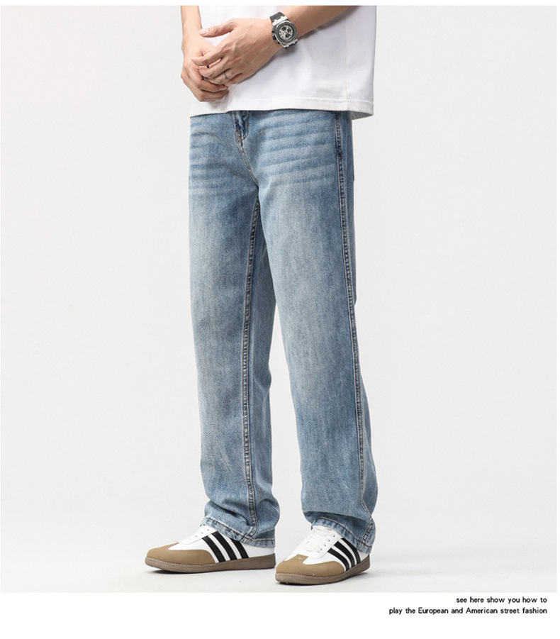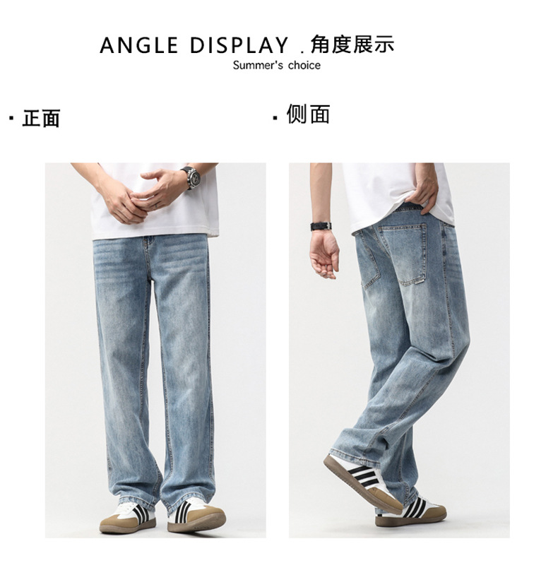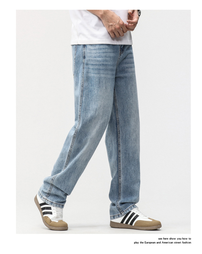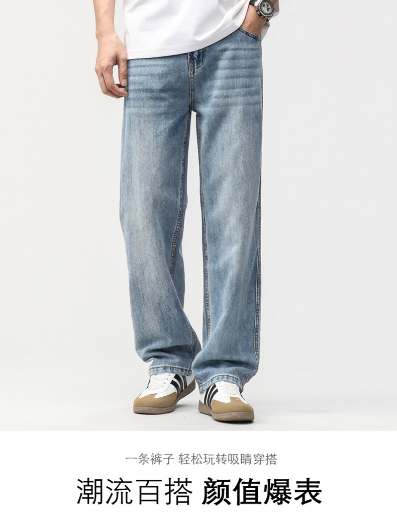 Summer thin Lyocell Tencel straight-leg jeans, a men's fashion brand American high street loose, drape wide-leg long pants