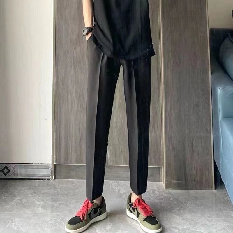 Summer thin trendy brand Black Knight mini dress pants, social spirit, trendy small feet, straight leg, 9-inch casual pants for men