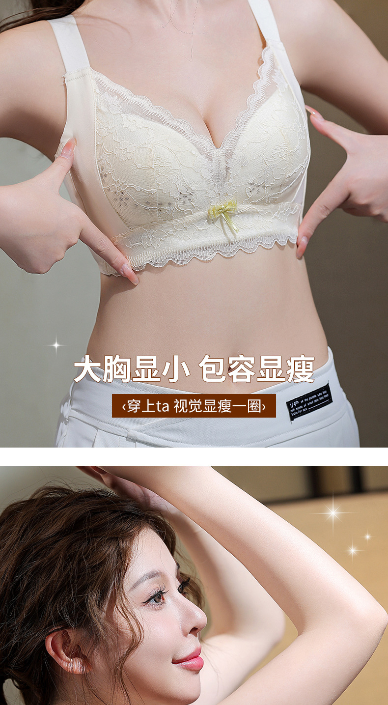 Summer thin women's underwear without underwire, breathable, large bust, small look, anti-sagging, adjustable, lifting and gathering bra cover