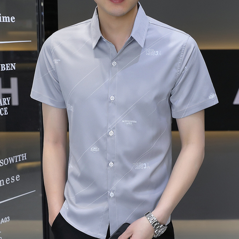 Summer trend: Cool and stylish short-sleeved ice silk shirt, short-sleeved thin top, cool shirt, men's fashion and versatile