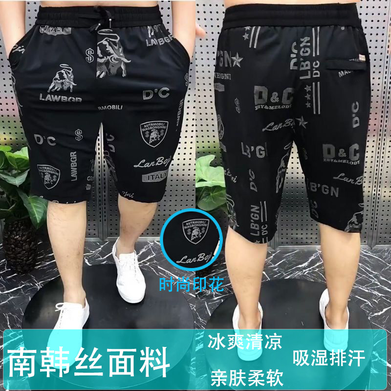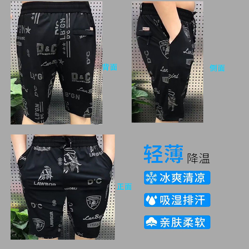 Summer trend ice silk quick-drying men's 5-inch shorts, versatile men's loose 7-inch men's pants, and casual beach pants for outerwear