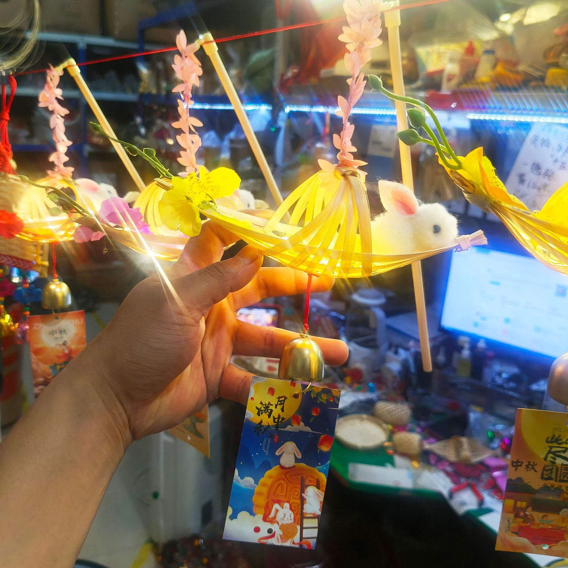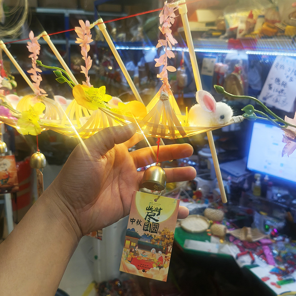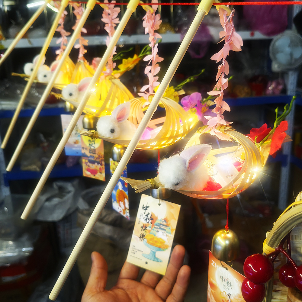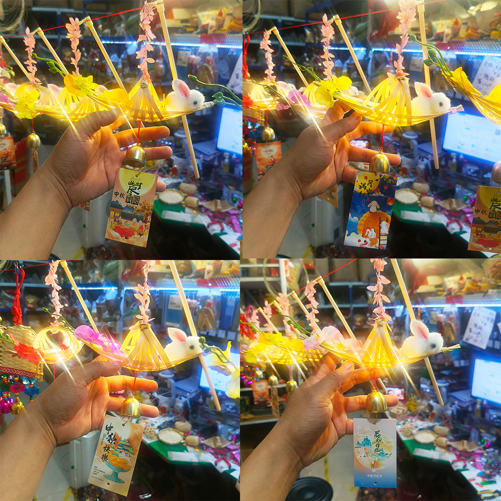 Summer vacation night tour, Mid-Autumn Festival rabbit bamboo boat, hand-held luminous lanterns, children's creative handmade gifts, night market stall