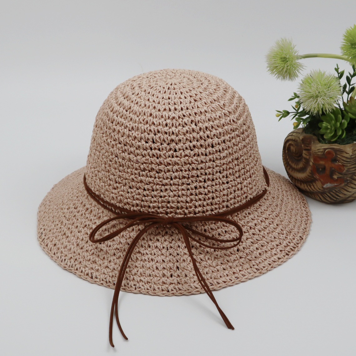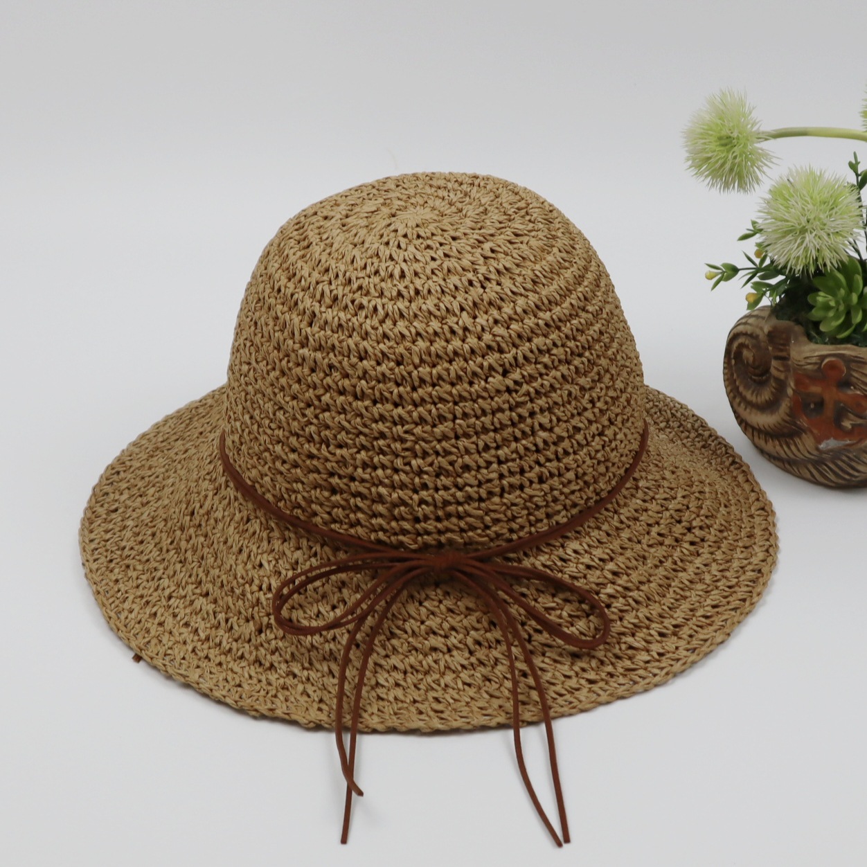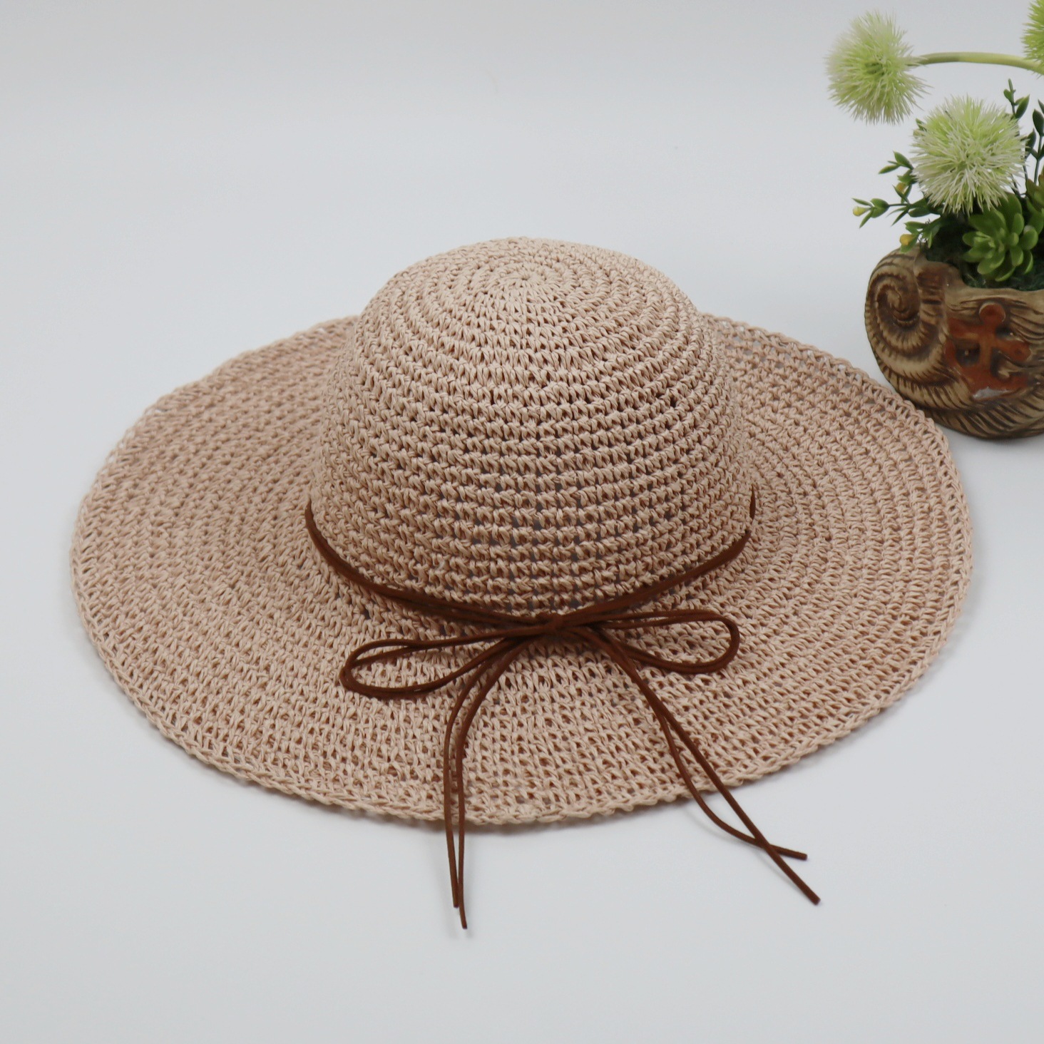 Summer women's wide-brimmed straw sun hat, crochet fine craftsmanship, beach sun hat, sun protection, versatile, foldable straw hat, adult hat factory direct sales