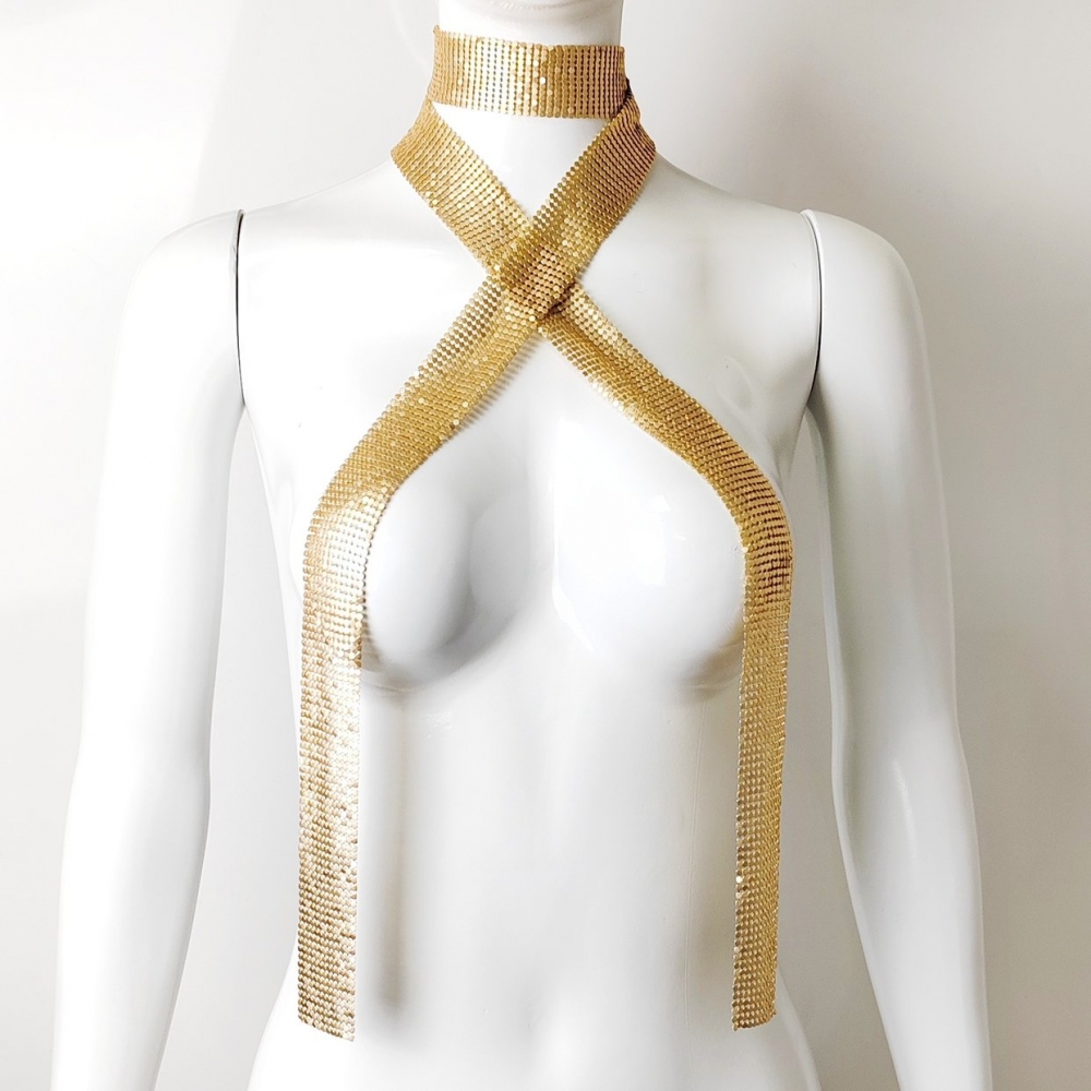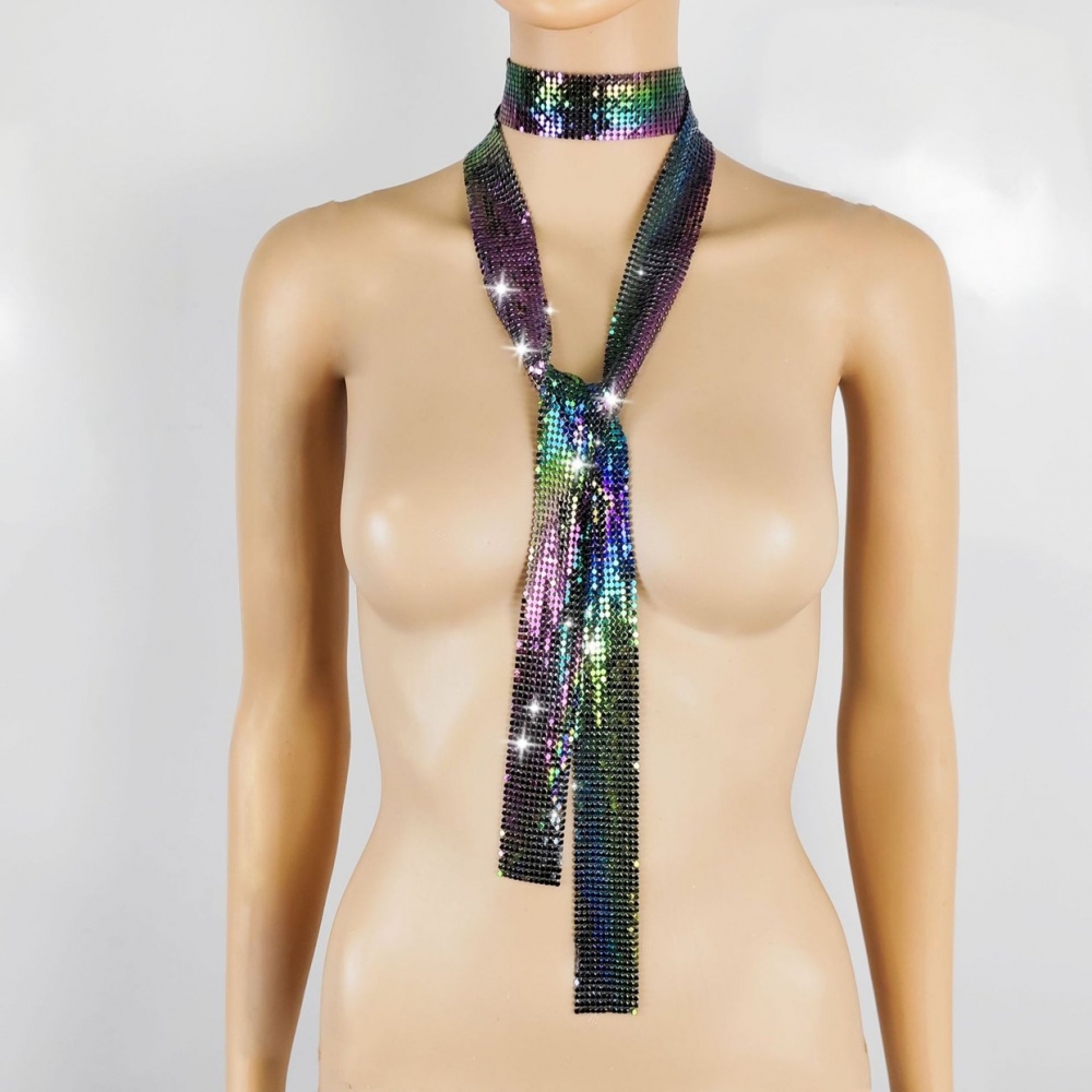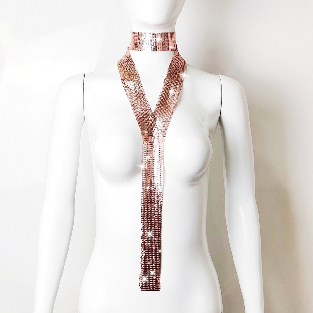 Super dazzling and hot girl sequined silk scarf, elegant and slender ribbon scarf, atmosphere for taking photos, neck accessory, personalized new product accessory