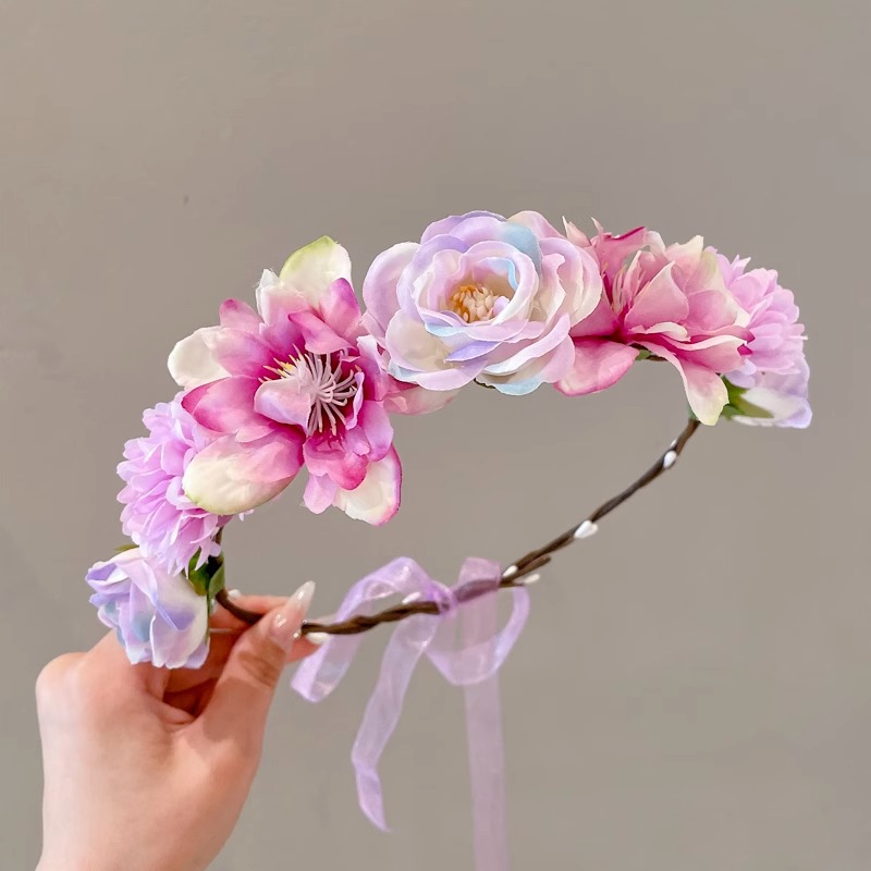 Super fairy flower ring headband, forest-style realistic flower vine hair band, spring and summer travel photo headband, atmospheric hair accessory, hair clip