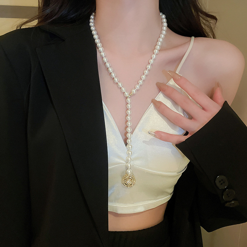 Super fairy pearl bow tassel double-layer necklace, elegant and high-end, collarbone chain, fashionable and niche bridal accessory for women