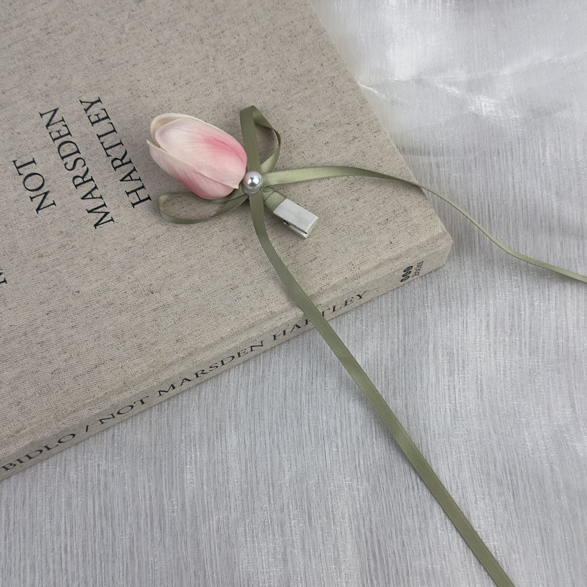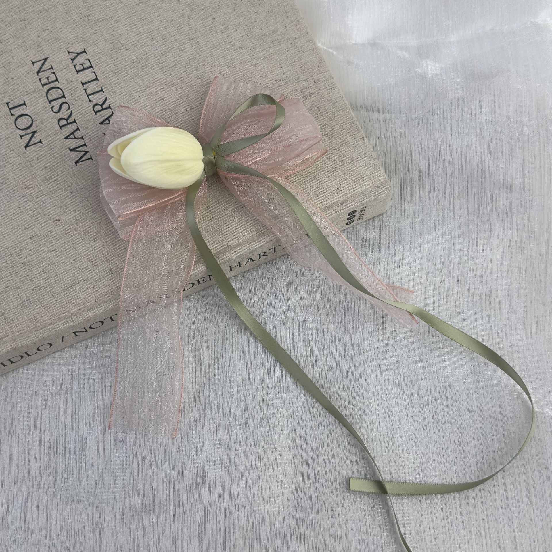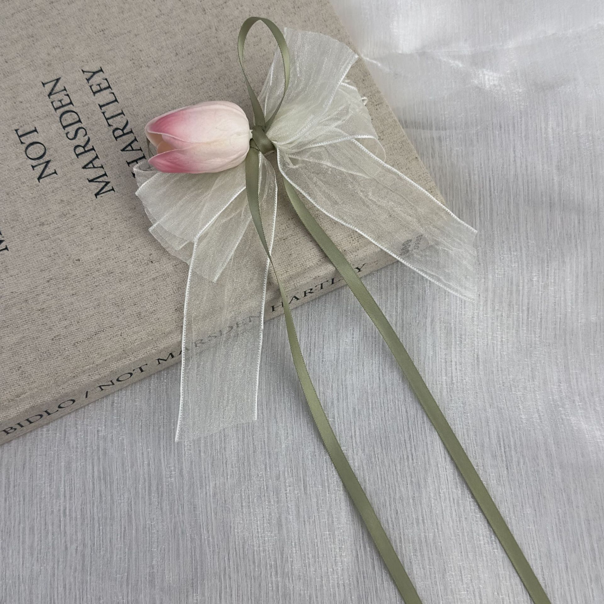 Super fairy tulip flower hair clip, women's side bangs clip, bow ribbon double ponytail hair clip, new hair accessory